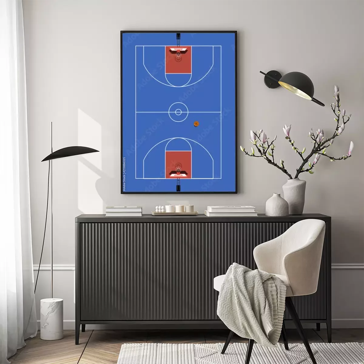 Poster : Terrain de basket bleu