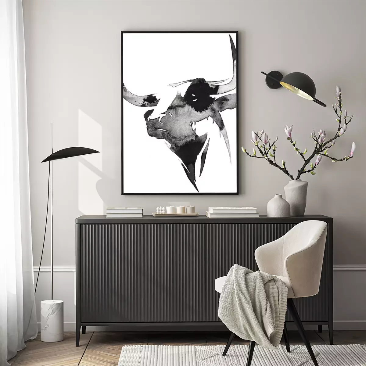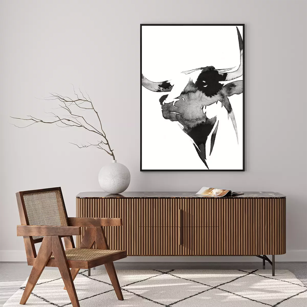 Poster  Tête de vache noire et blanche