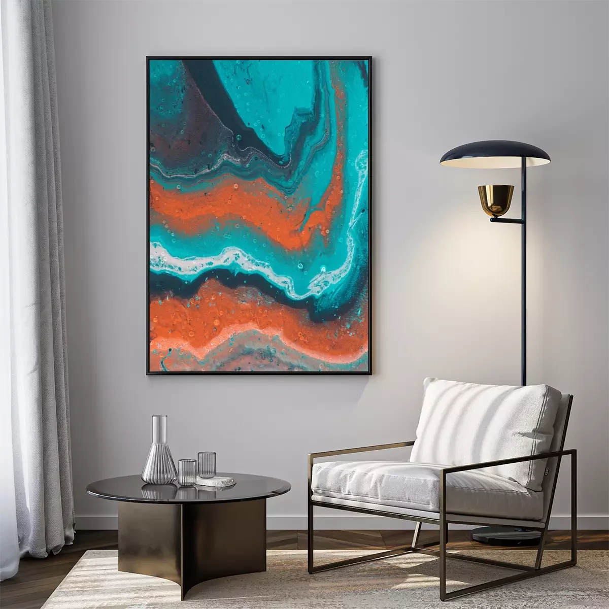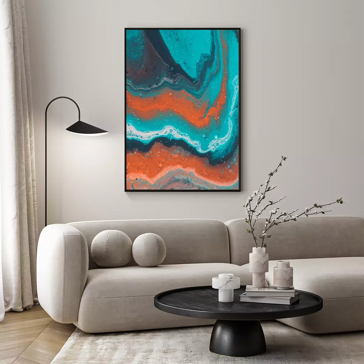 Poster : texture abstraite avec de la peinture à l'huile bleue et orange