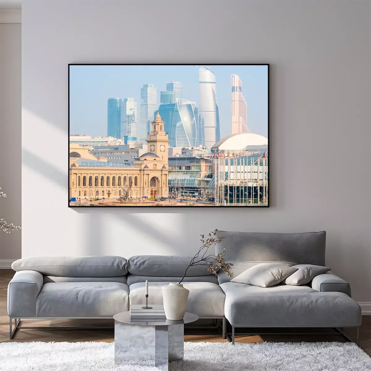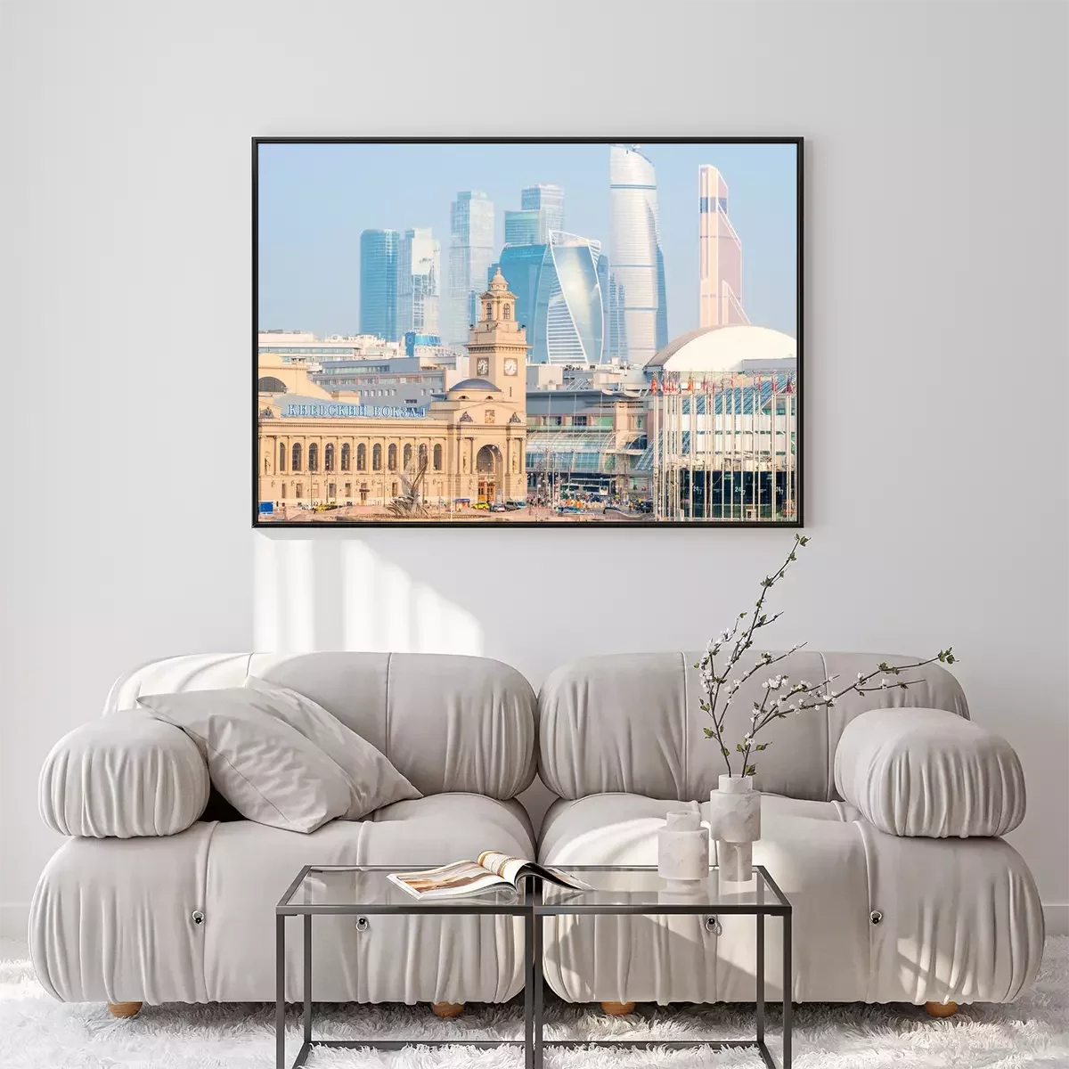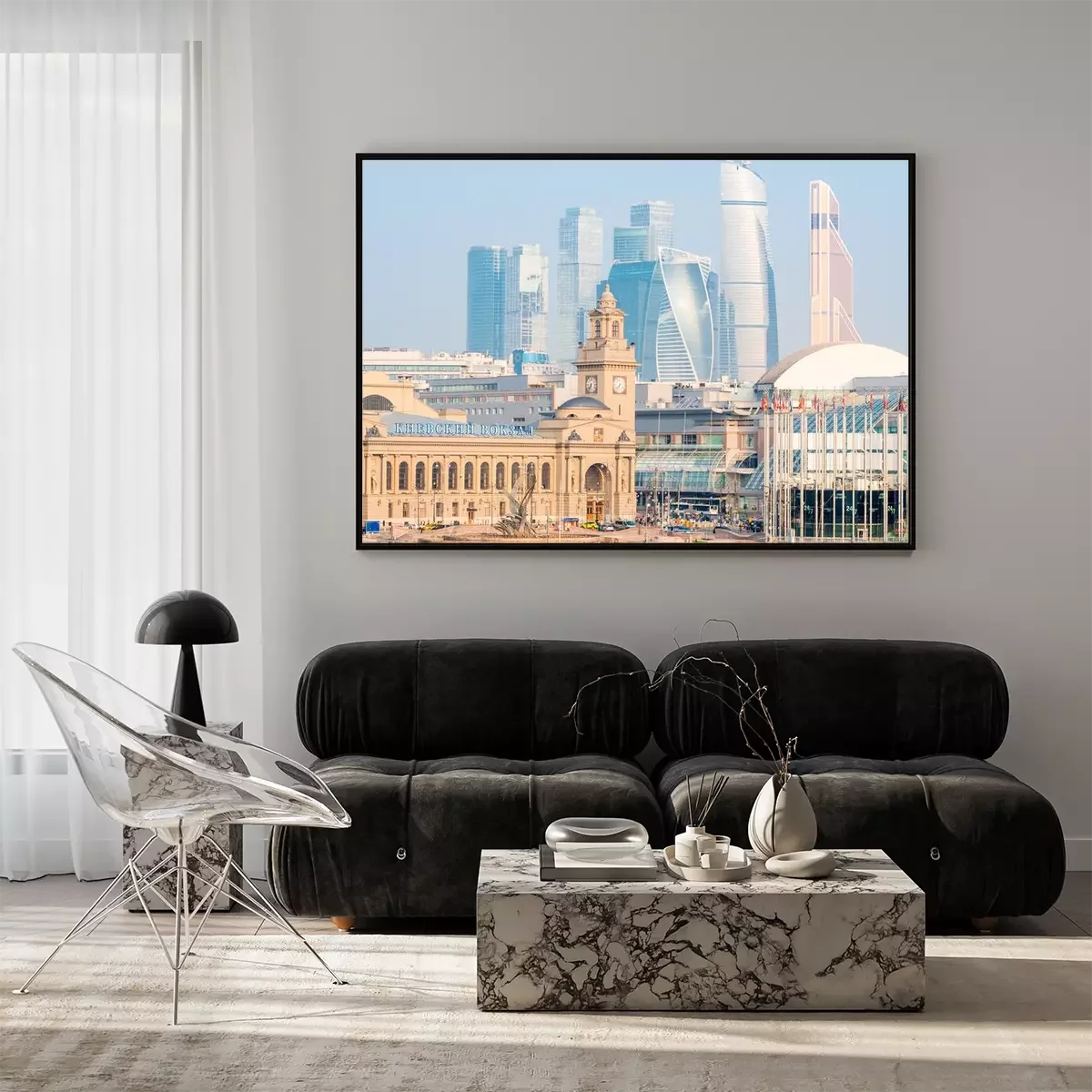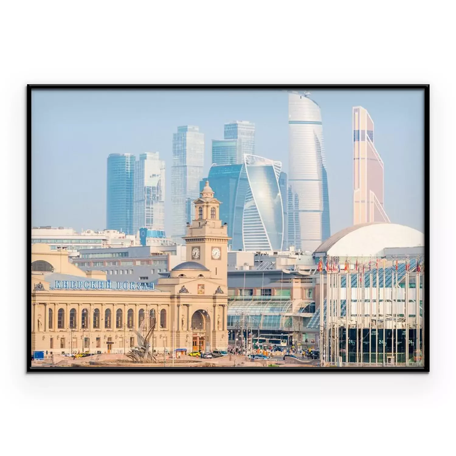 Poster : The building of the Kiev railway station of Moscow and the tall skyscrapers of Moscow City