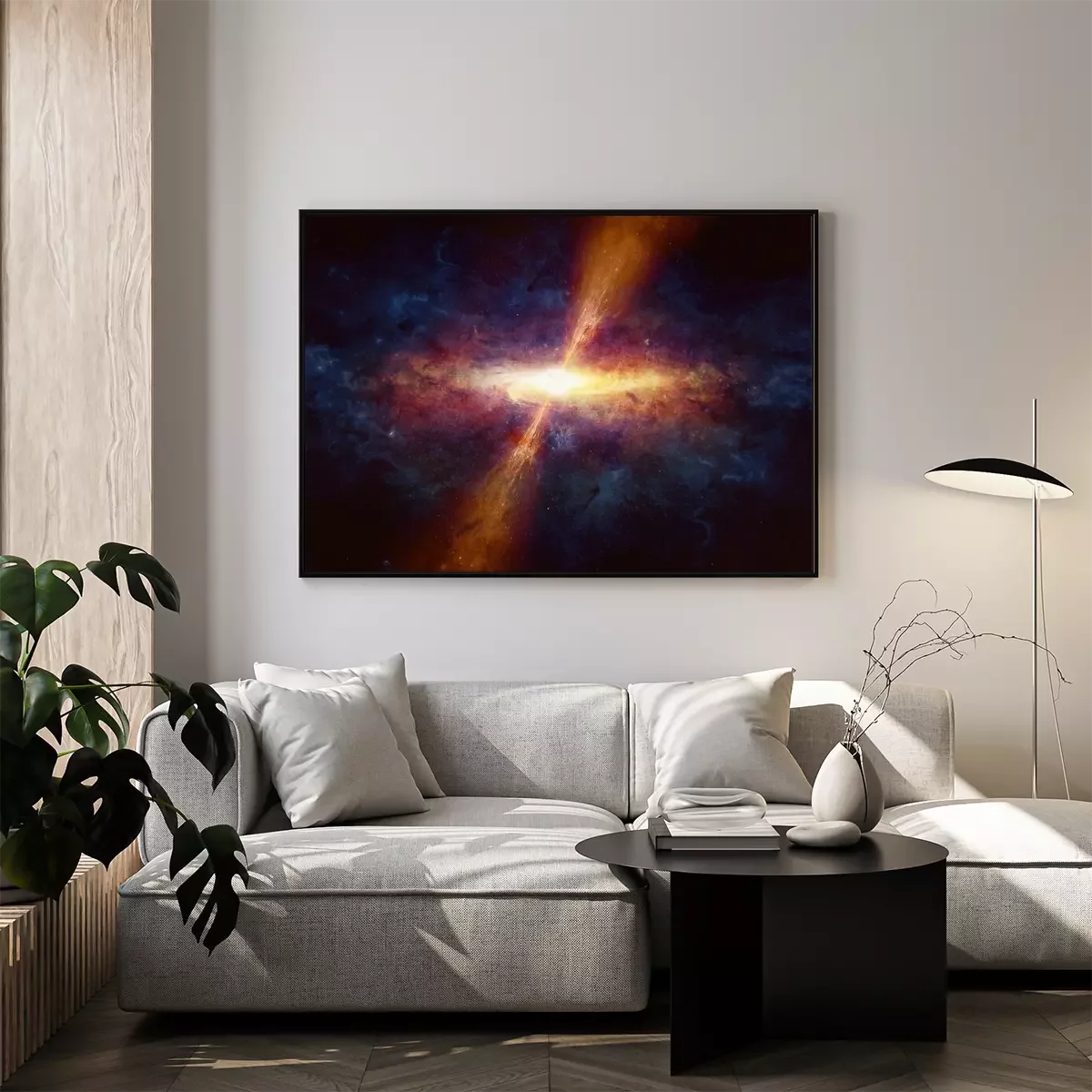 Cosmos coloré avec galaxie et planète colorées