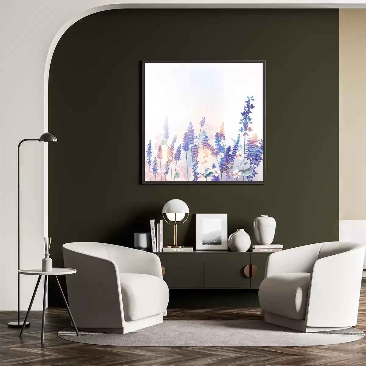 Poster : Thème de la lavande et des fleurs sauvages le matin