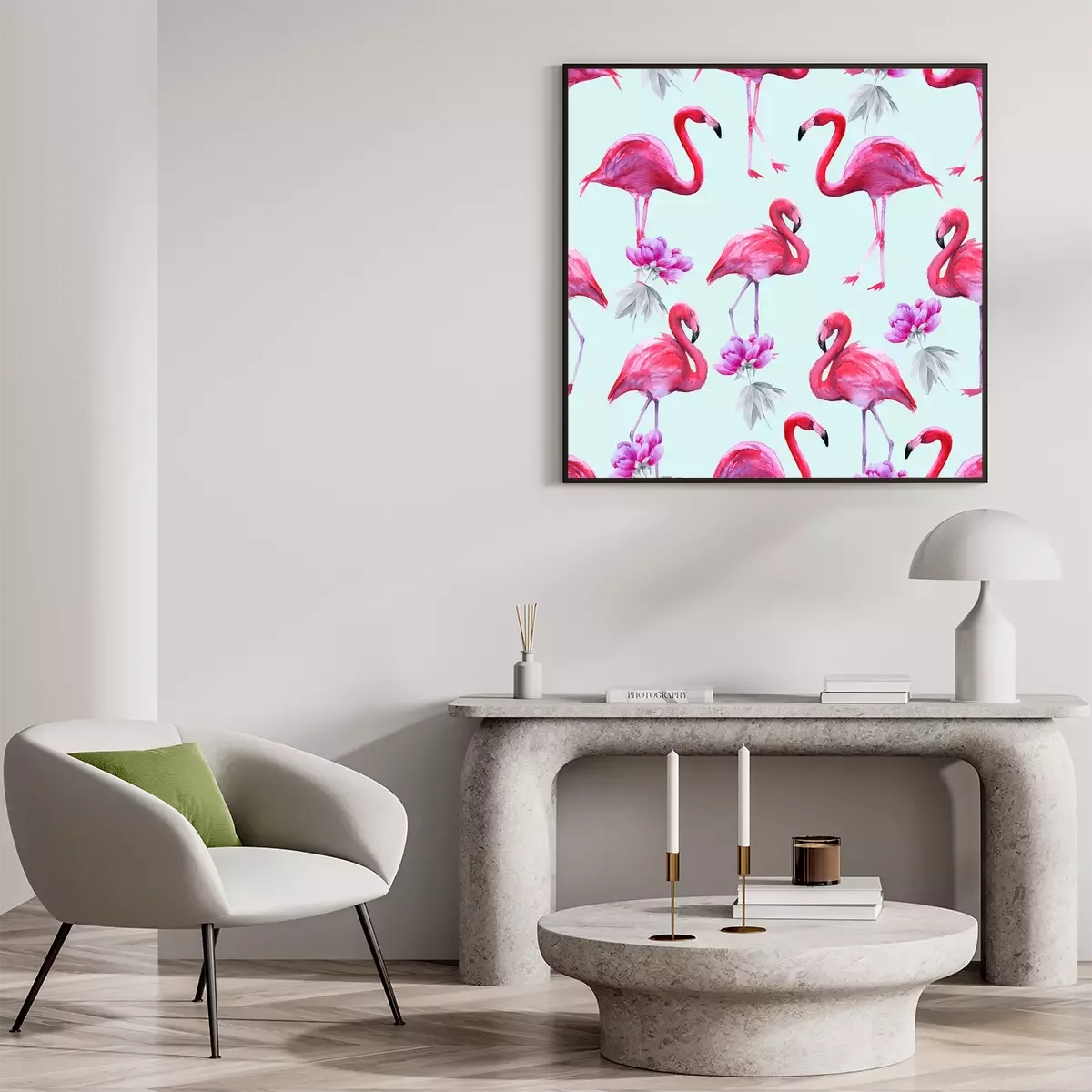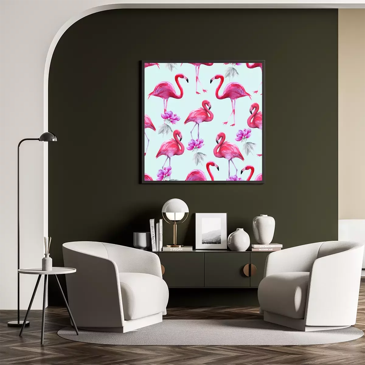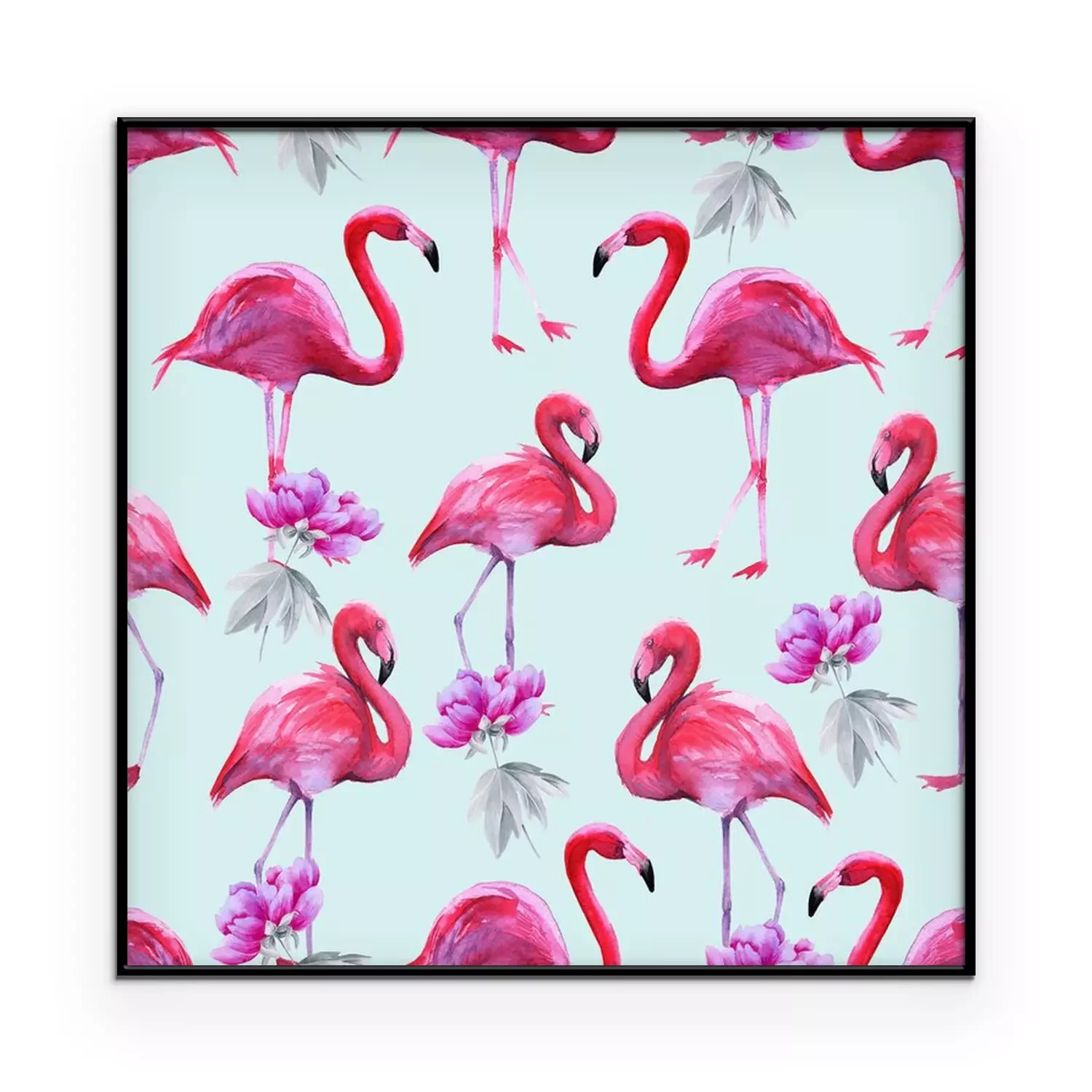 Poster : thème flamants roses et fleurs