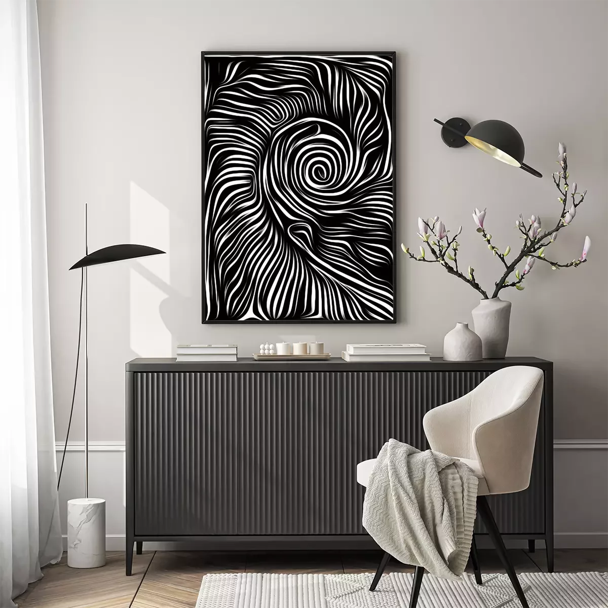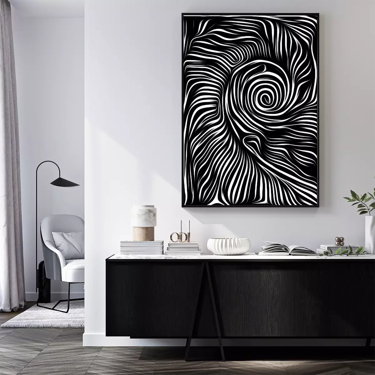 Poster : Thème noir et blanc : abstraction minimaliste