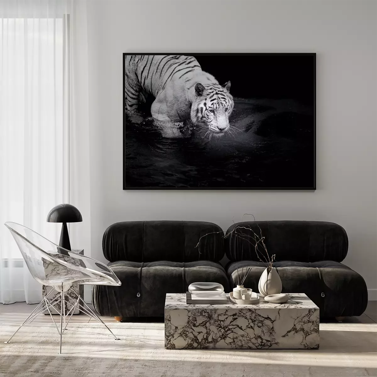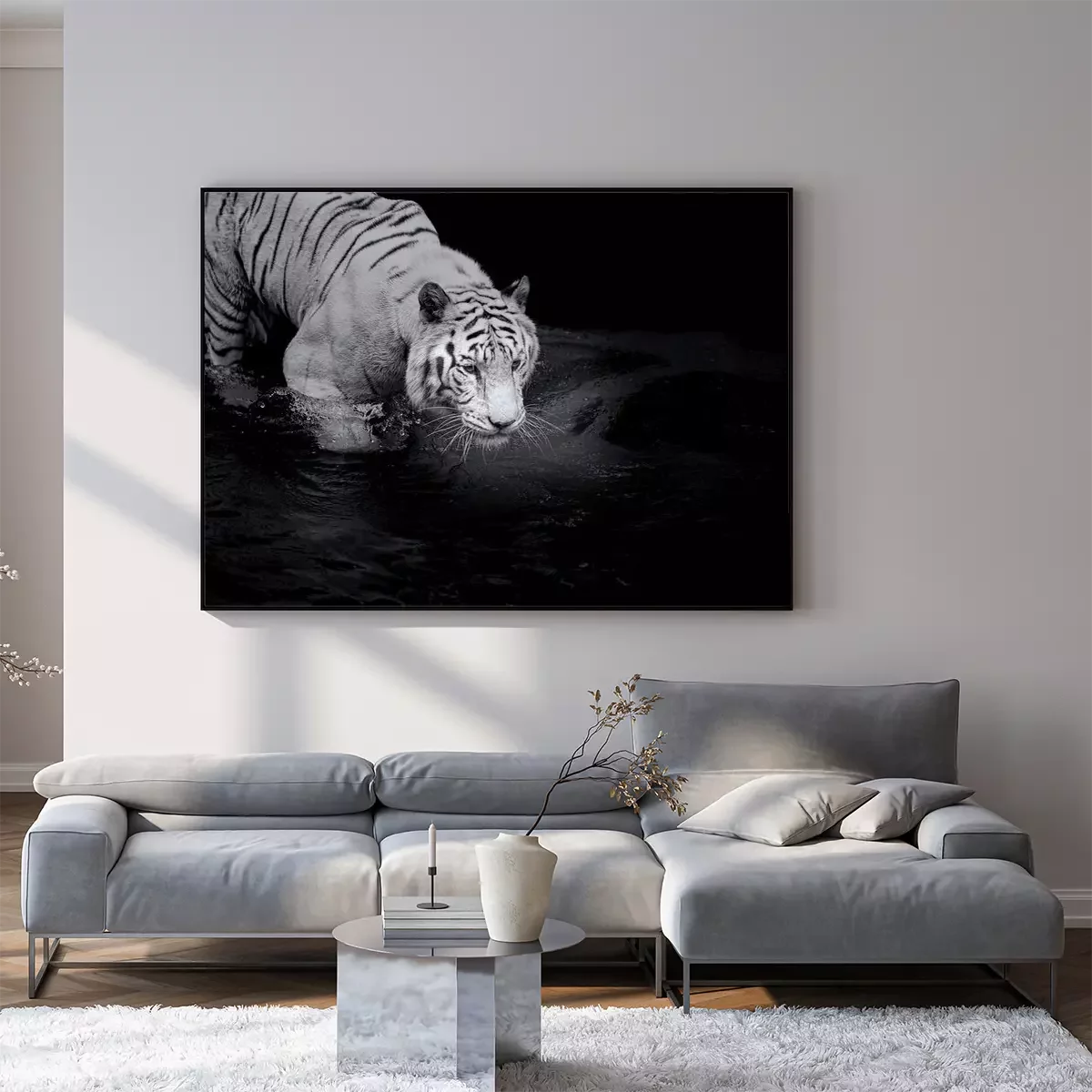Poster  Tigre blanc marchant dans l'eau