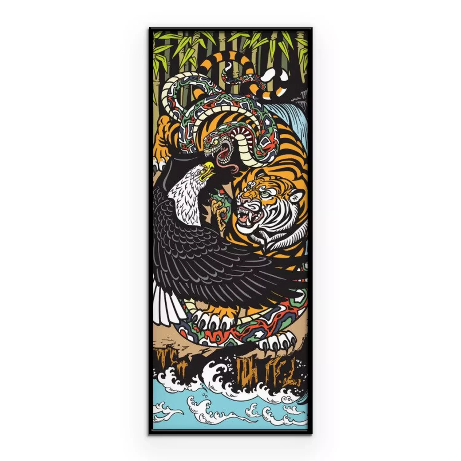 Poster : Tigre, serpent et aigle combattant des graphismes colorés