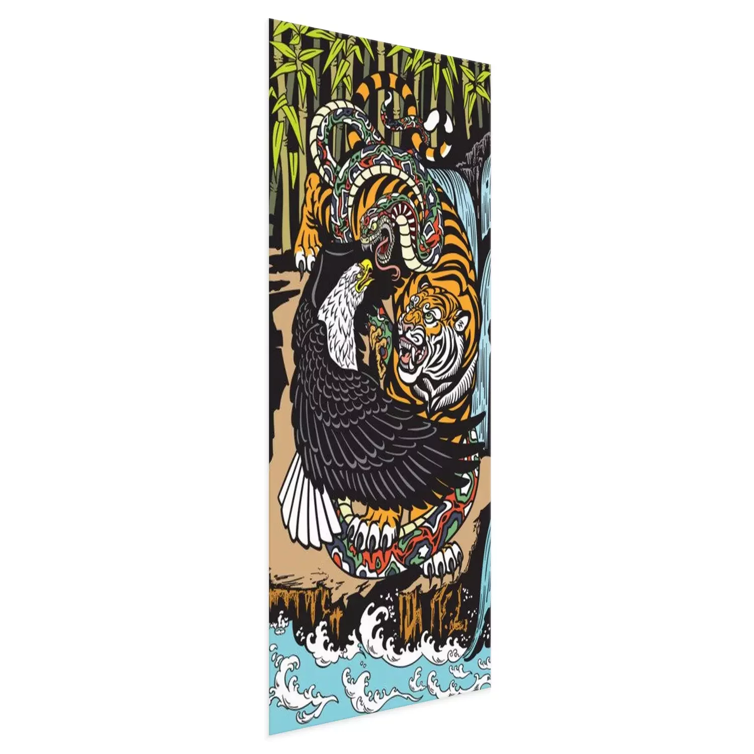 Poster  Tigre, serpent et aigle combattant des graphismes colorés