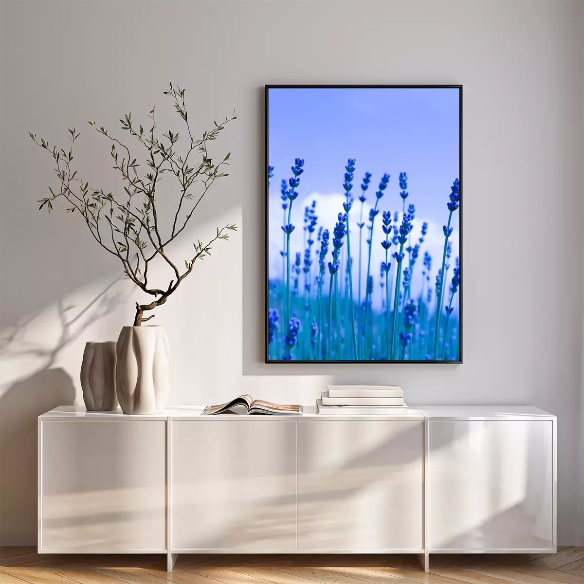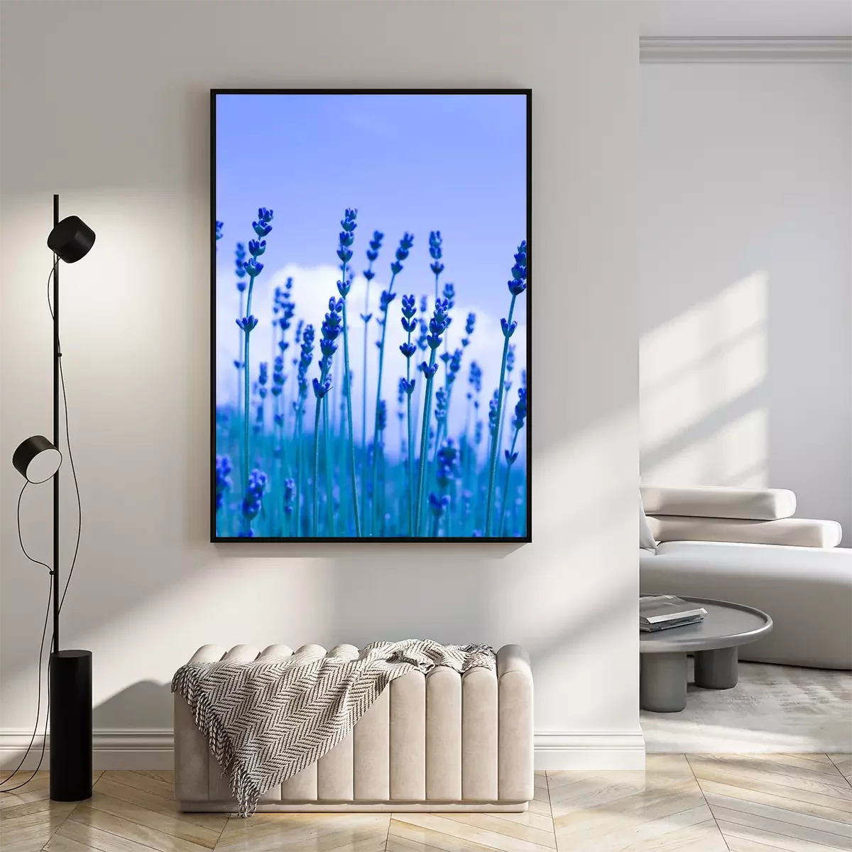 Poster : Toile de fond belle prairie de lavande sauvage violet. Un champ d'herbes violettes de lavandula qui fleurit dans une provence française.