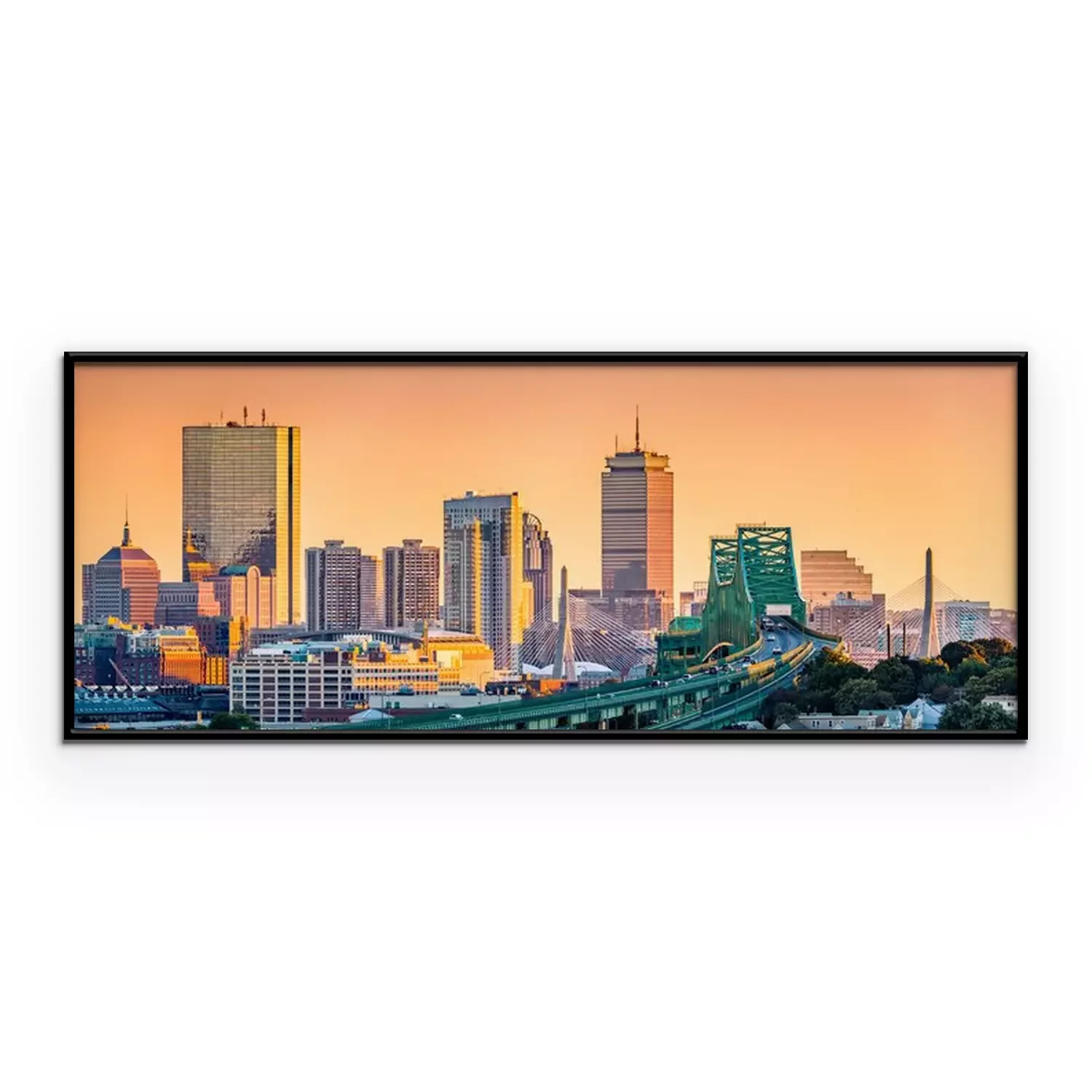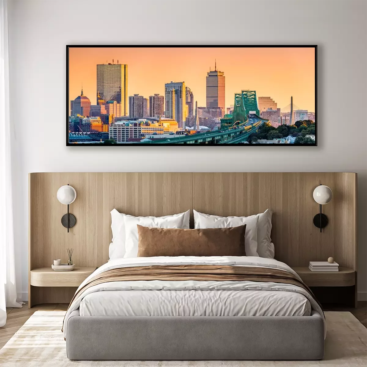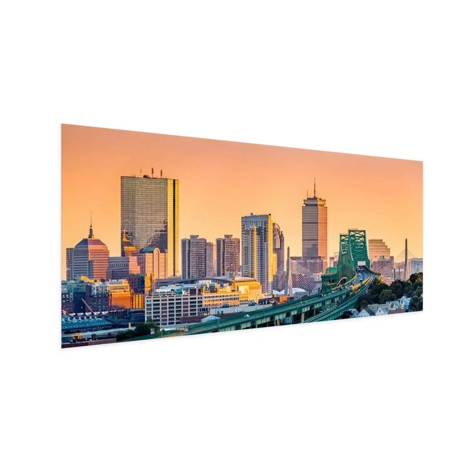 Poster : Toits de la ville de boston et pont au coucher du soleil