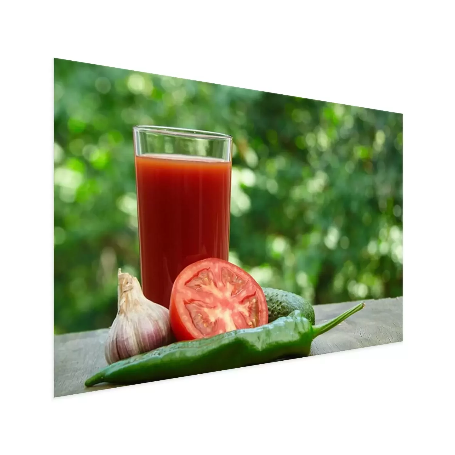Poster : Tomates fraîches, ail, jus, concombre et piment