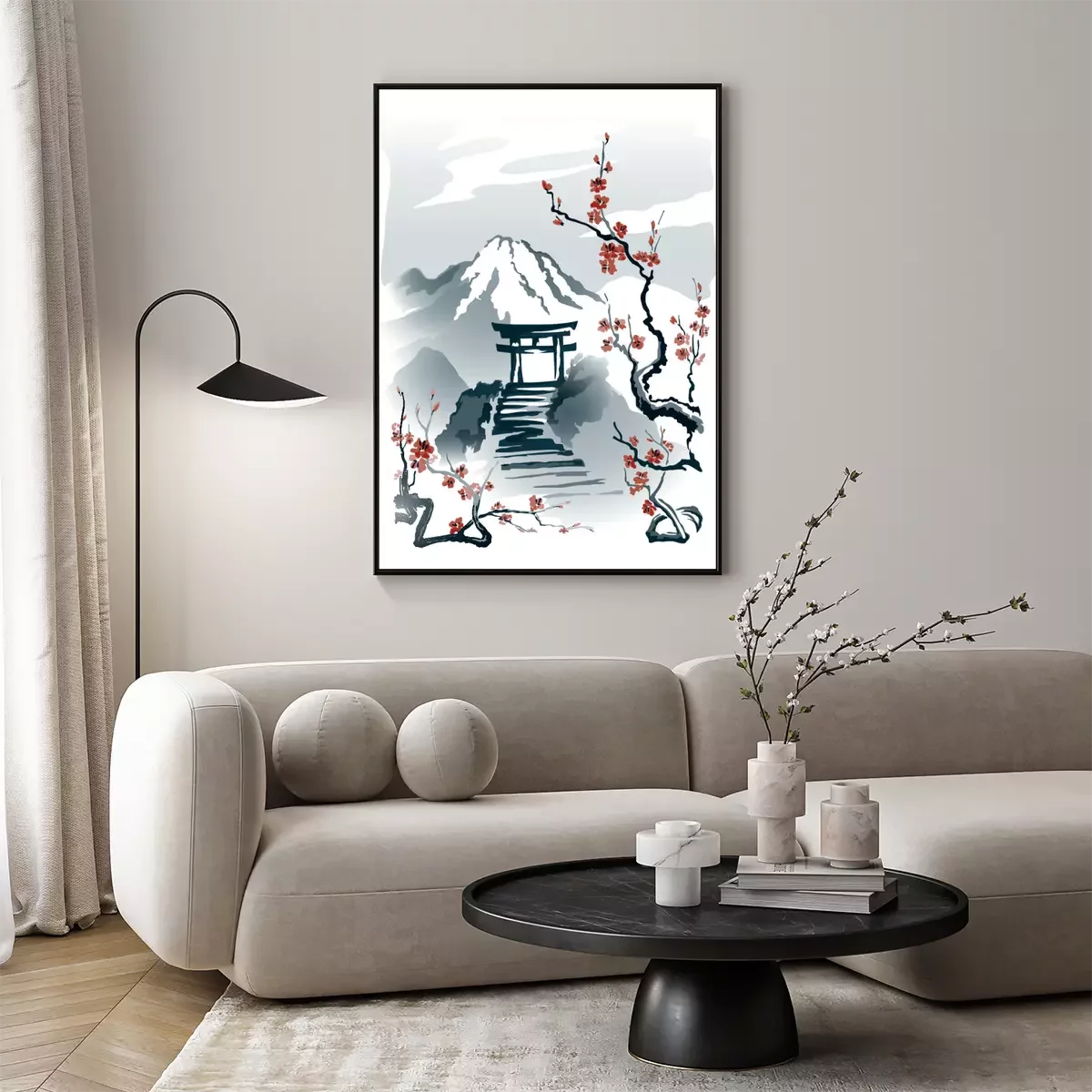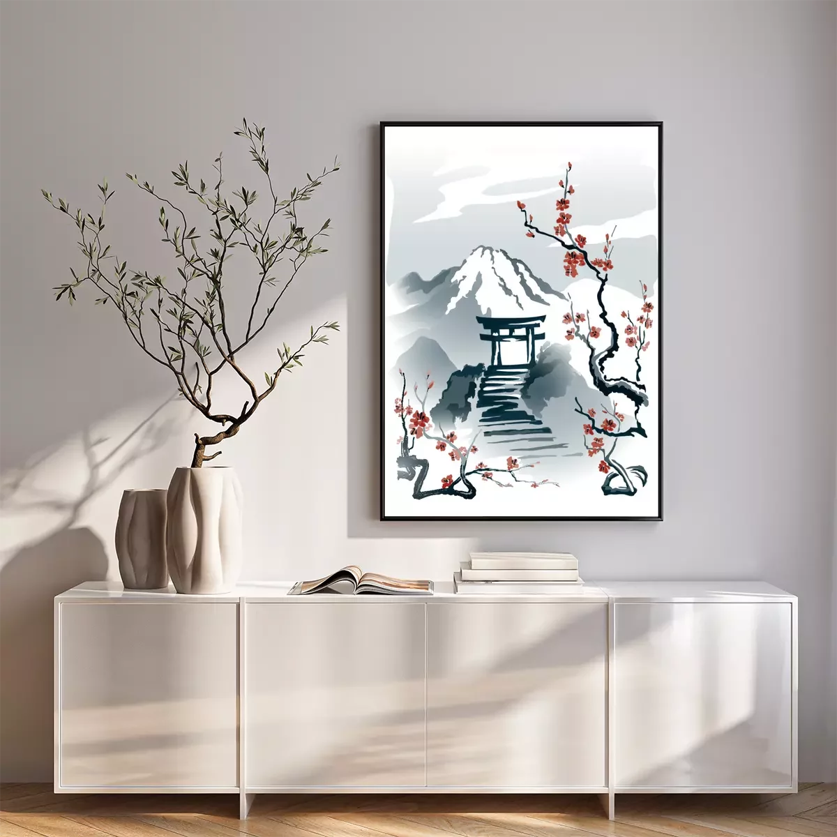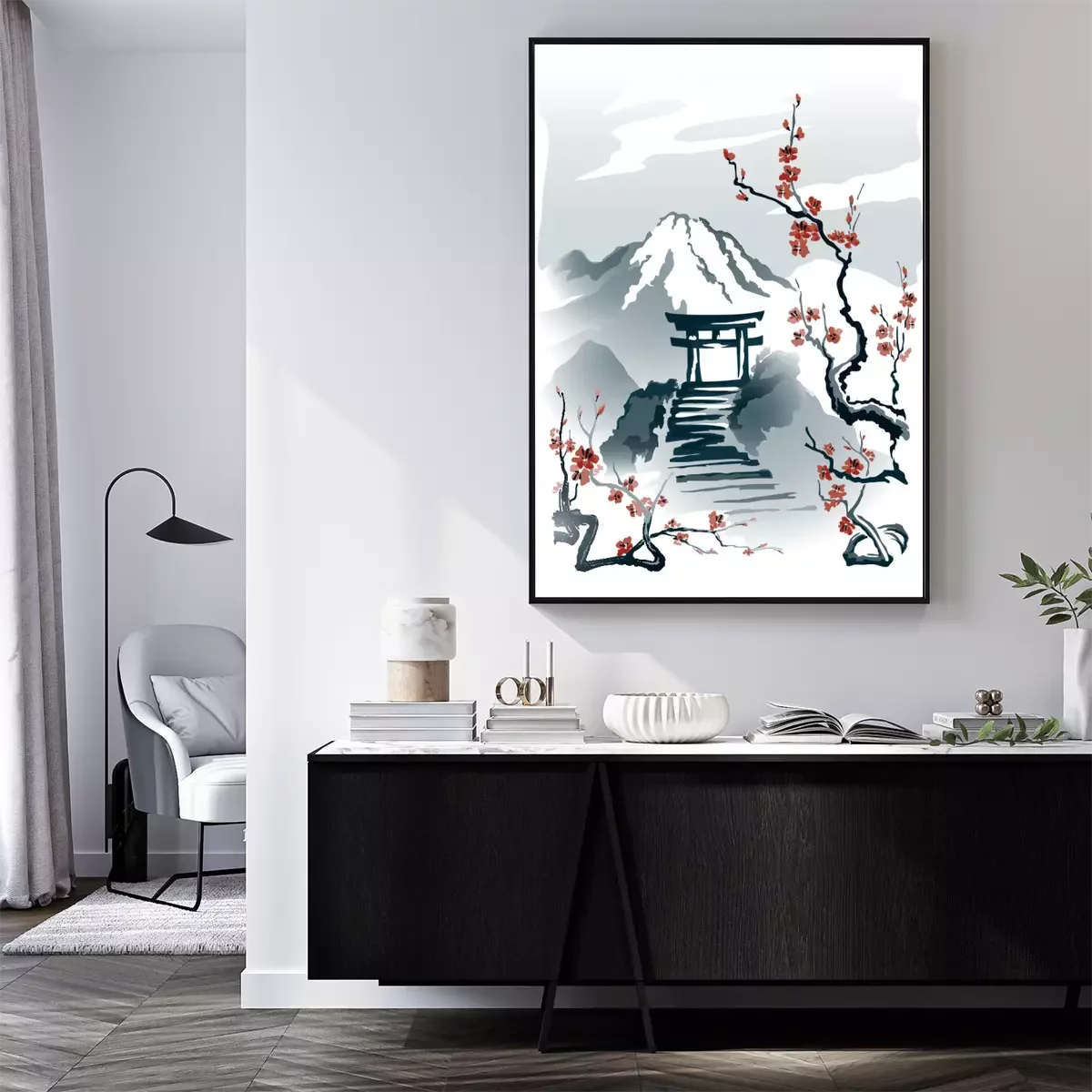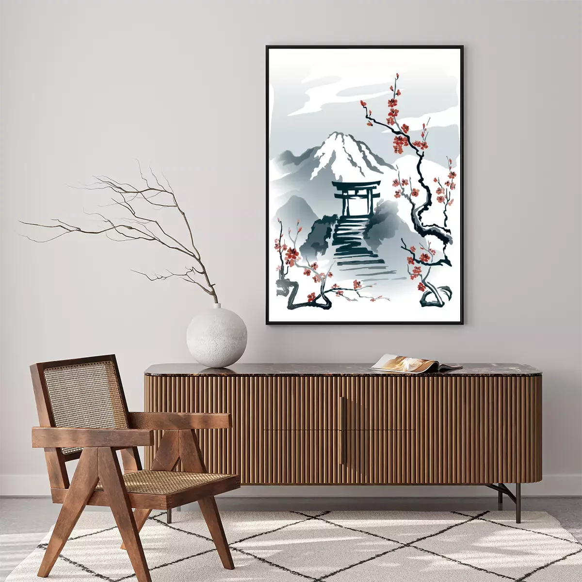 Poster : Torii sur un rocher motif dans le style japonais