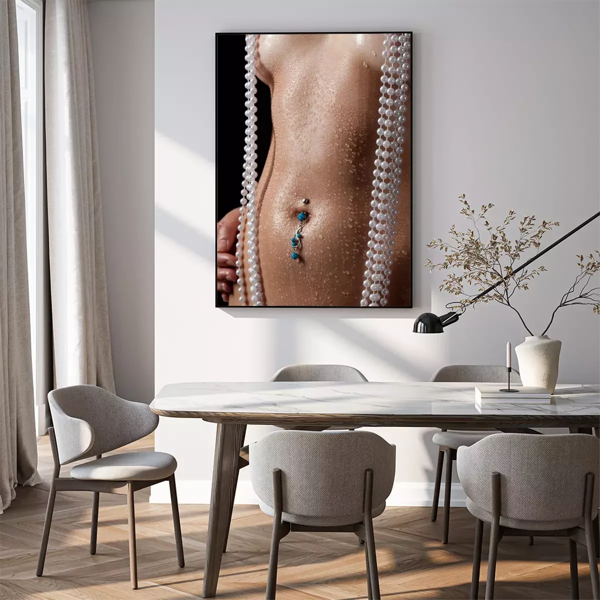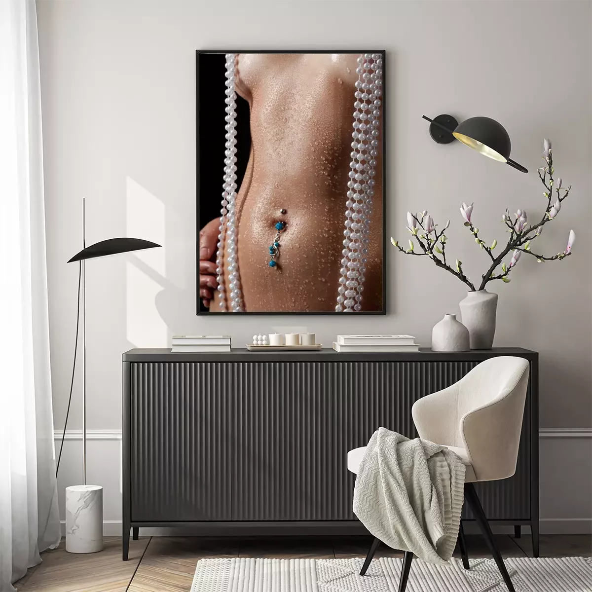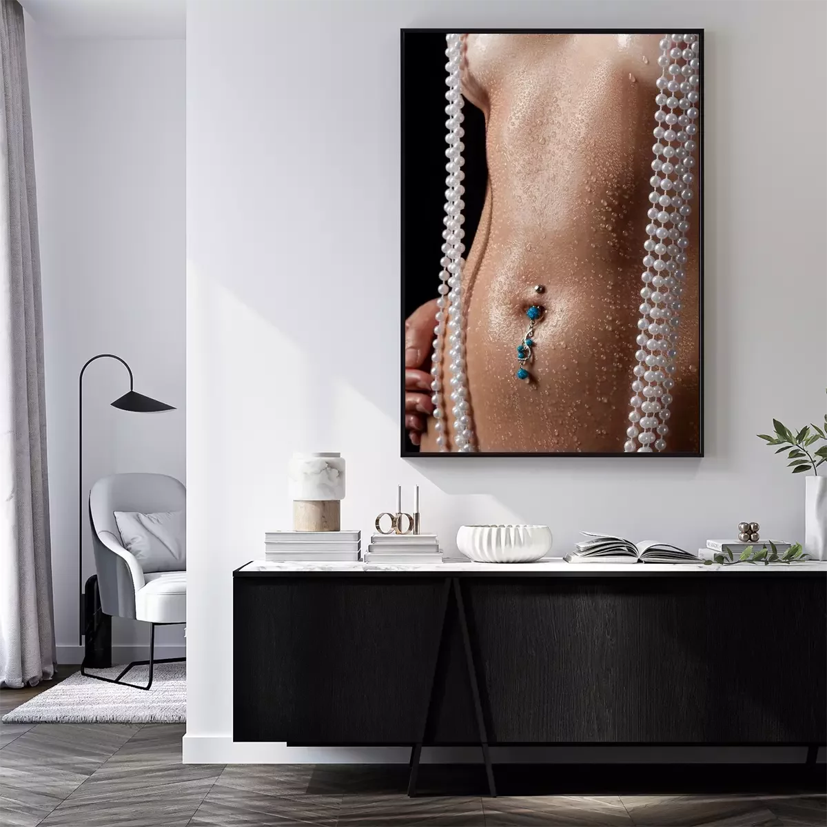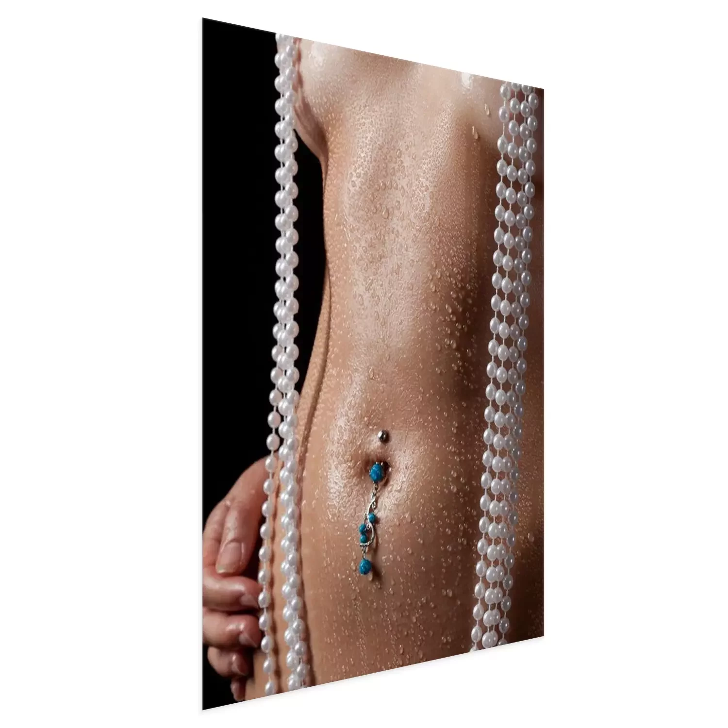 Poster : Torse mouillé avec bouton de ventre piercing et perles