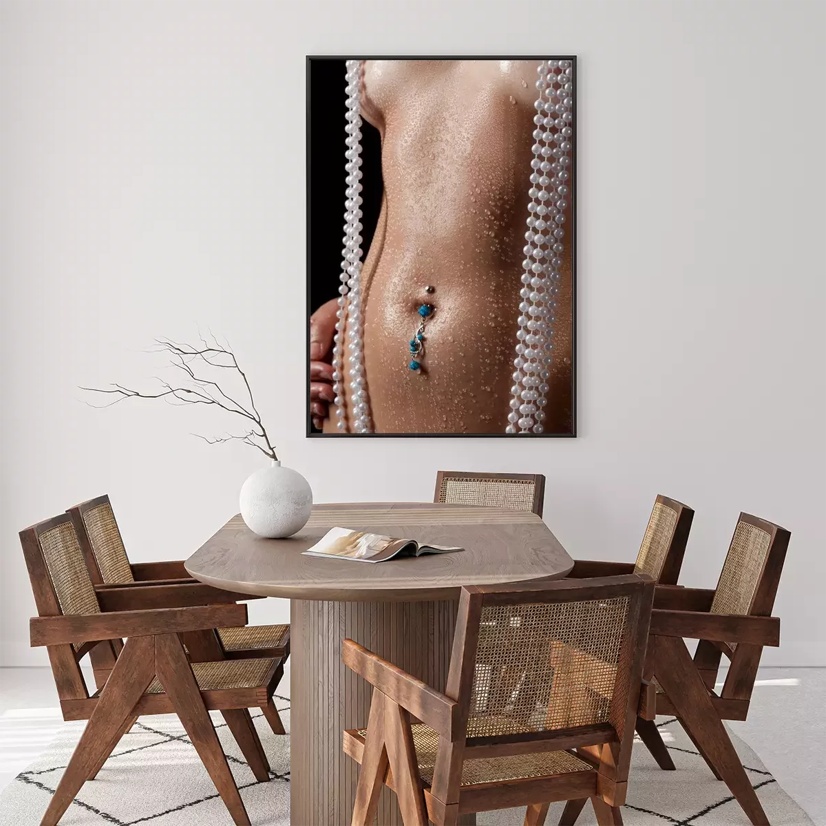 Poster  Torse mouillé avec bouton de ventre piercing et perles