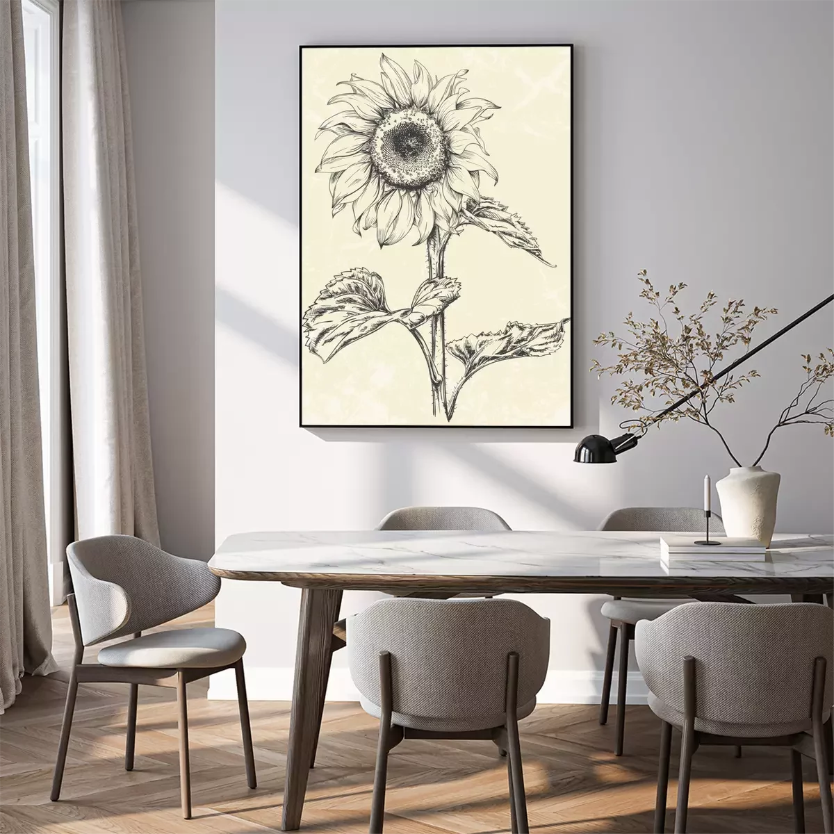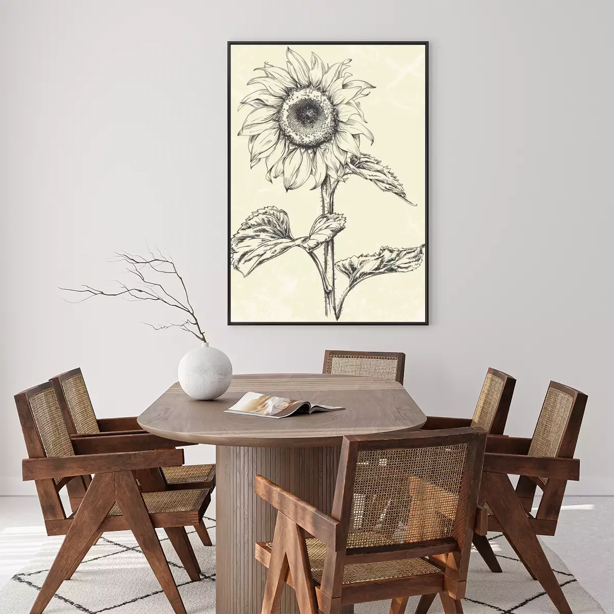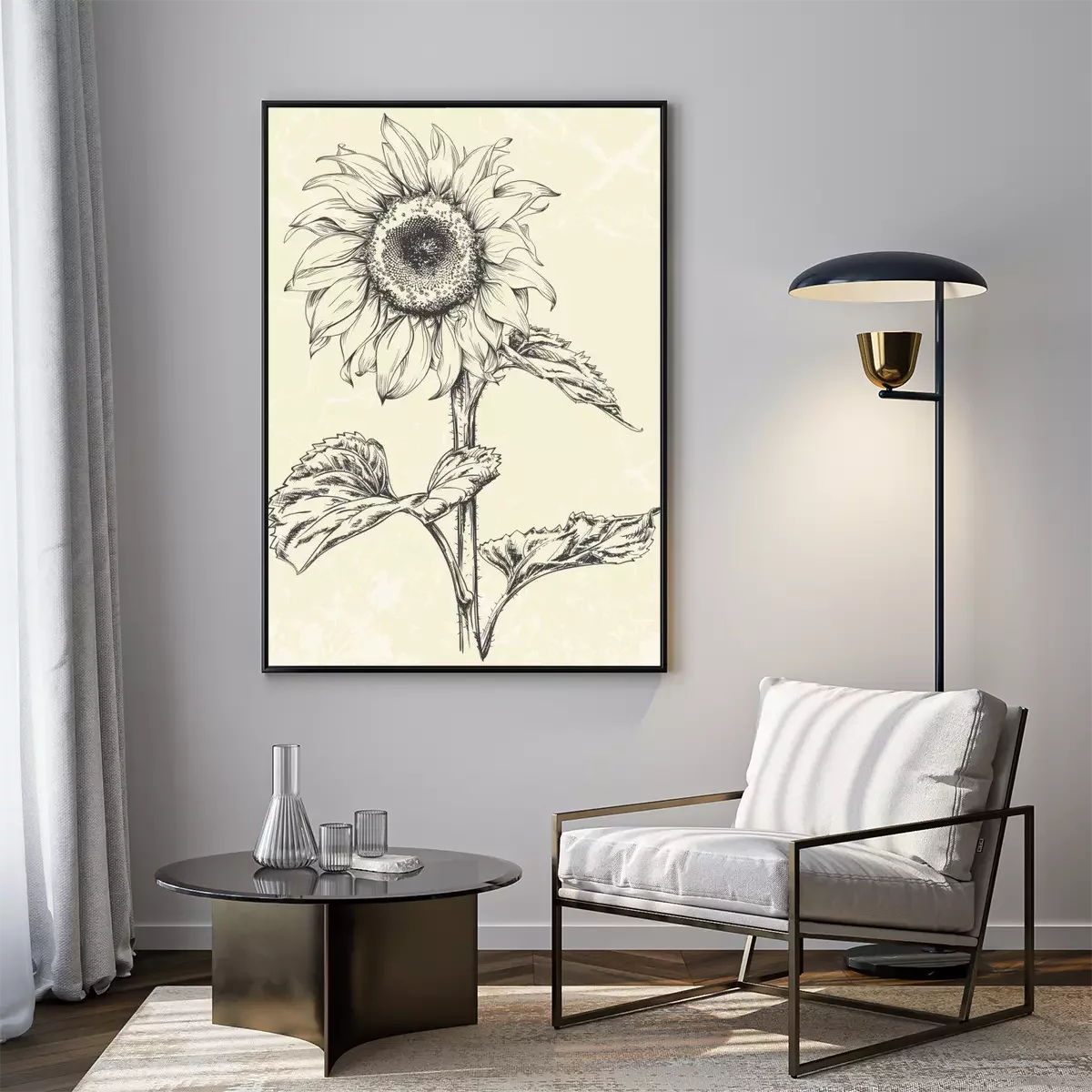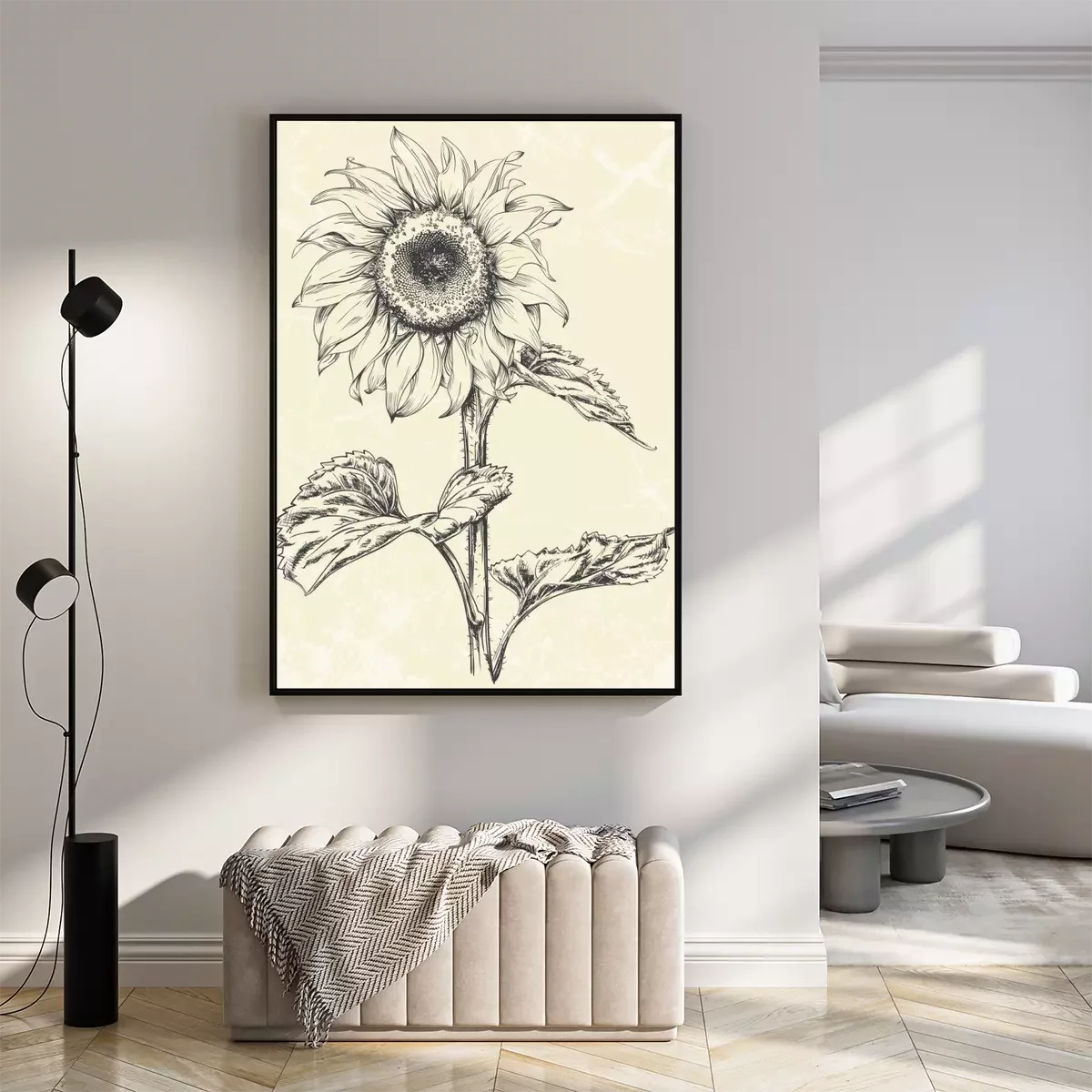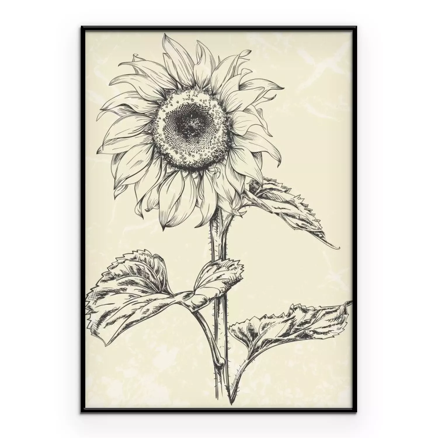 Poster  Tournesol sur une tige épaisse avec de grandes feuilles