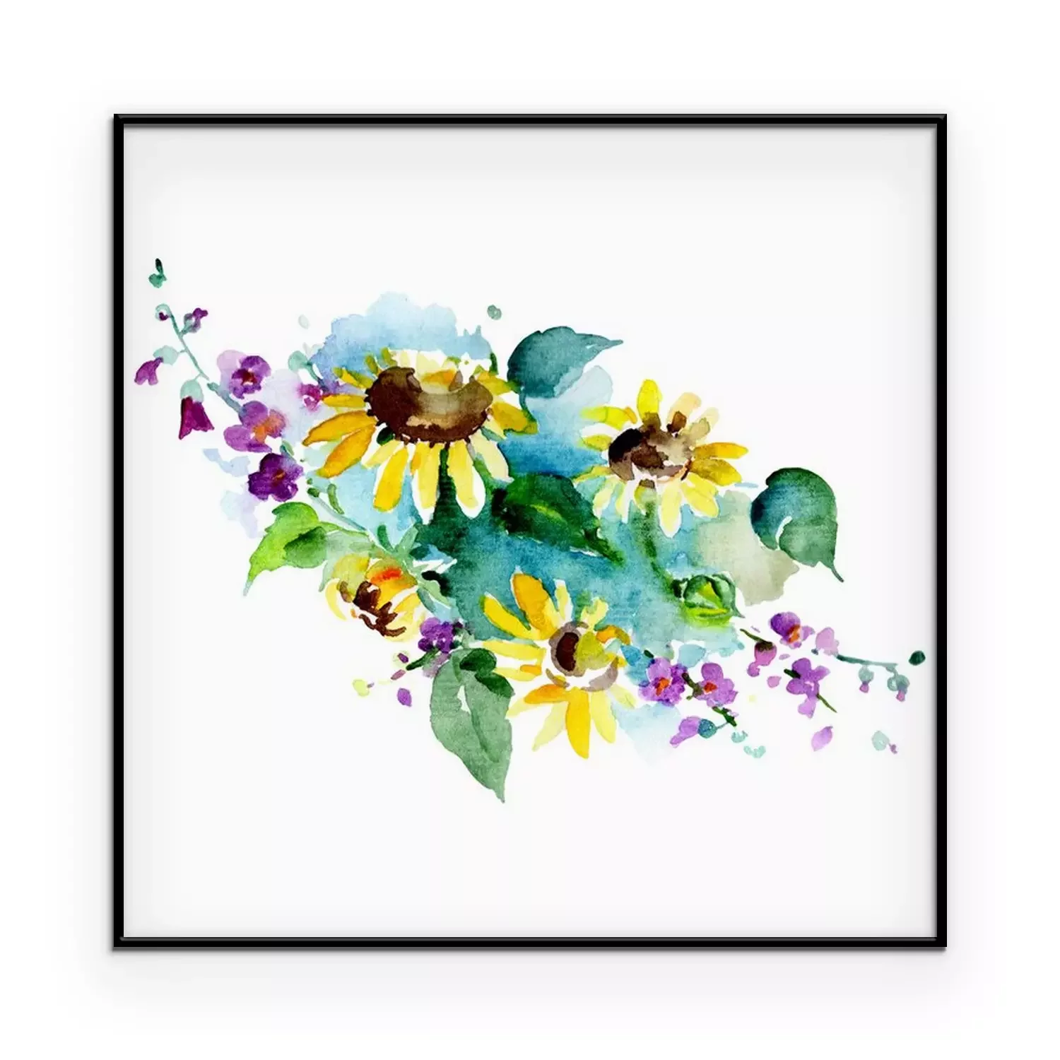 Poster : Tournesols aquarelles dans un bouquet romantique
