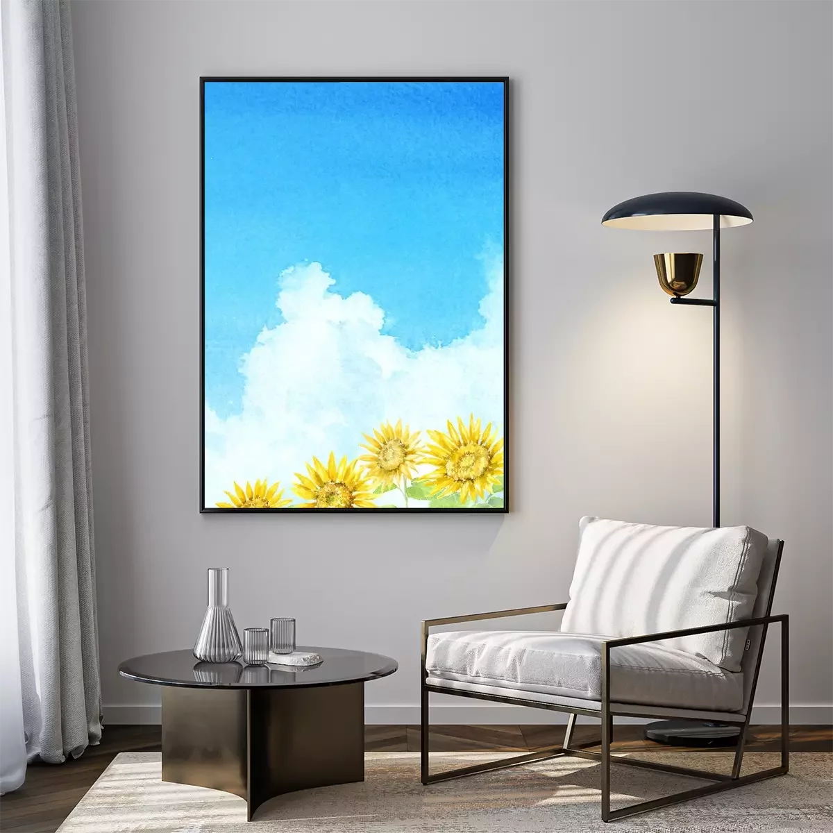 Poster : Tournesols aquarelles jetant un coup d'œil au ciel