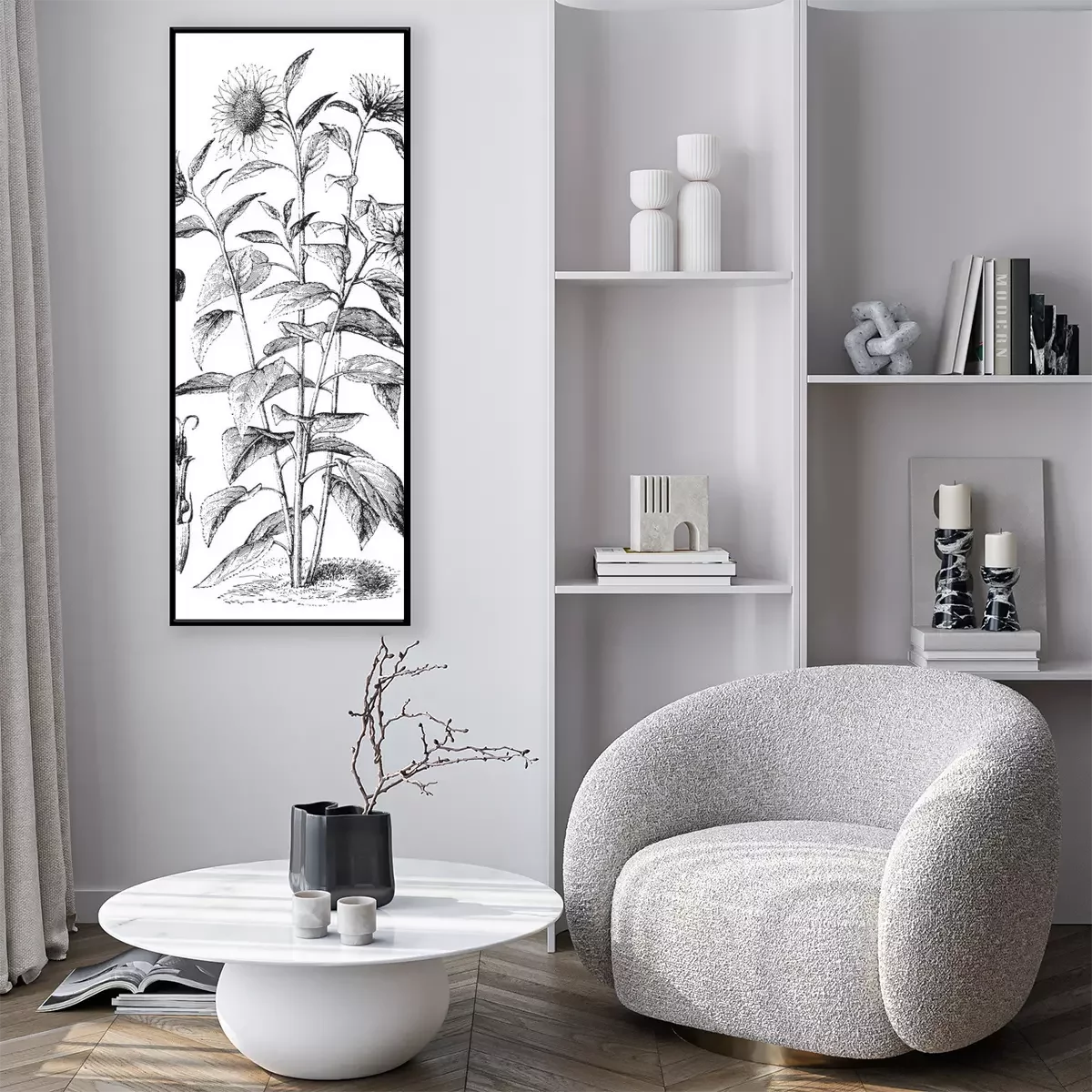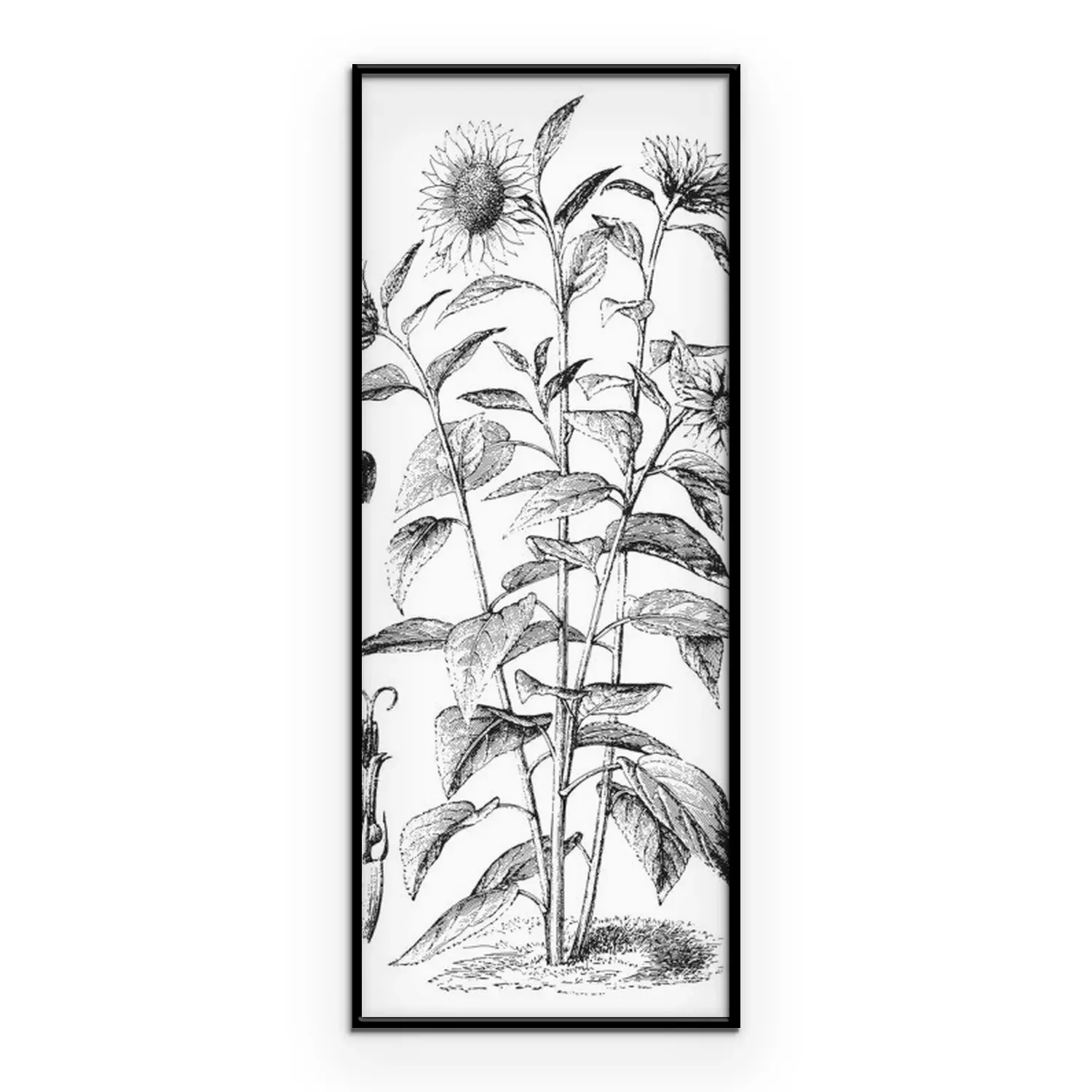 Poster  Tournesols noirs et blancs poussant hors du sol