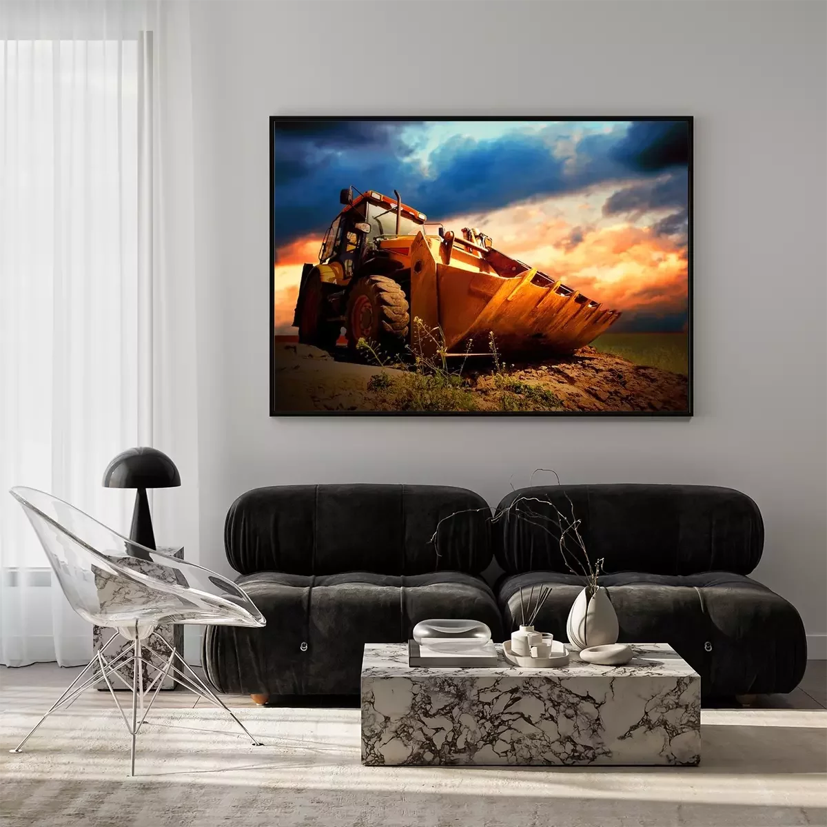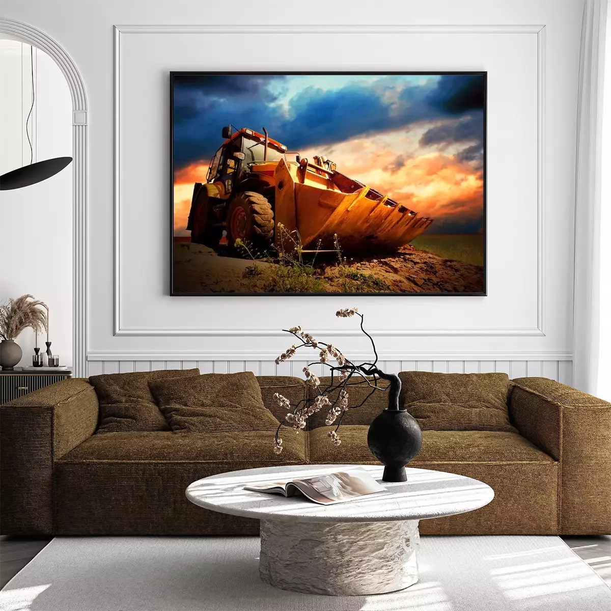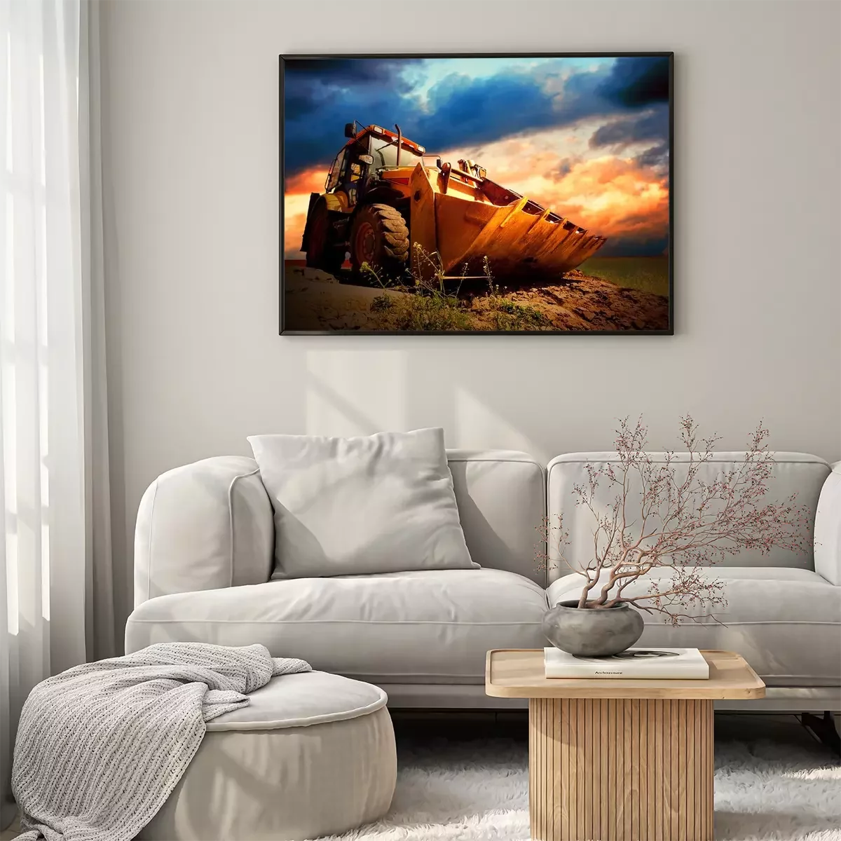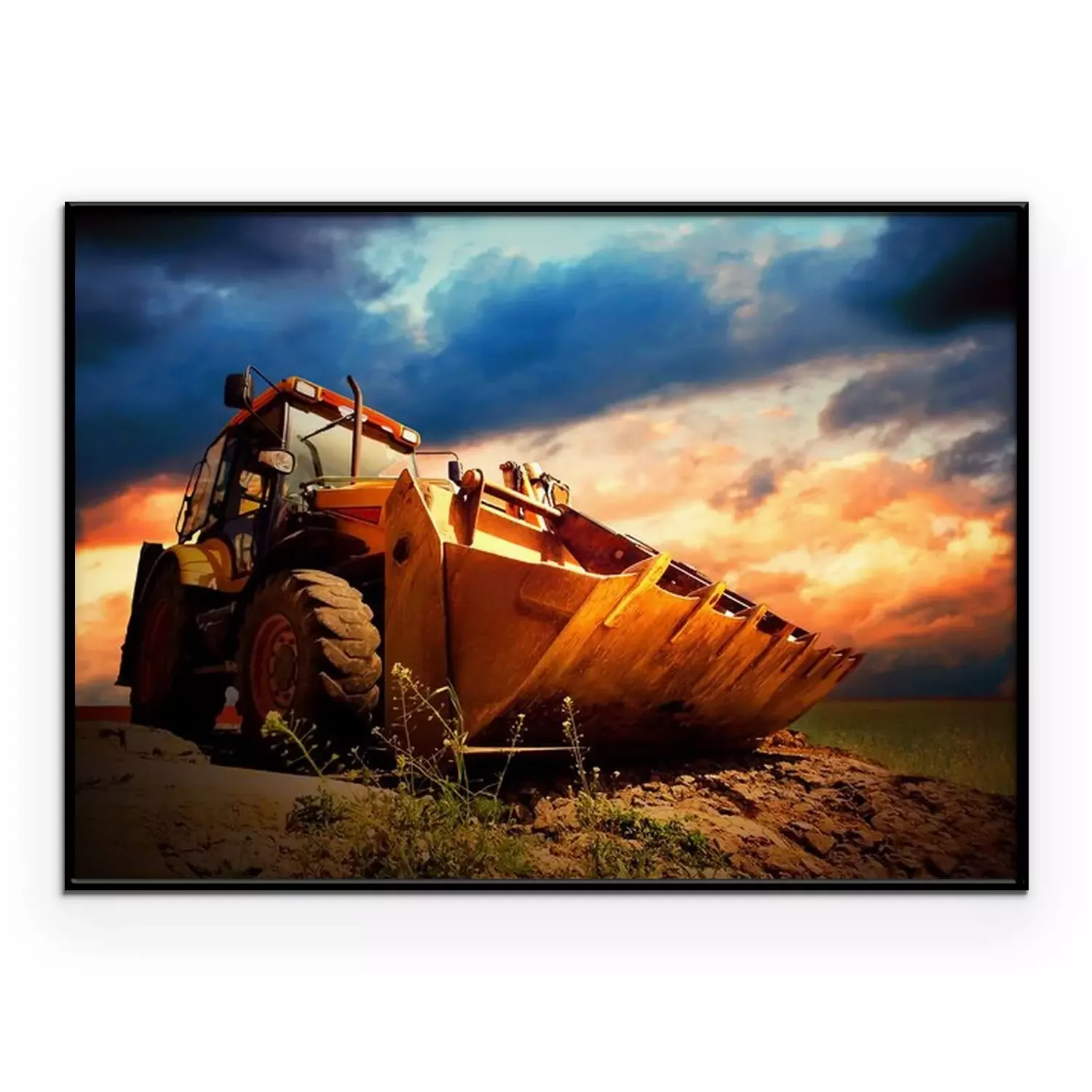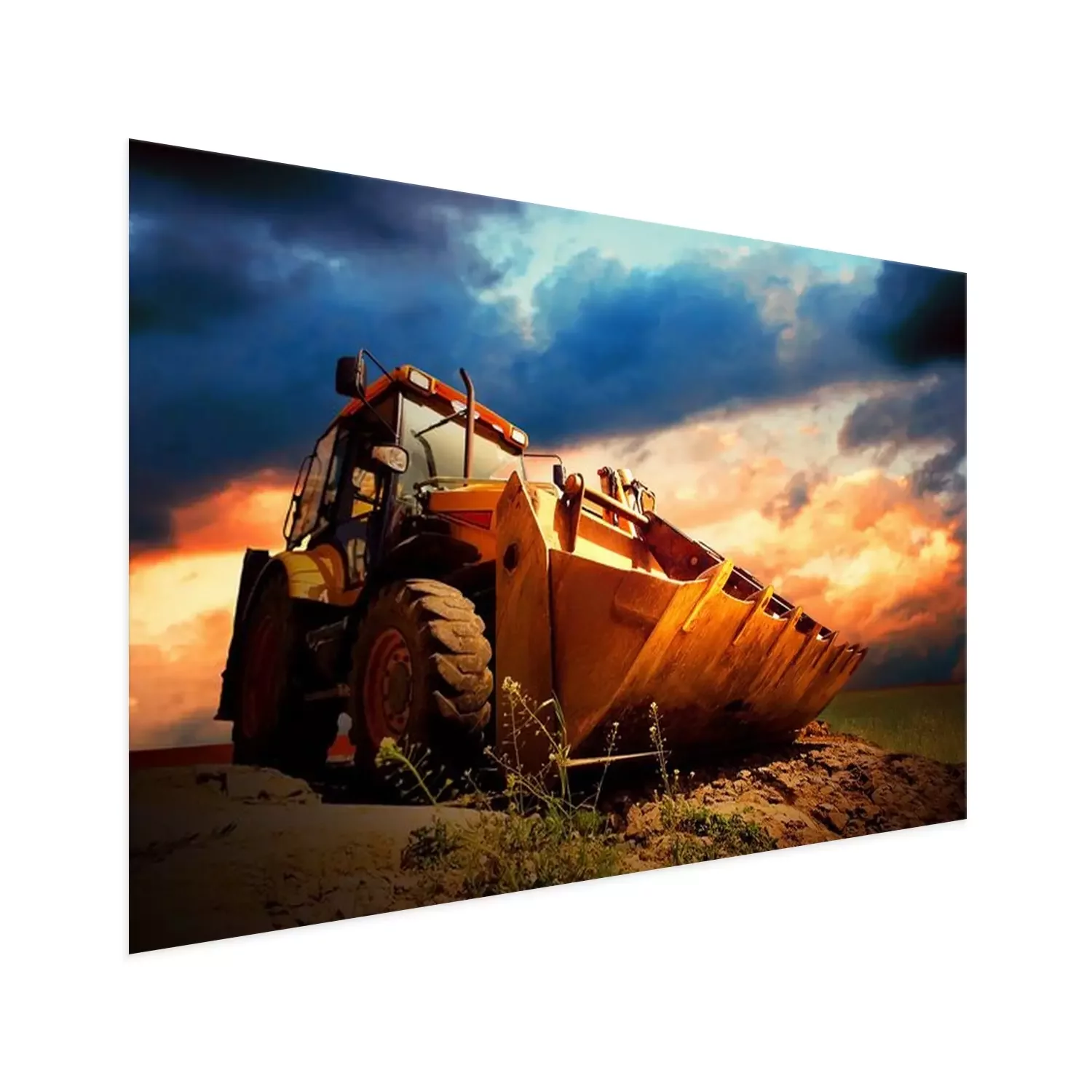 Poster : Tracteur jaune sur or surise ciel