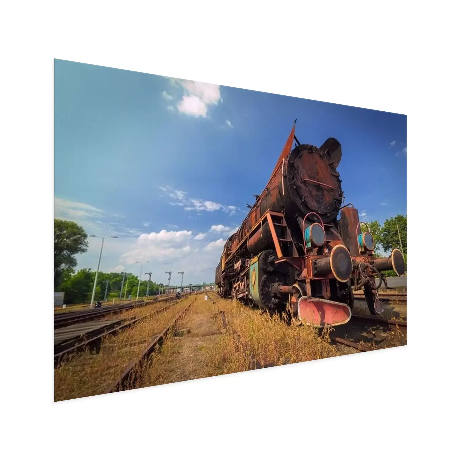 Poster : train à vapeur rouillé vieux millésime sous le ciel bleu