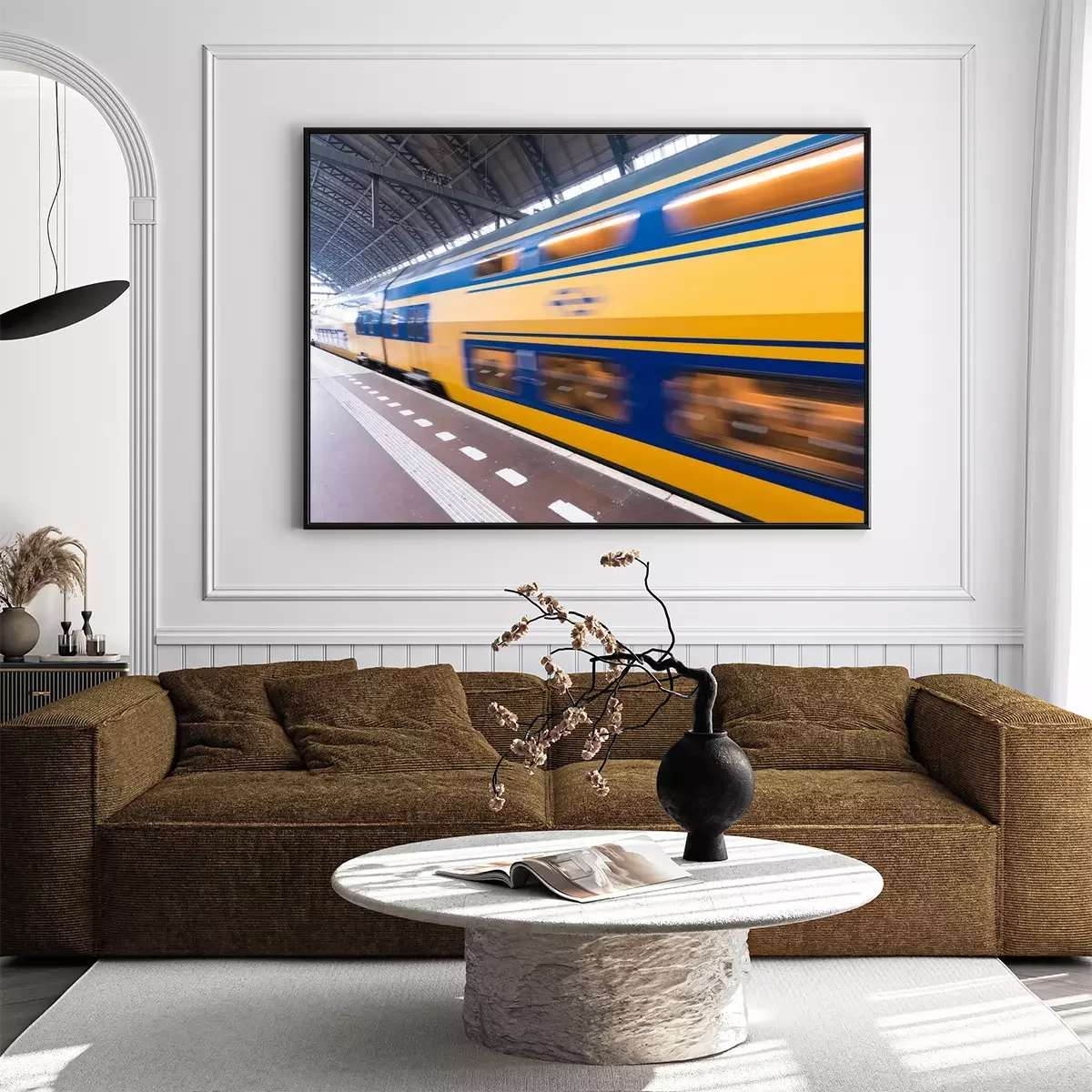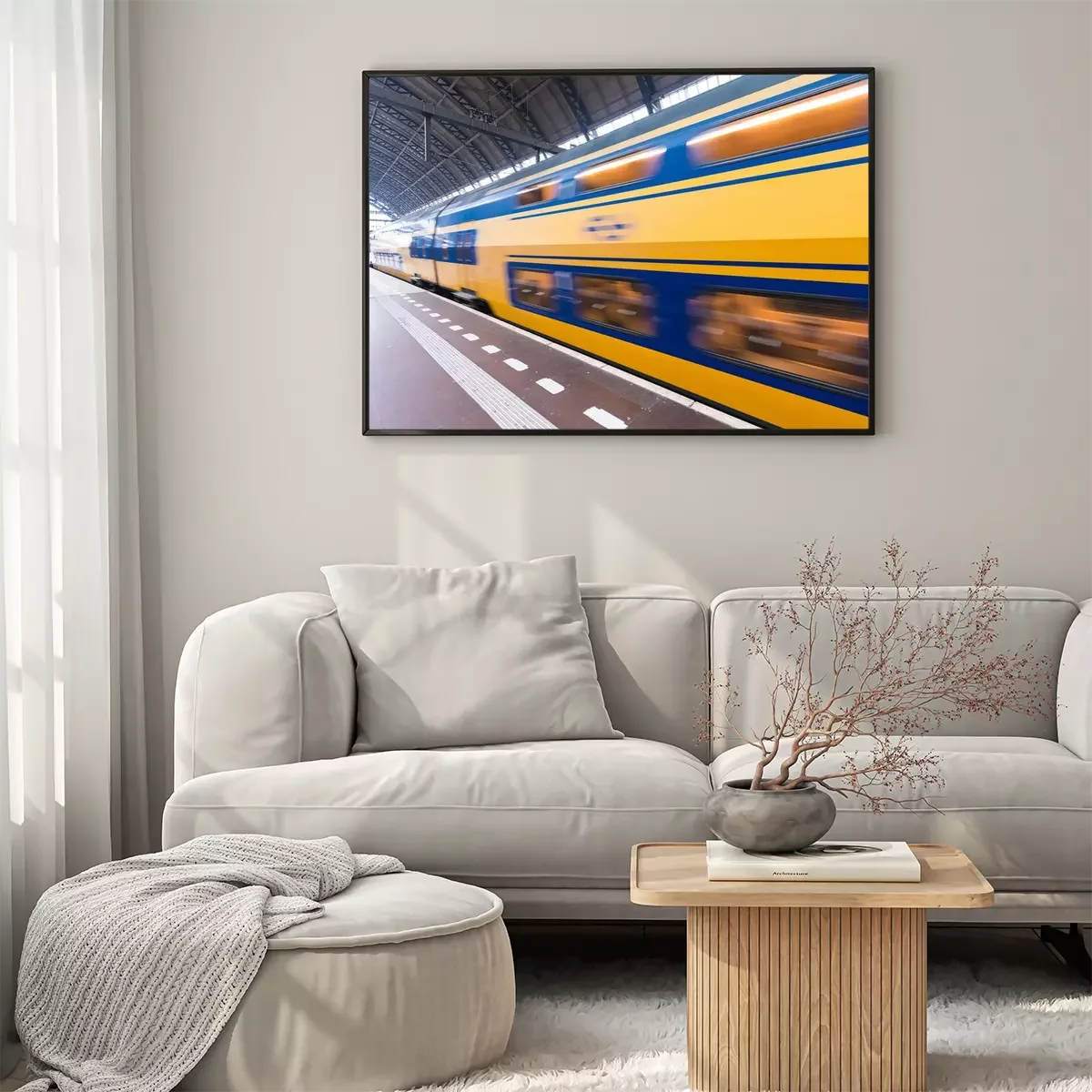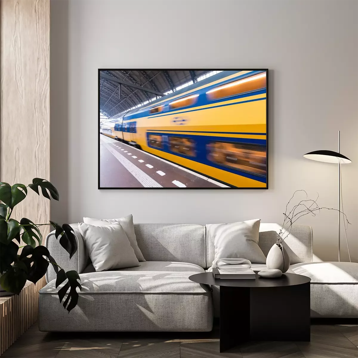 Poster  Train en mouvement rapide à la gare centrale d'Amsterdam