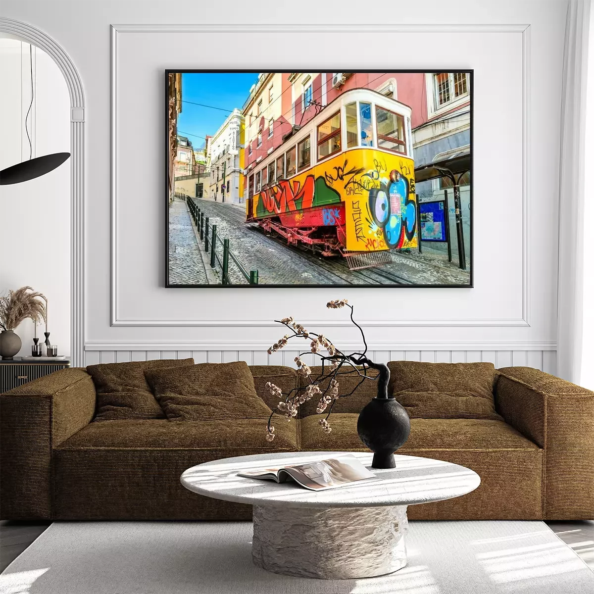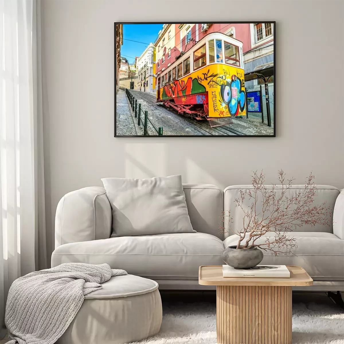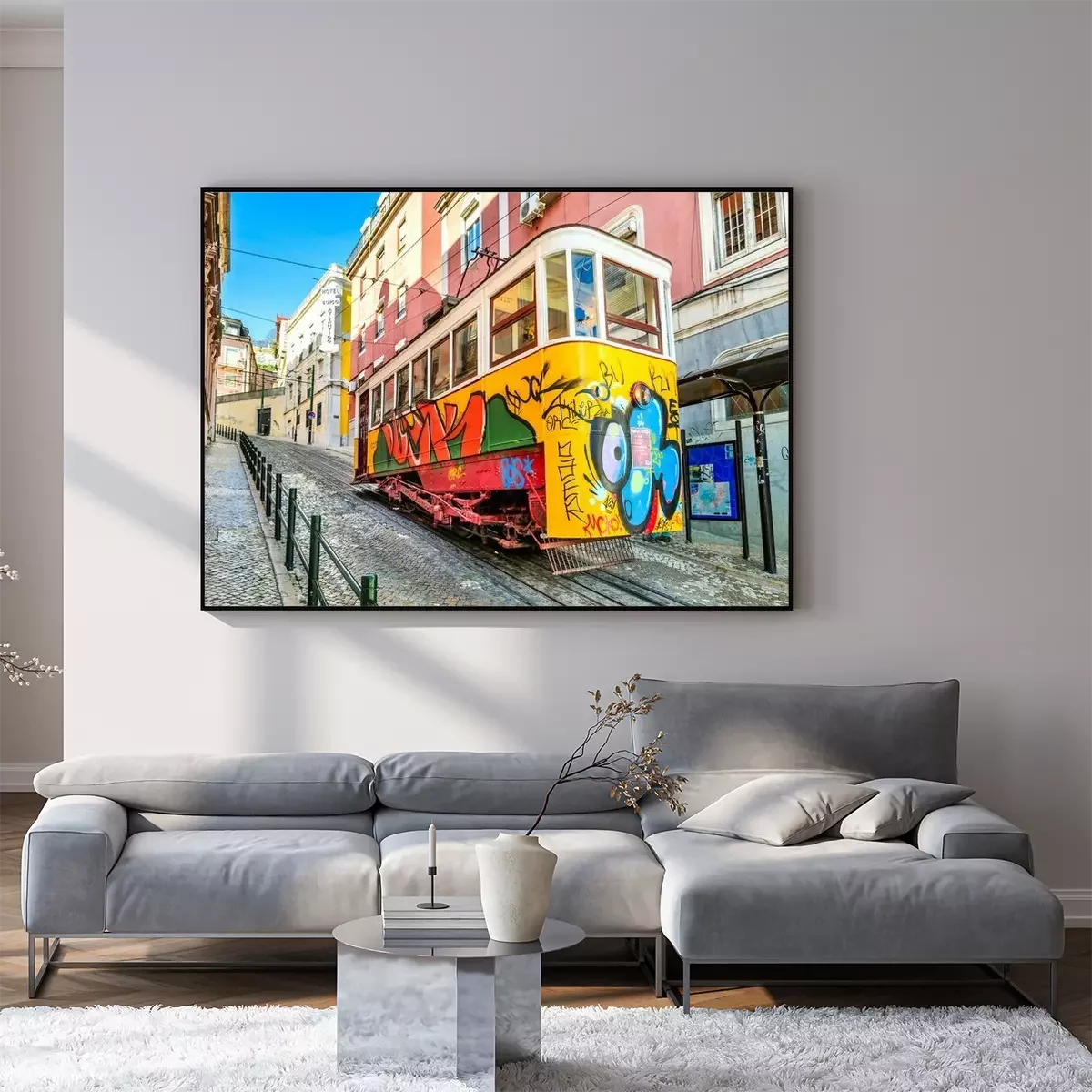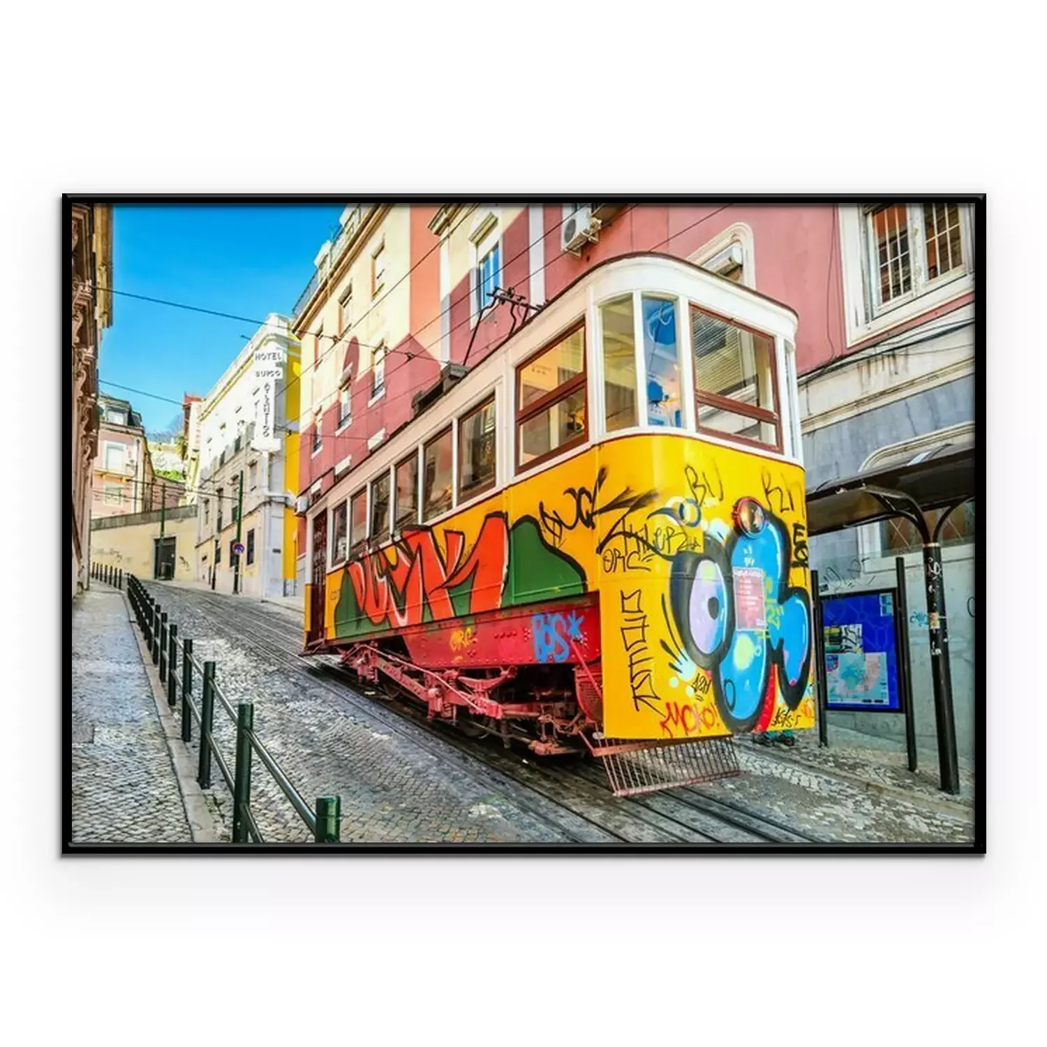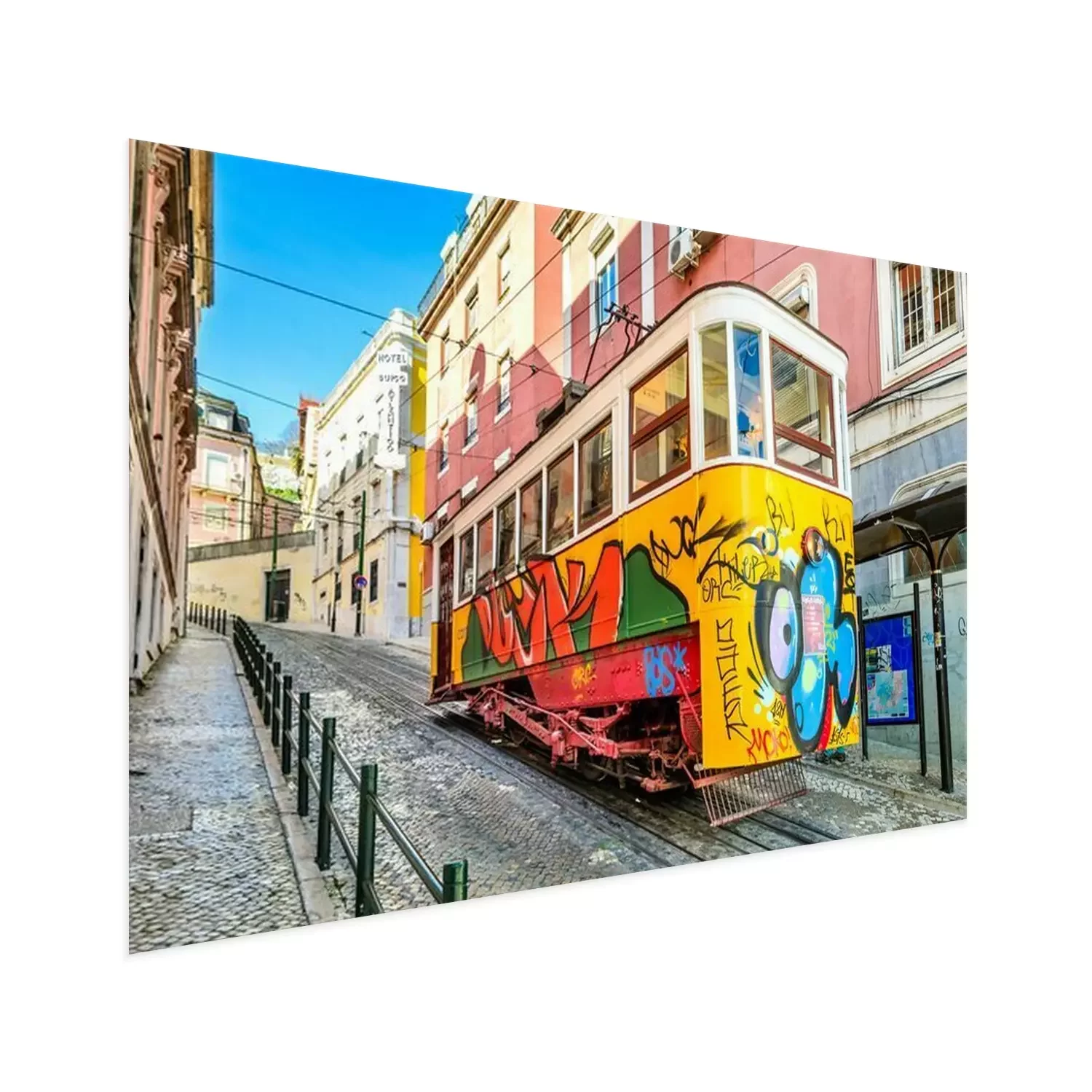 Poster : Tramway jaune de Lisbonne avec graffiti
