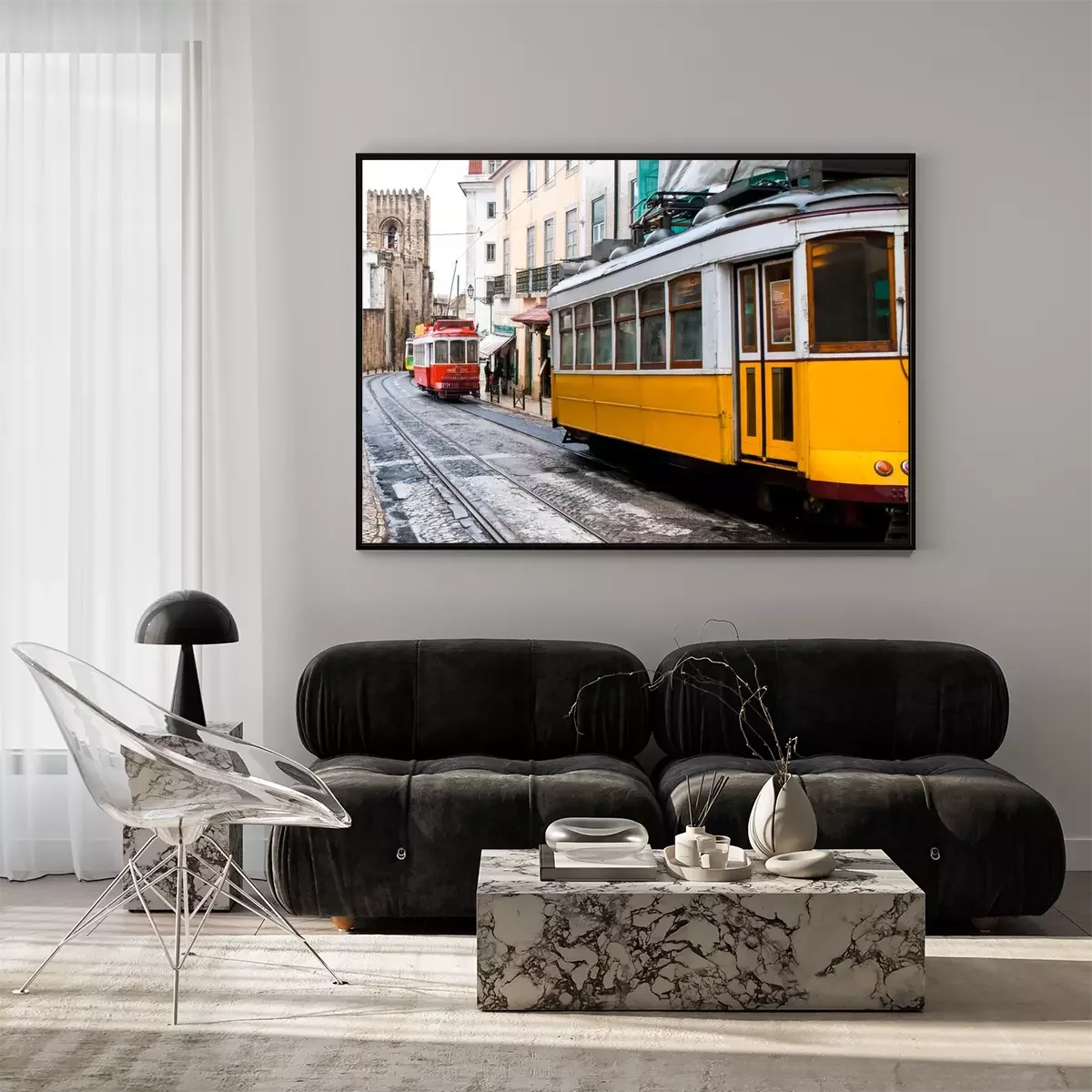 Poster : Tramways de Lisbonne Portugal sur la rue