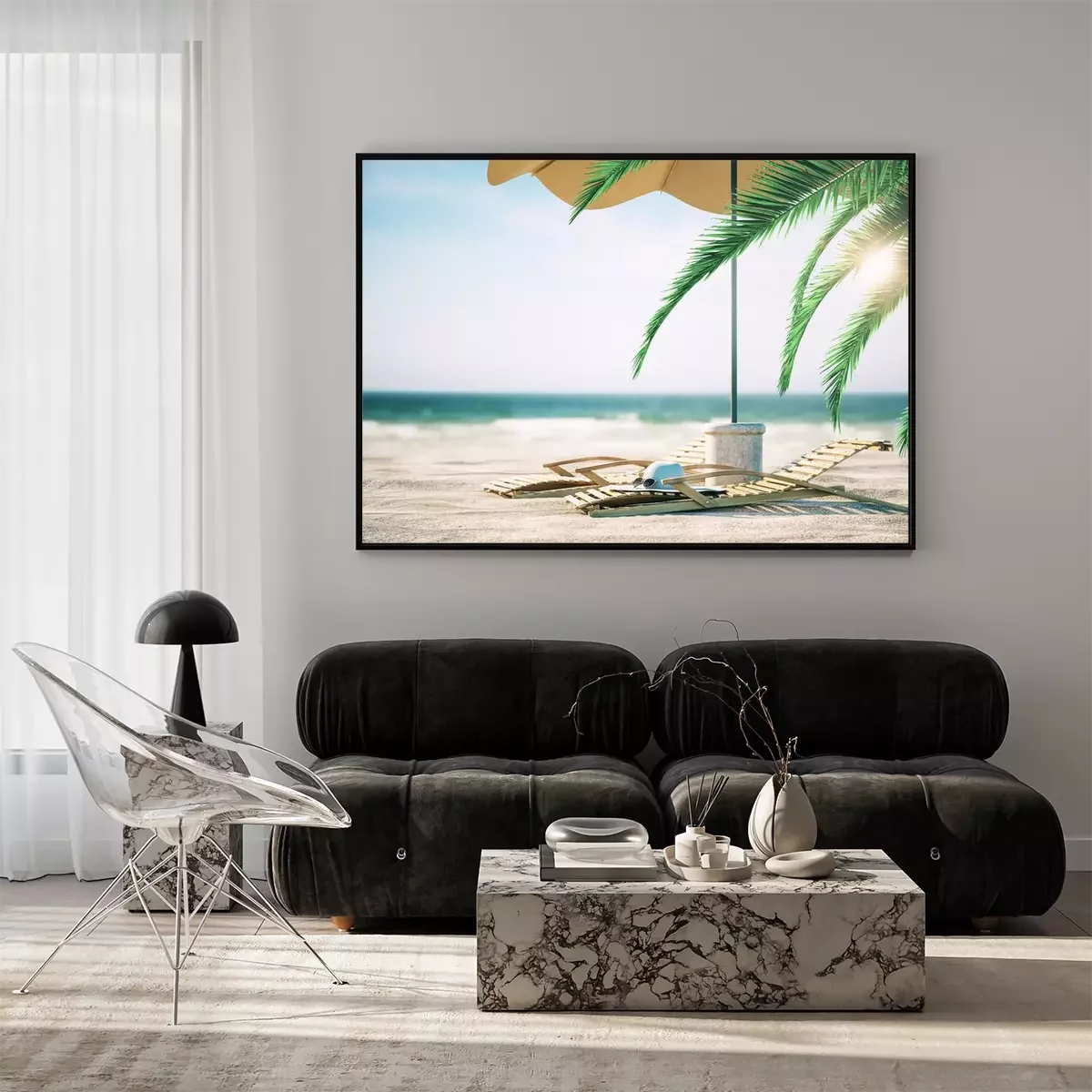 Poster : Transats sur une plage exotique