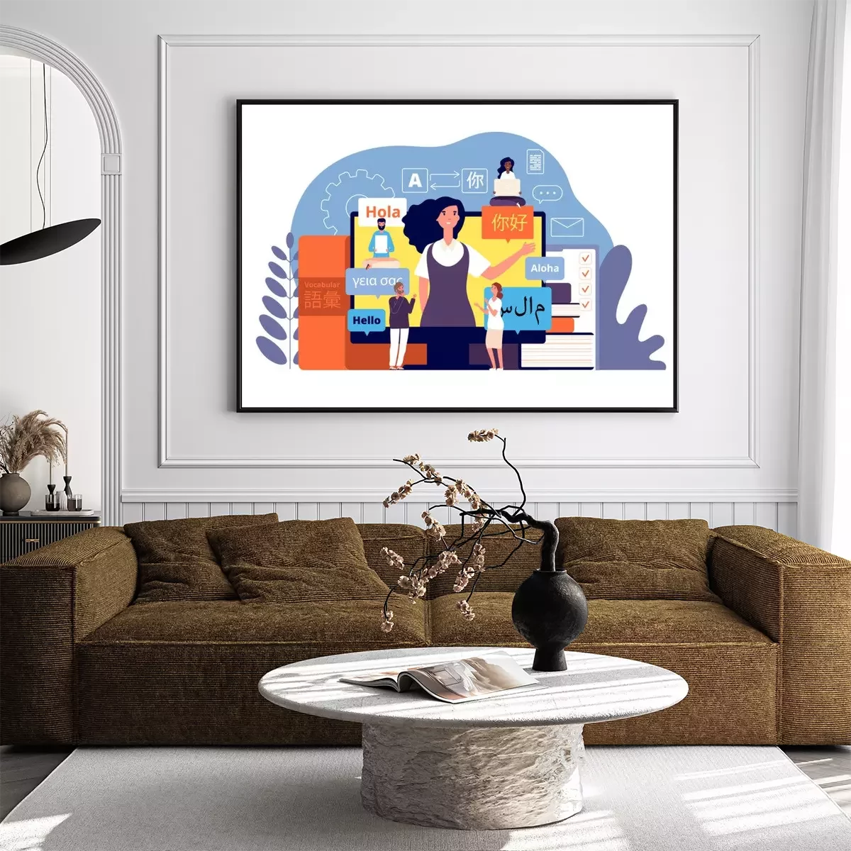 Poster  Translator. Multilingual language translators app, learning foreign. Vocabularies, technology international communication vector concept. Language translate, dictionary translator illustration
