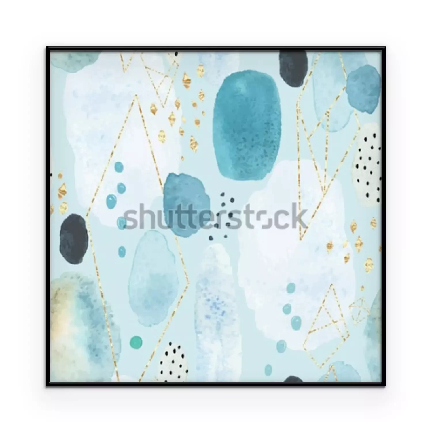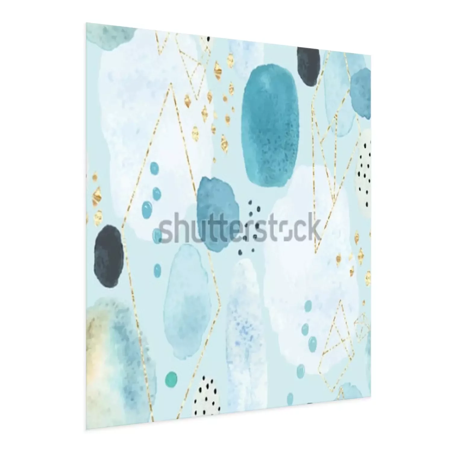 Poster  Transparente motif abstrait avec aquarelles colorées et éléments décoratifs de la texture dorée. Illustration à la main de vecteur sur fond turquoise.