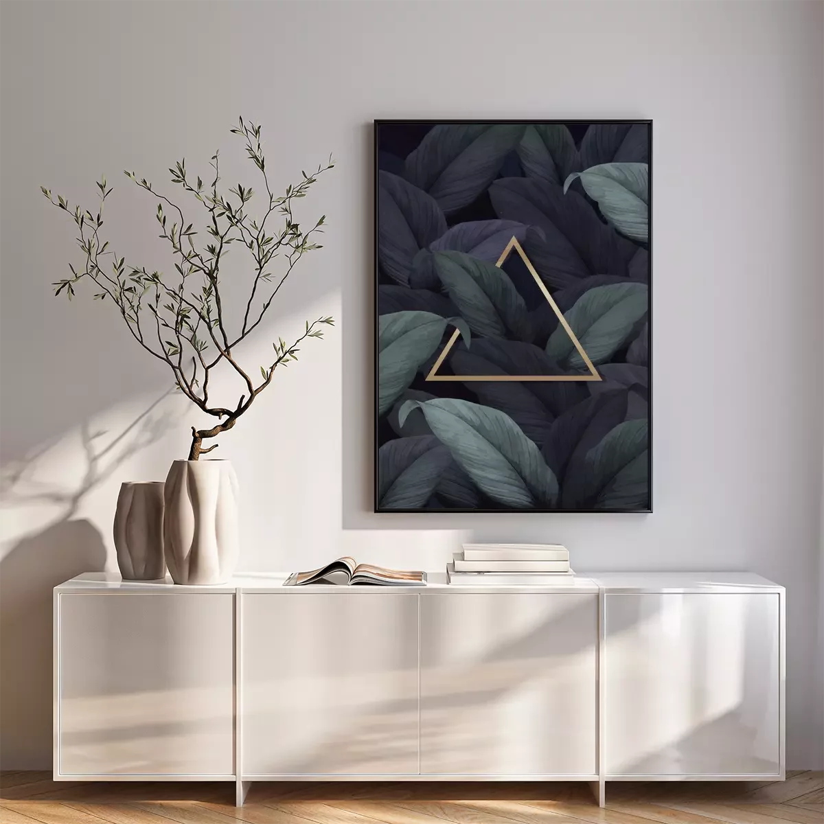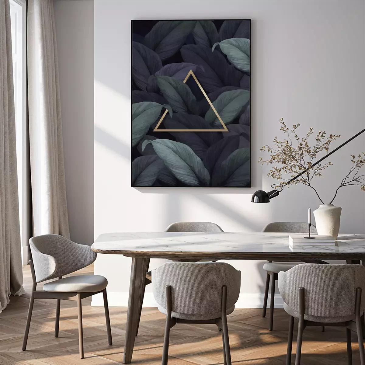 Poster  Triangle d'or parmi les feuilles sombres