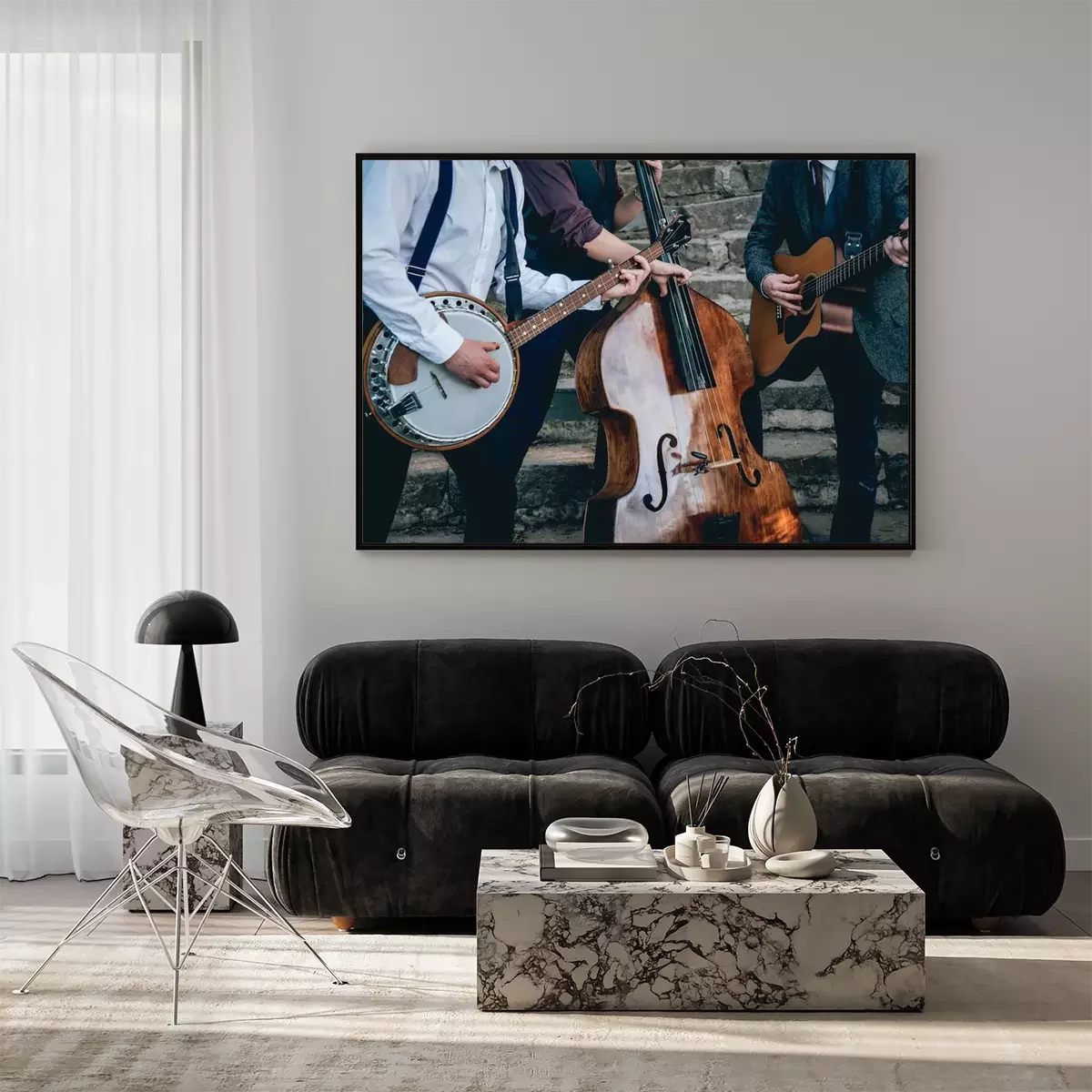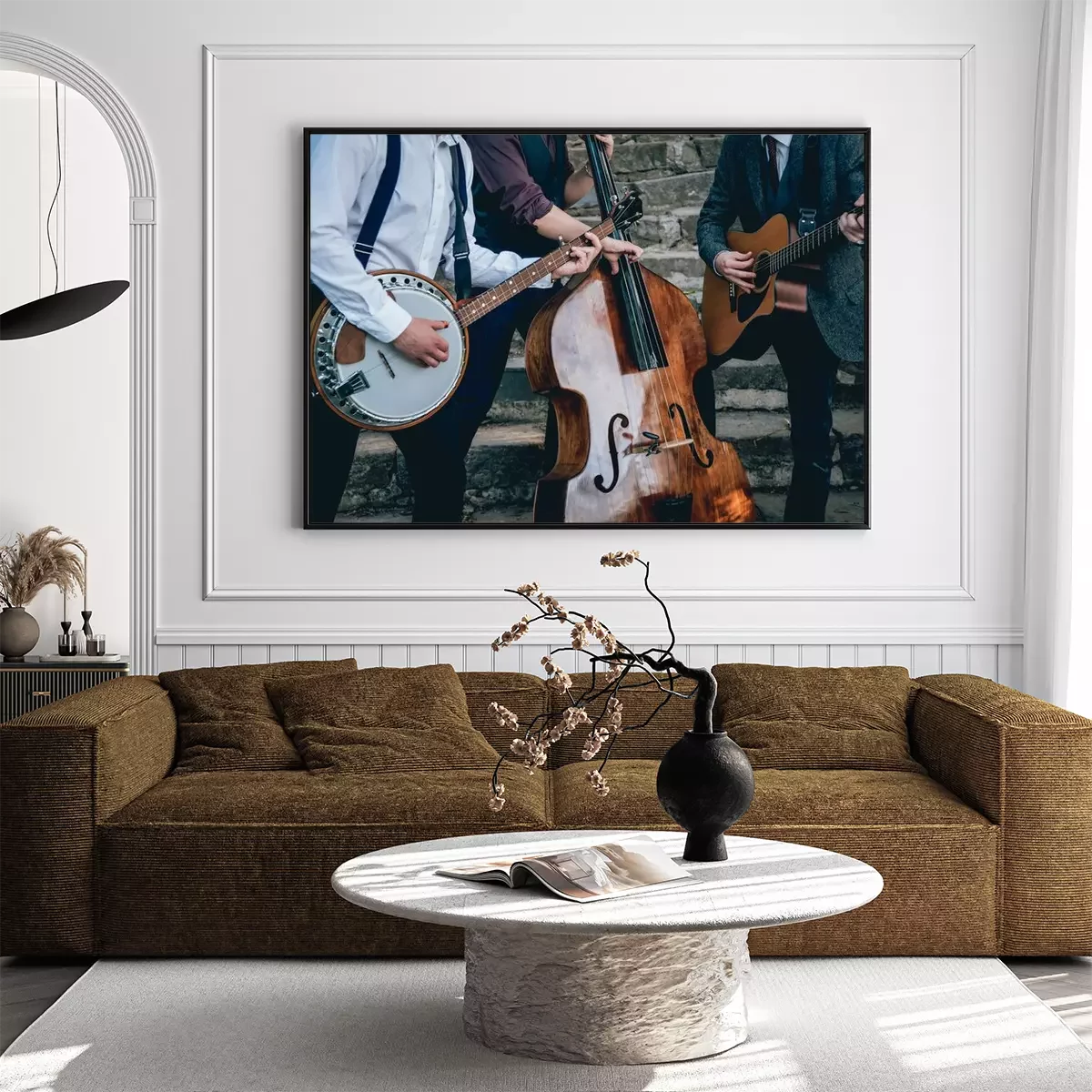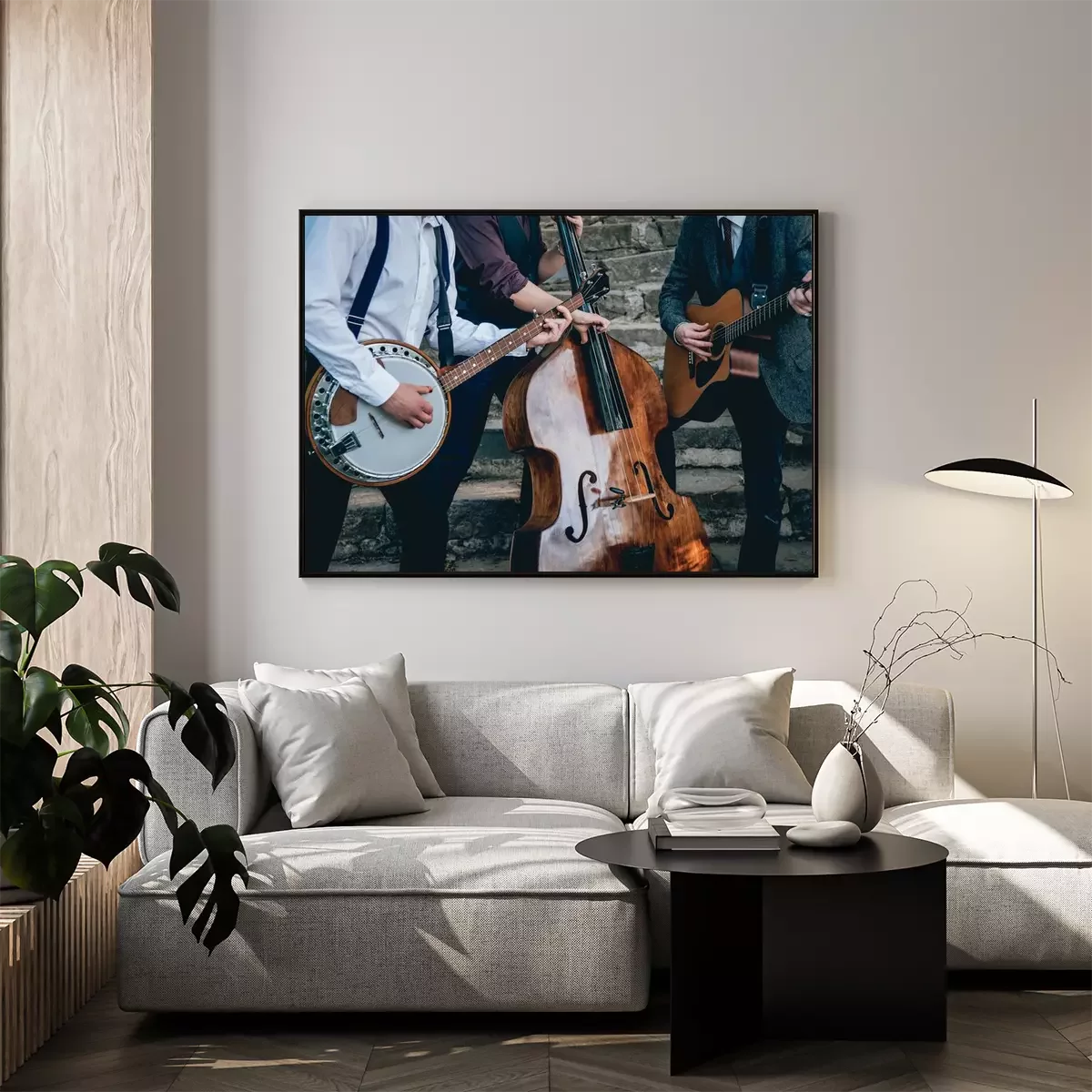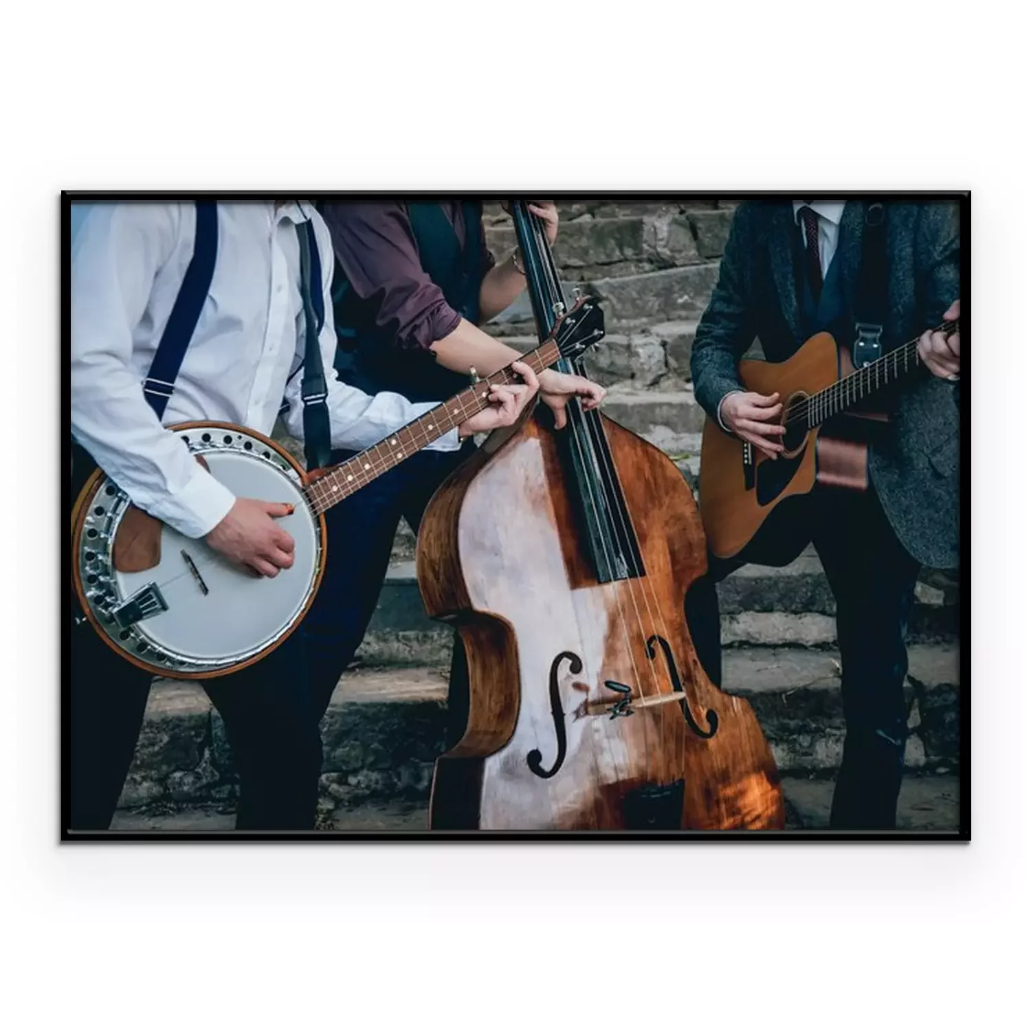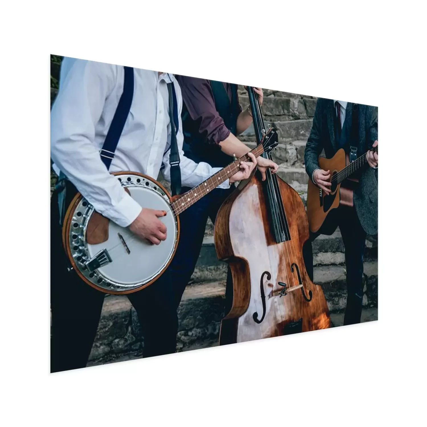Poster  Trio de musiciens avec une guitare, banjo et contrebasse