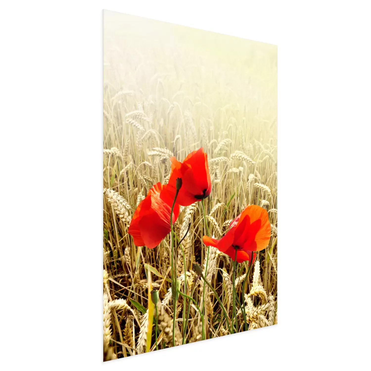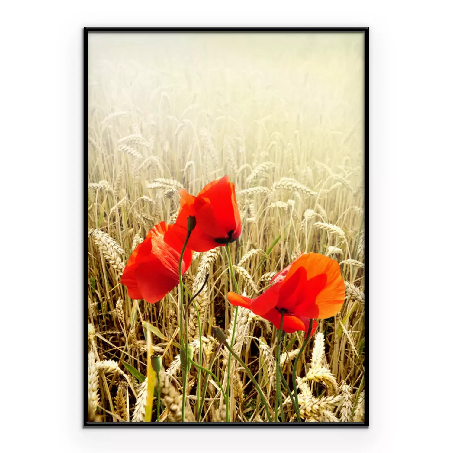 Poster  Trois coquelicots rouges sur fond de céréales mûres