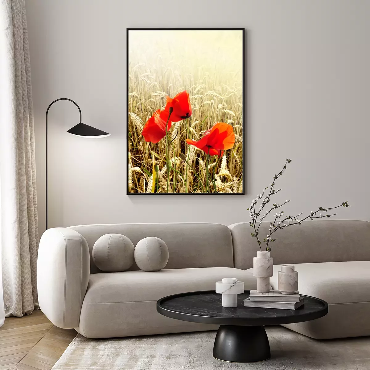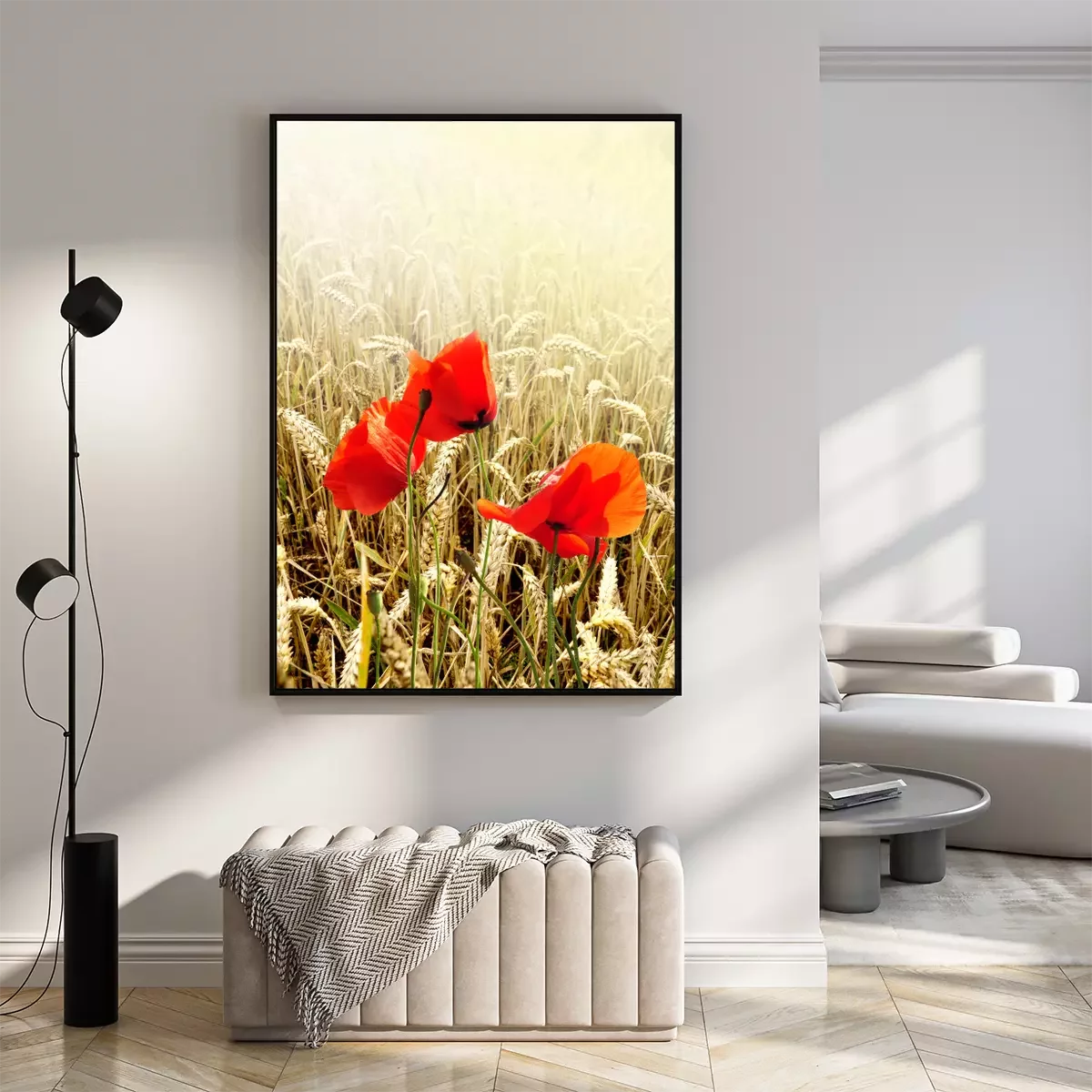Poster : Trois coquelicots rouges sur fond de céréales mûres