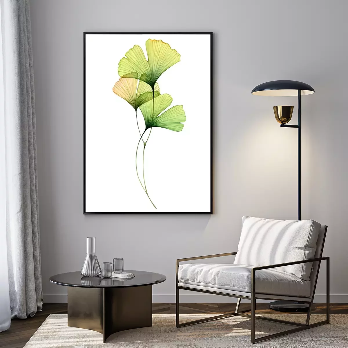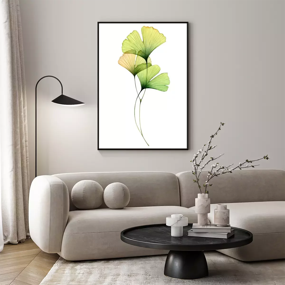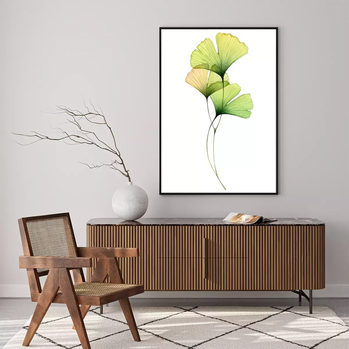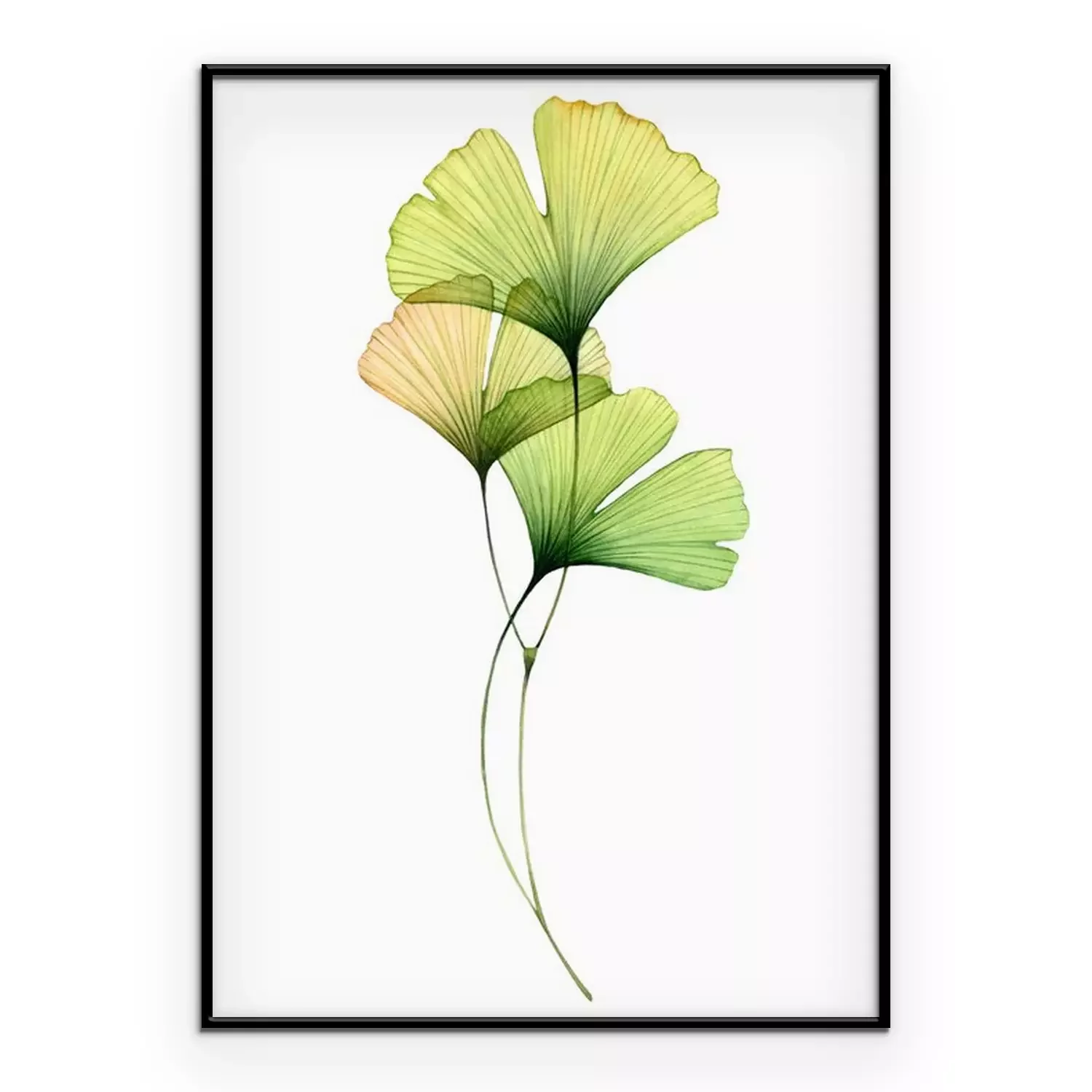 Poster  Trois feuilles de ginkgo sur fond blanc