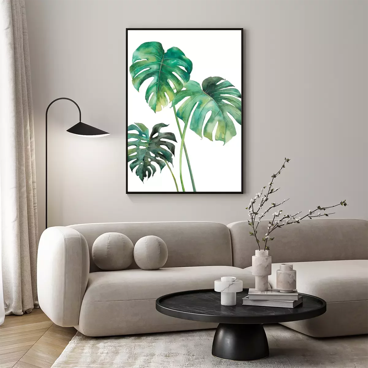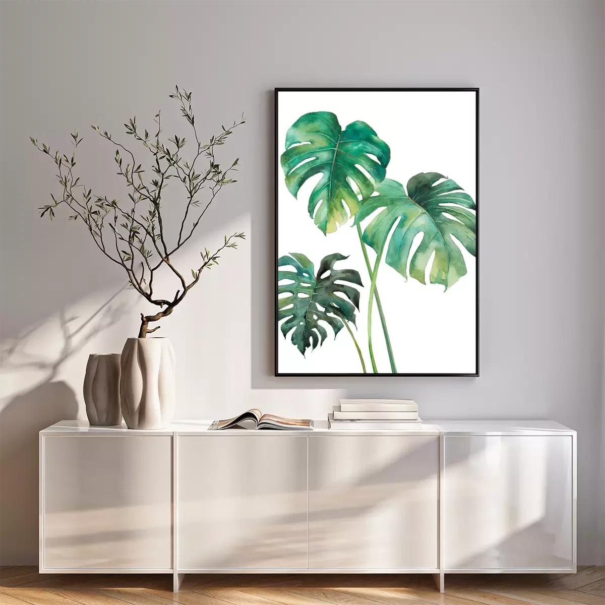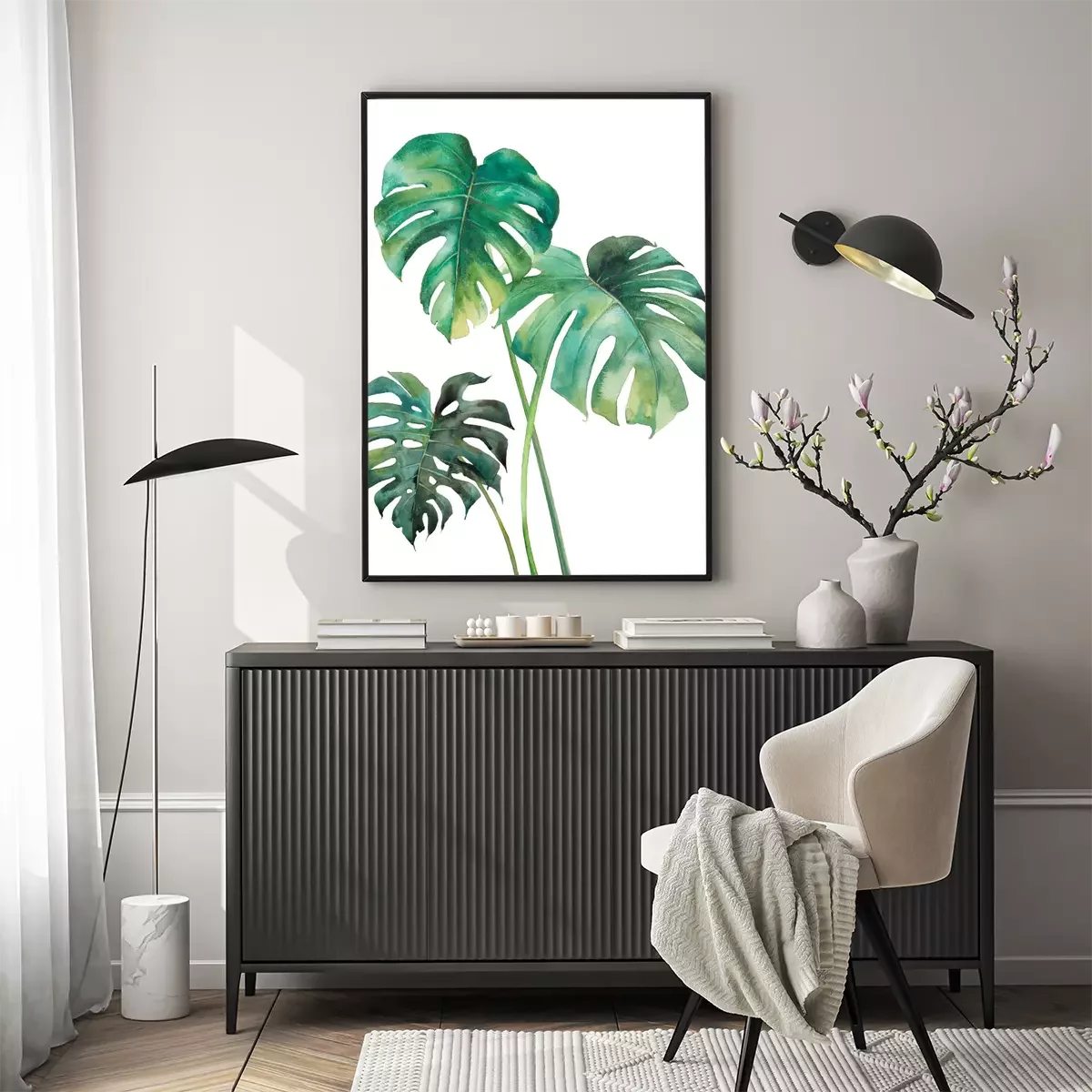 Poster : Trois feuilles vertes de monstera