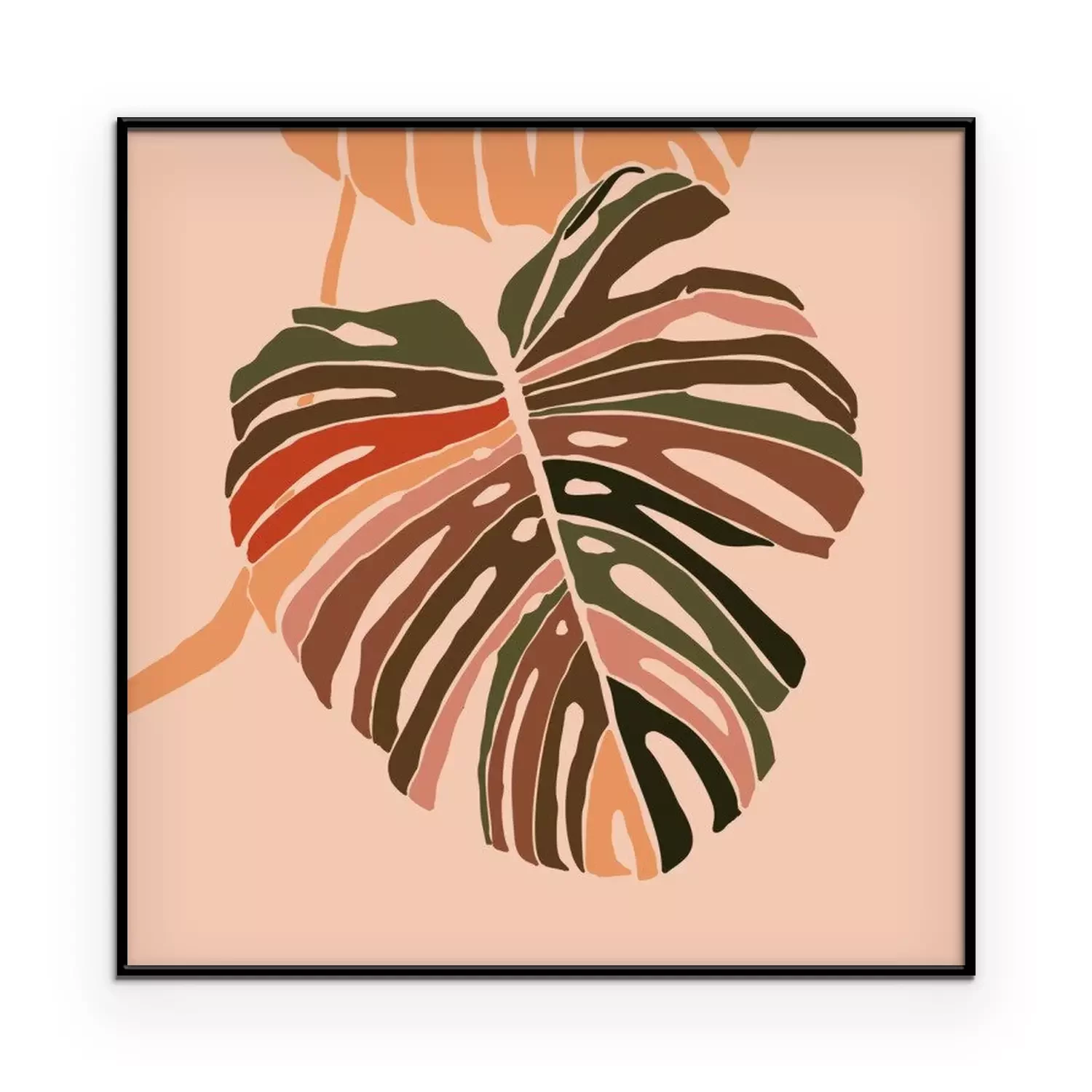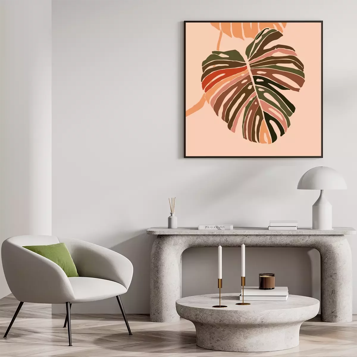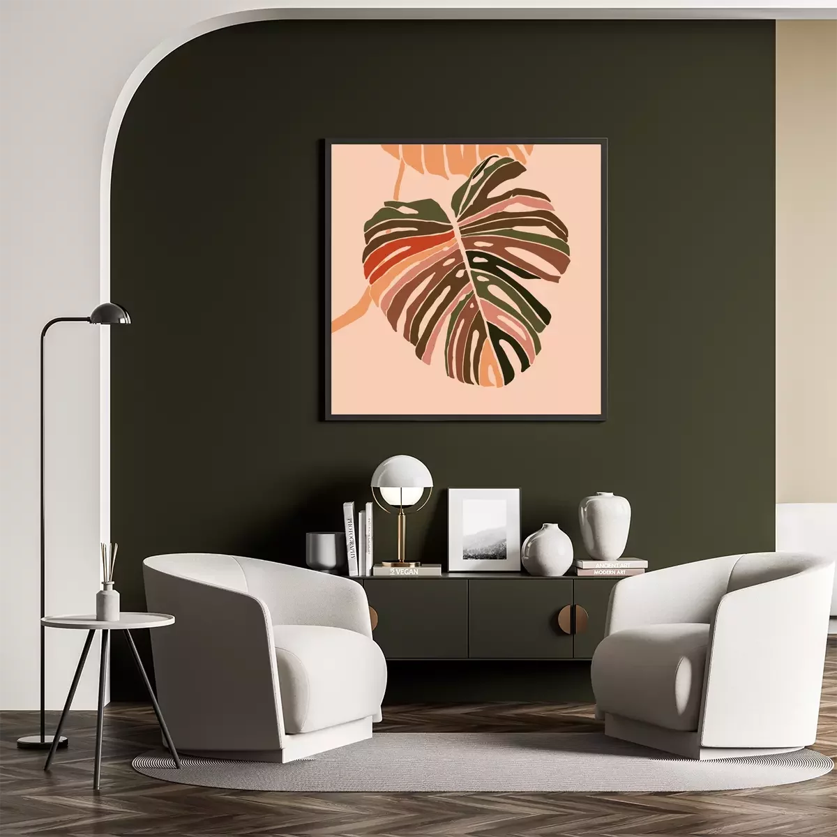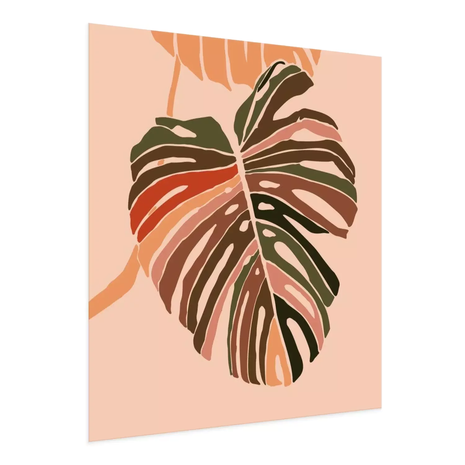 Poster : Tropical monstera leaves in a minimalist trendy style. Silhouette of a plant in a contemporary simple abstract style. Vector illustration collage. For t-Shirt Print, card, poster, social media post