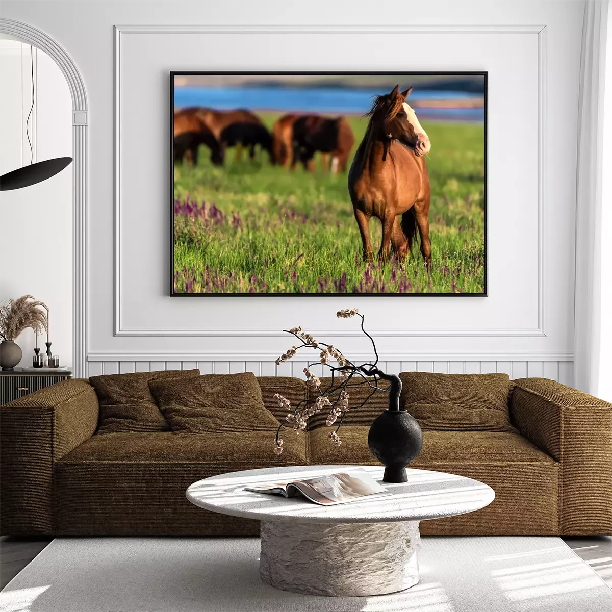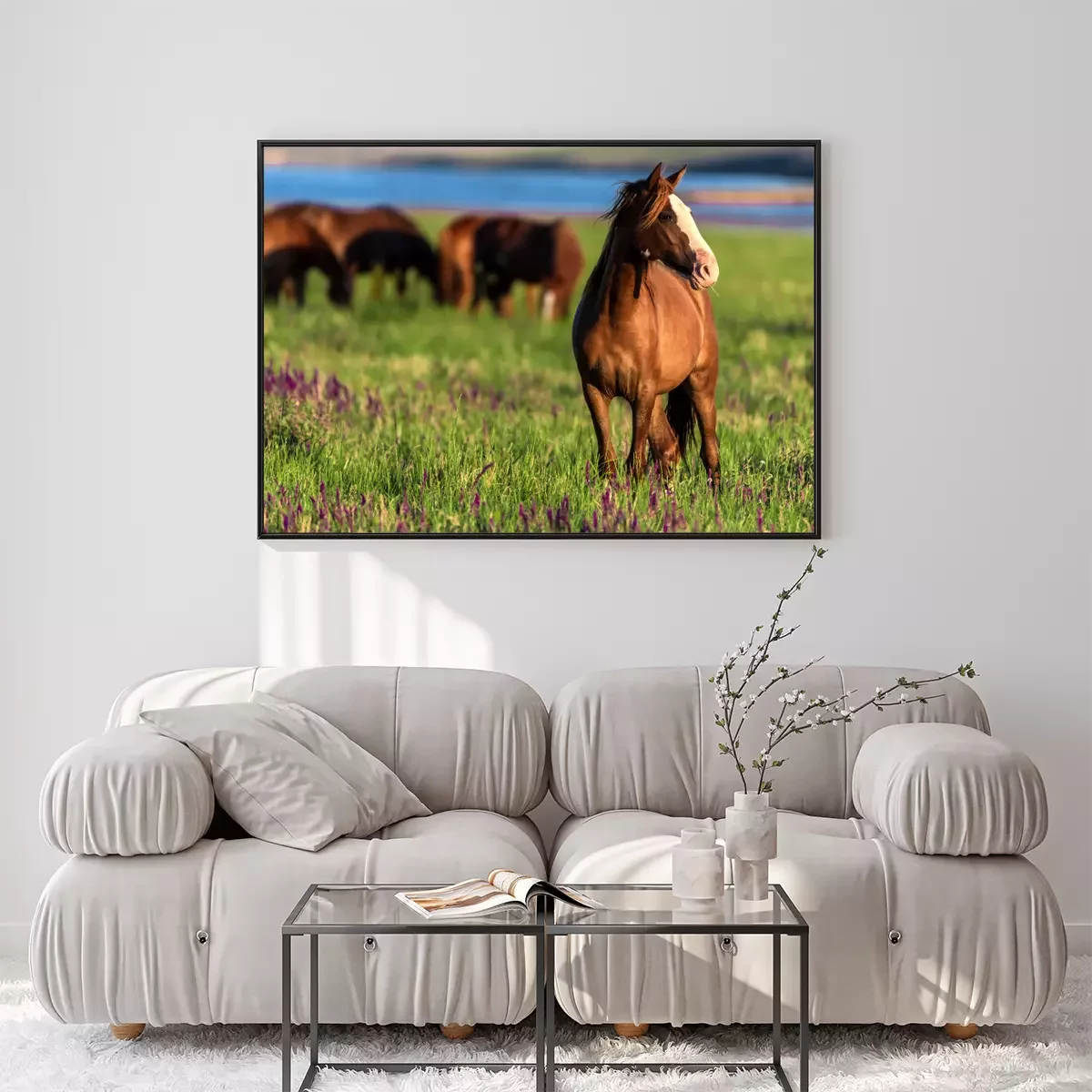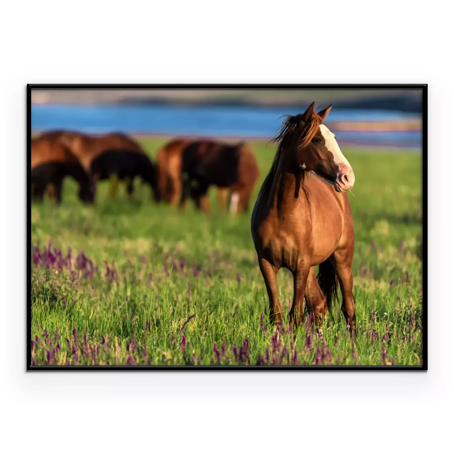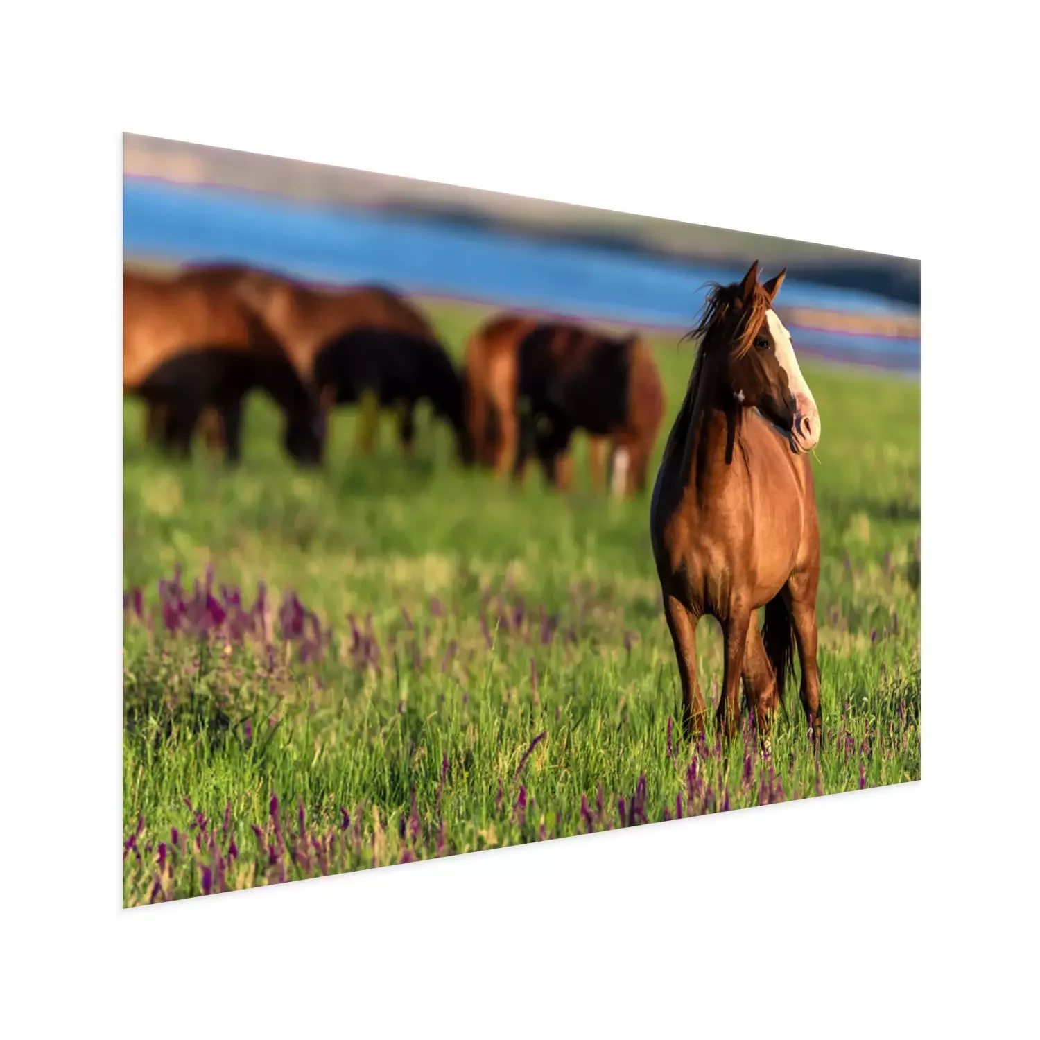 Poster : Troupeau de coursiers dans le pré
