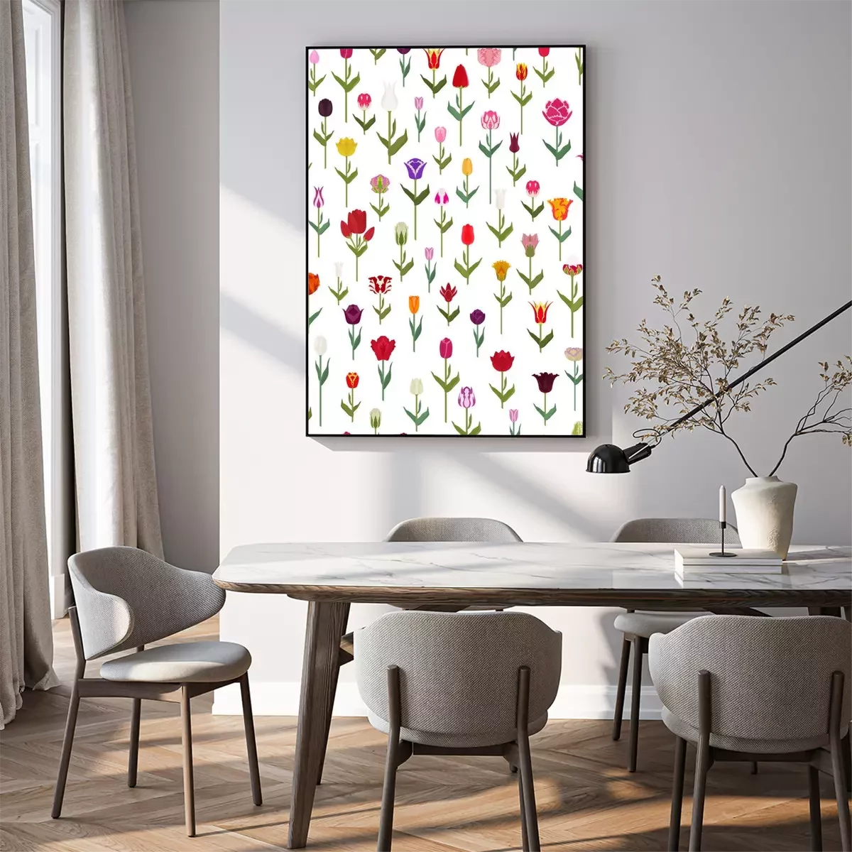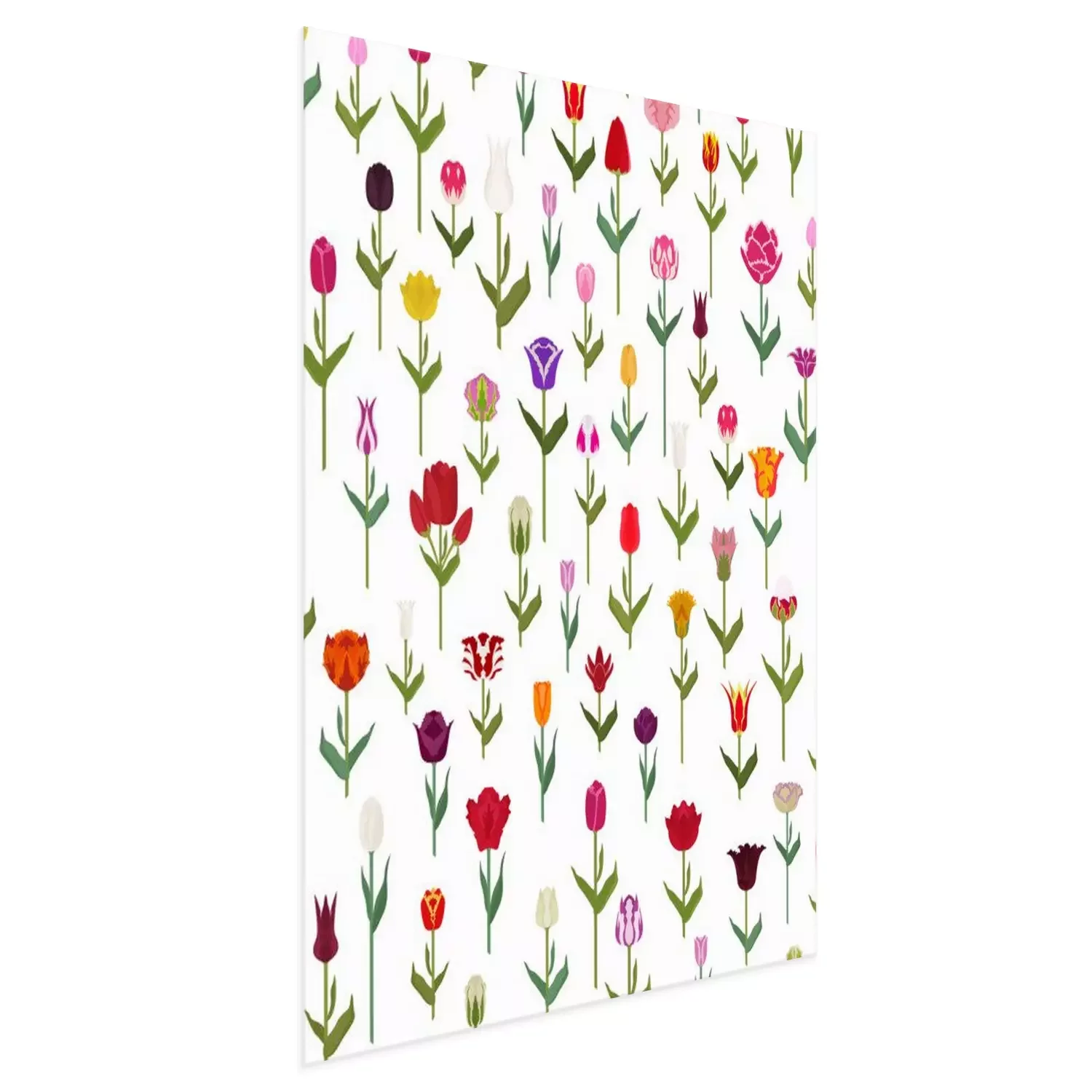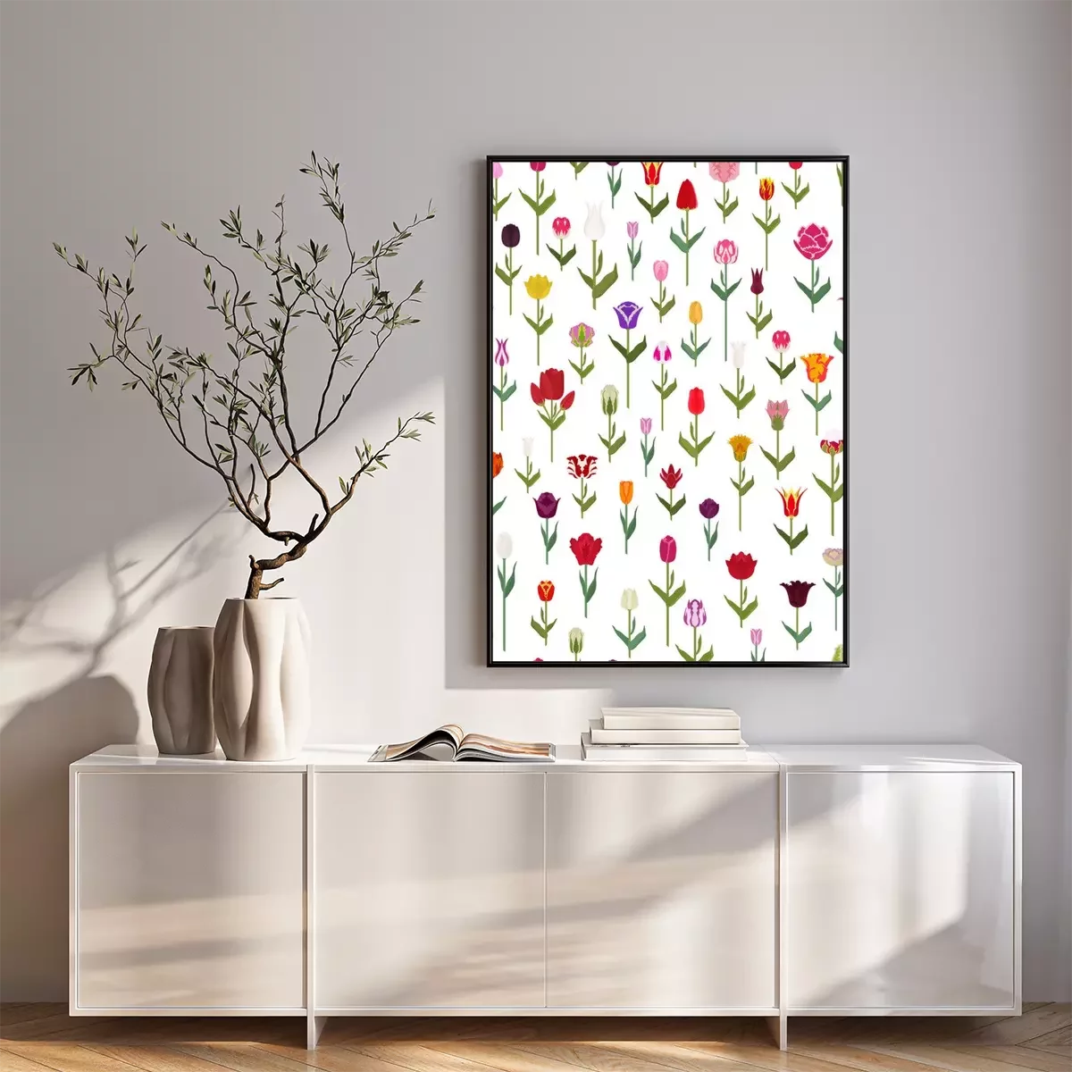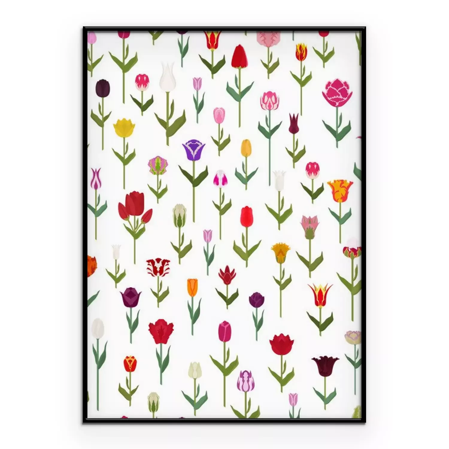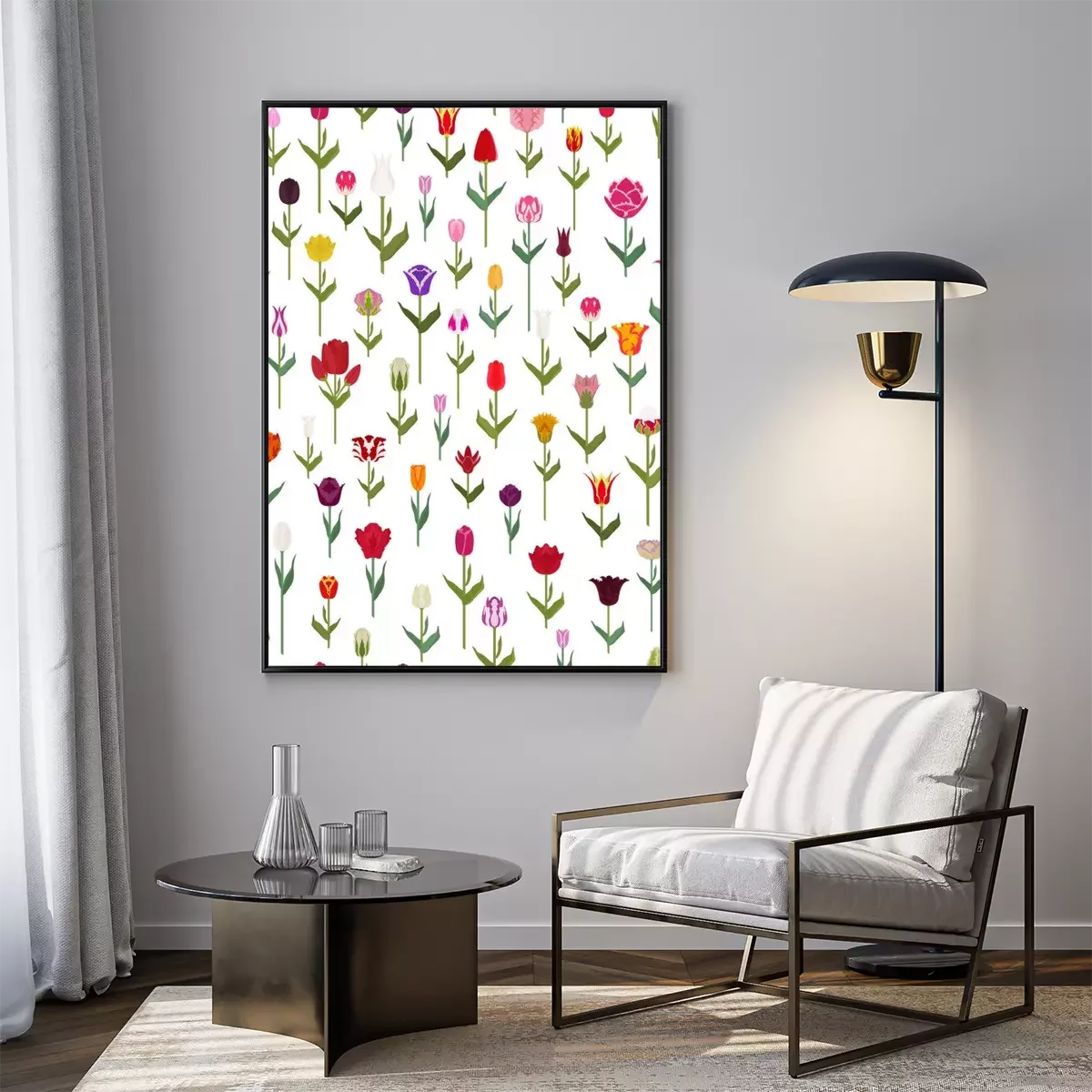 Poster  Tulipes jaunes et blanches sur rameaux droits