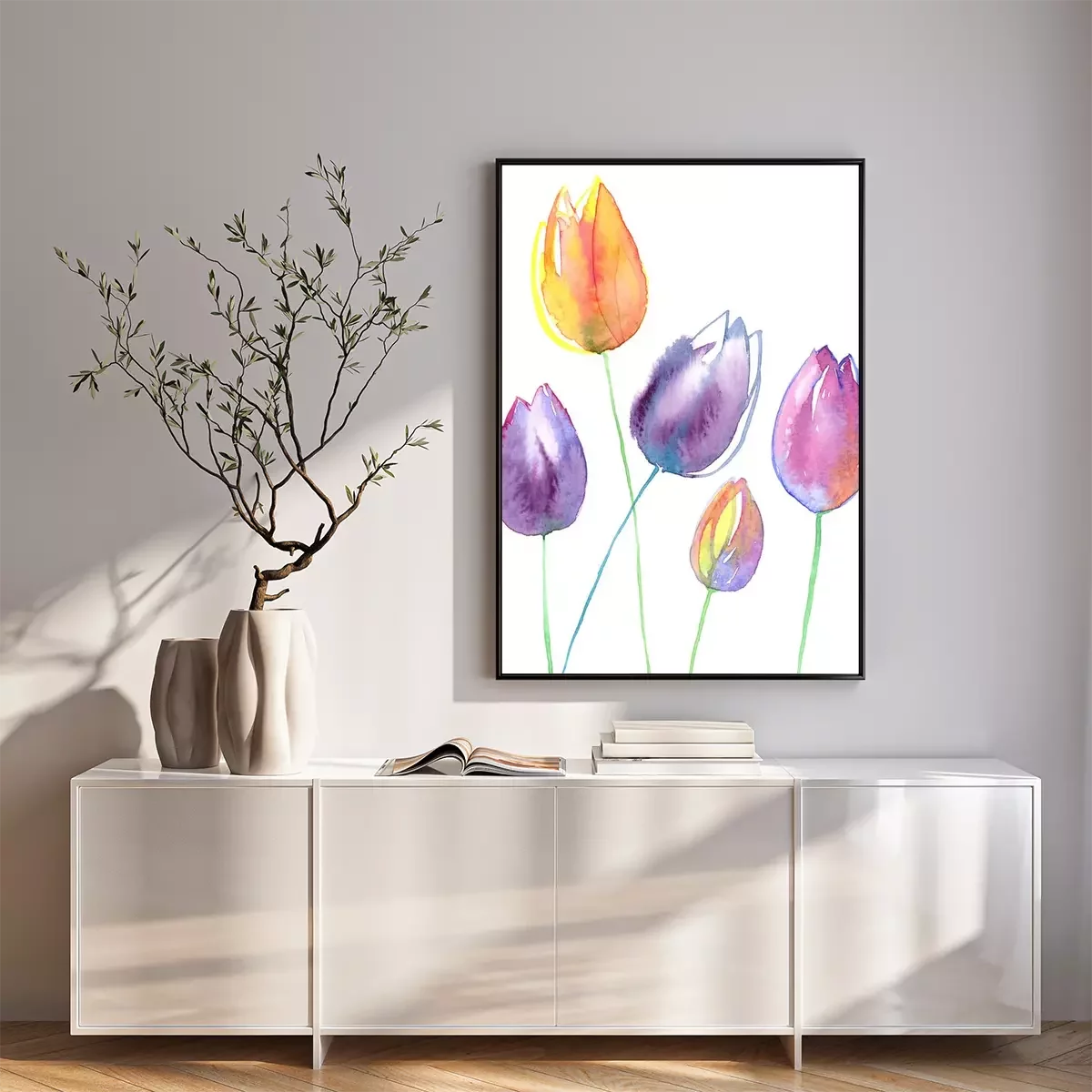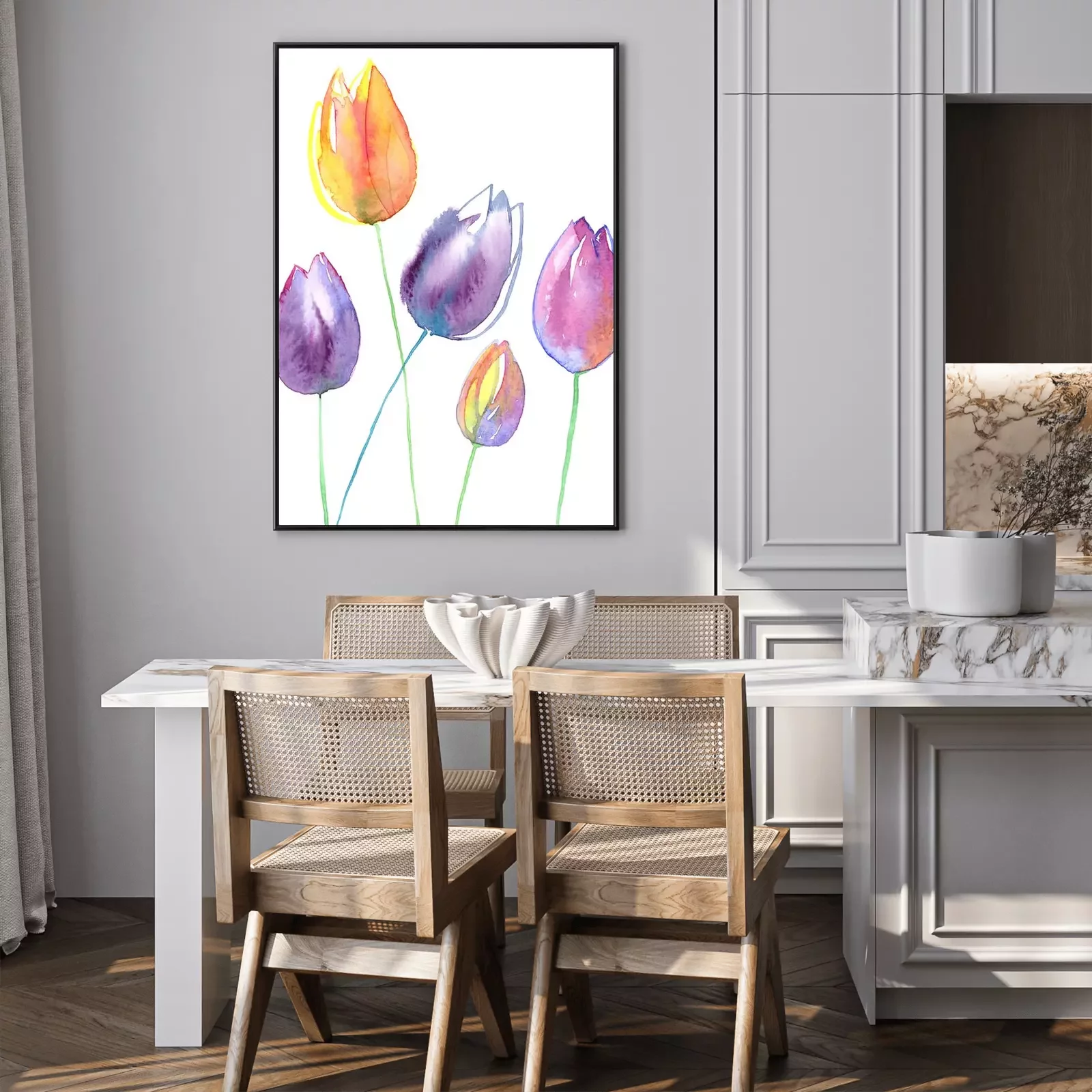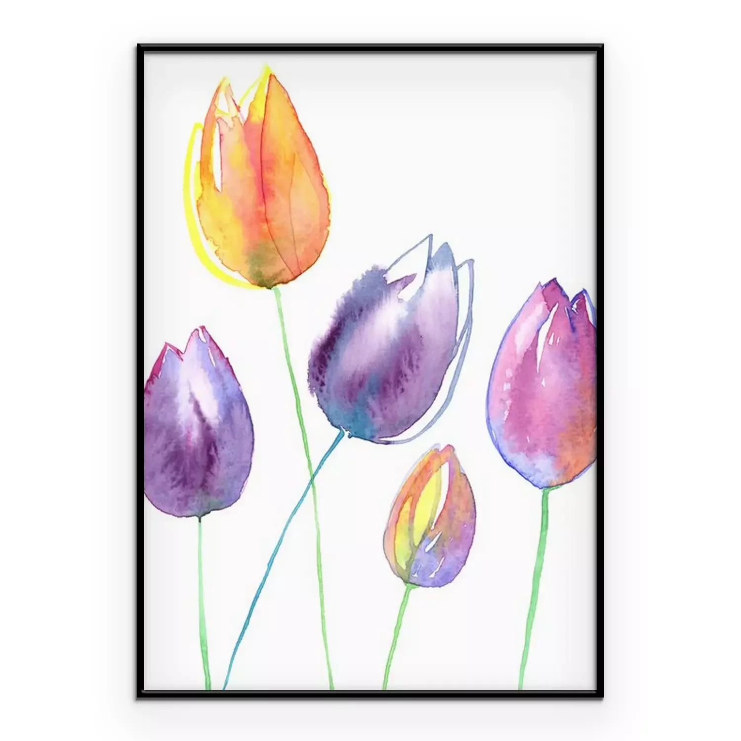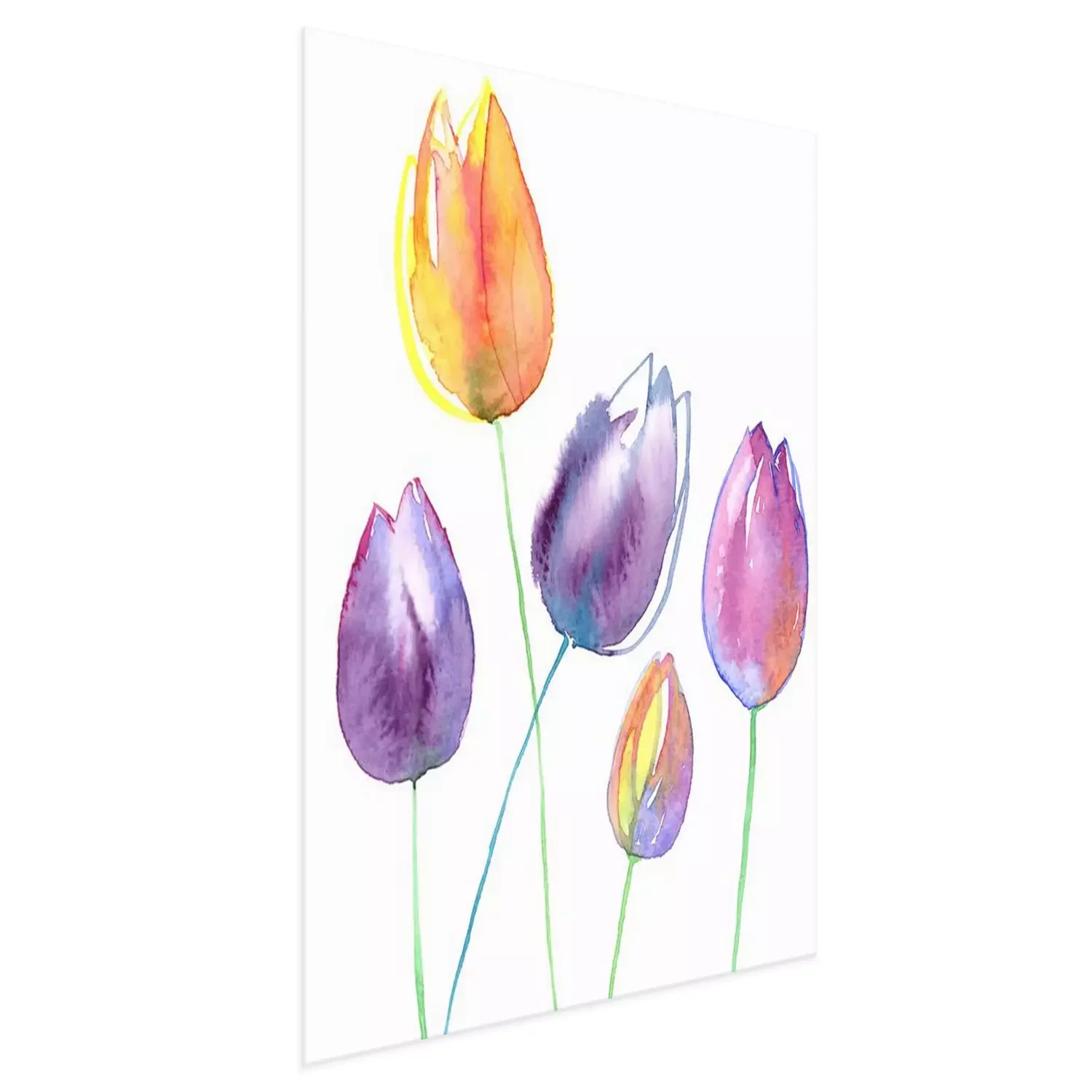 Poster : Tulipes jaunes et violettes remplies d'aquarelle