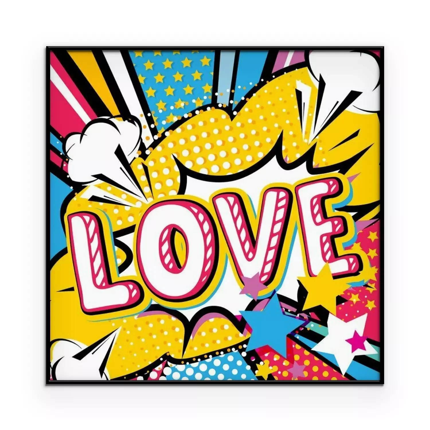 Poster : Type de citation d'amour d'art de bruit. Bang, explosion décoratifs demi-teintes affiche template illustration vectorielle.