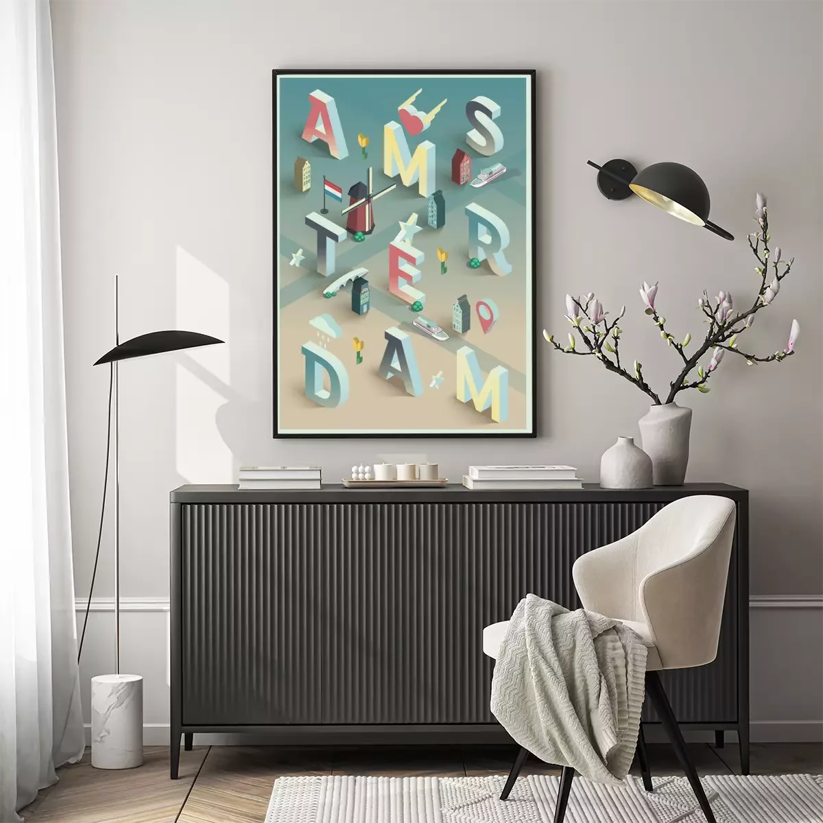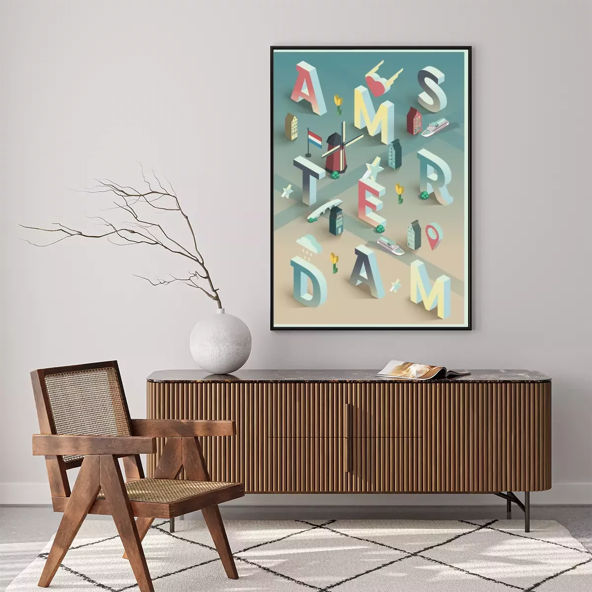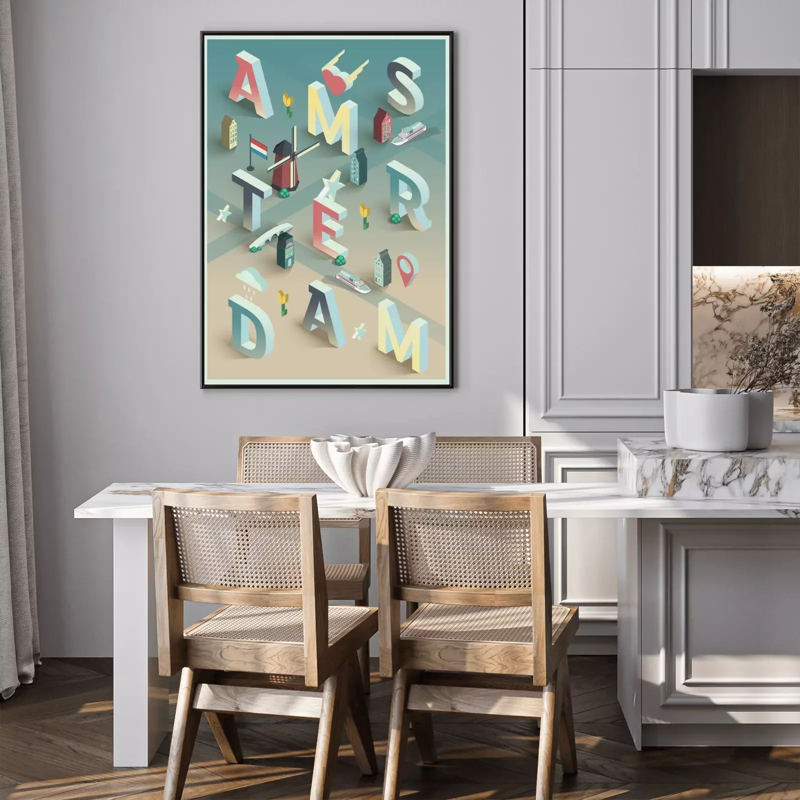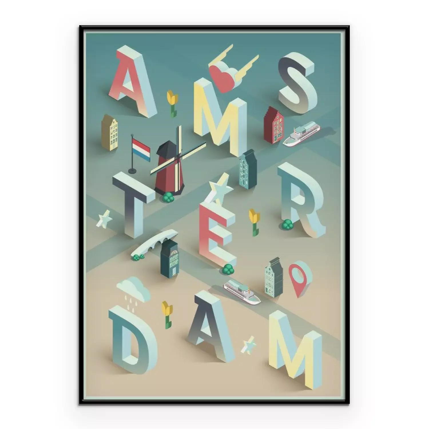 Poster  Typographie moderne 3D ville d'Amsterdam