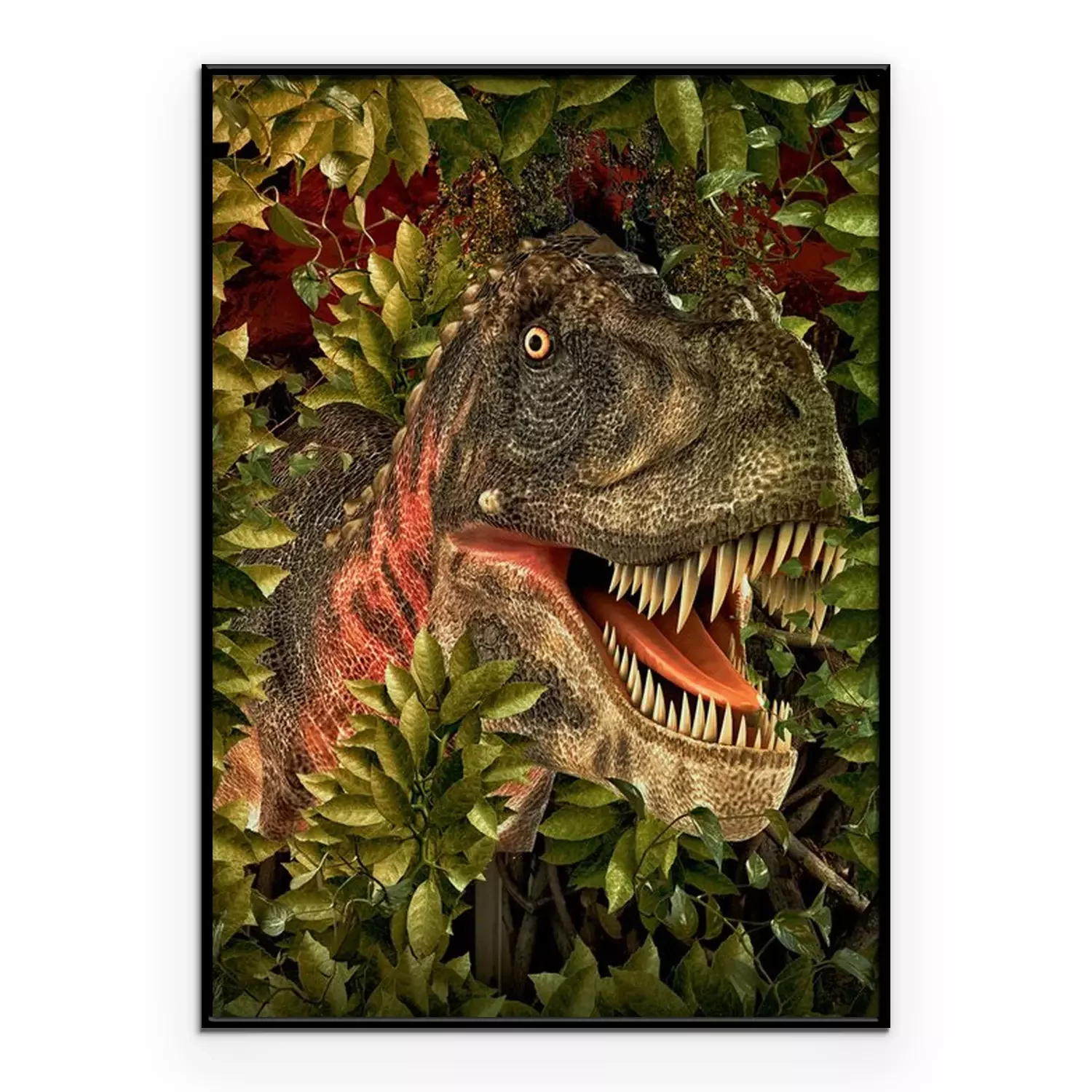 Poster  Tyrannosaure au milieu de feuilles vertes