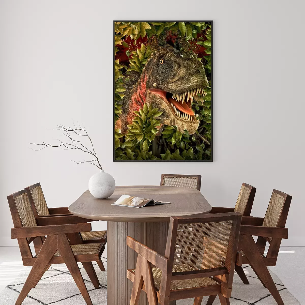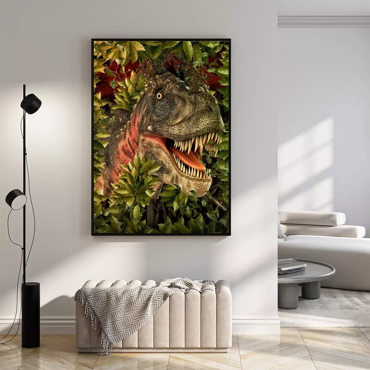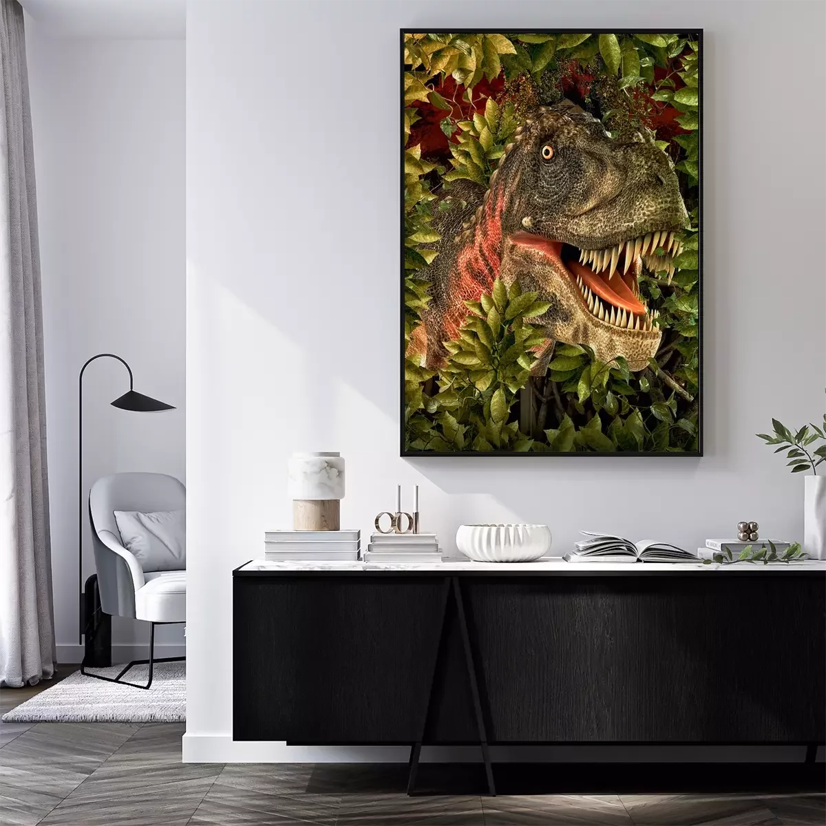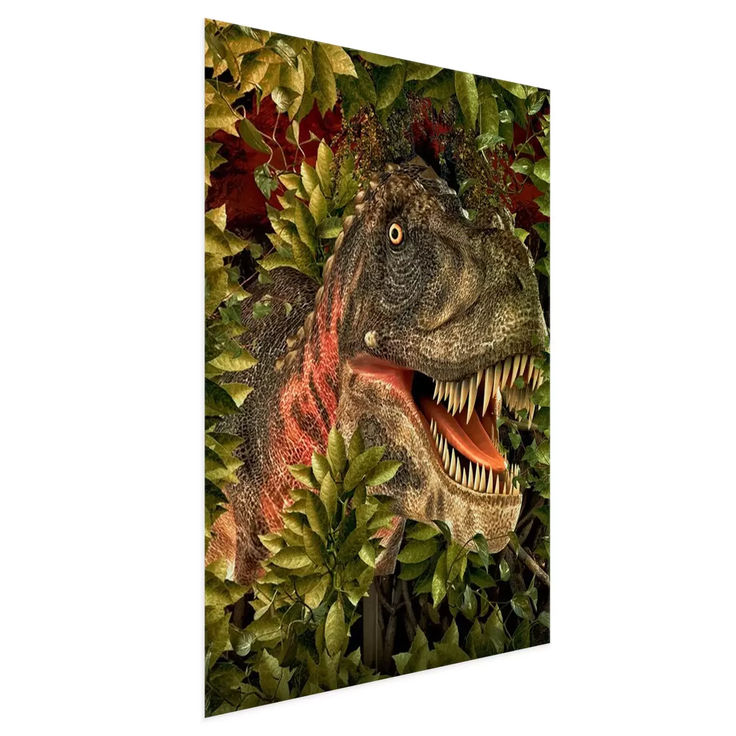 Poster : Tyrannosaure au milieu de feuilles vertes