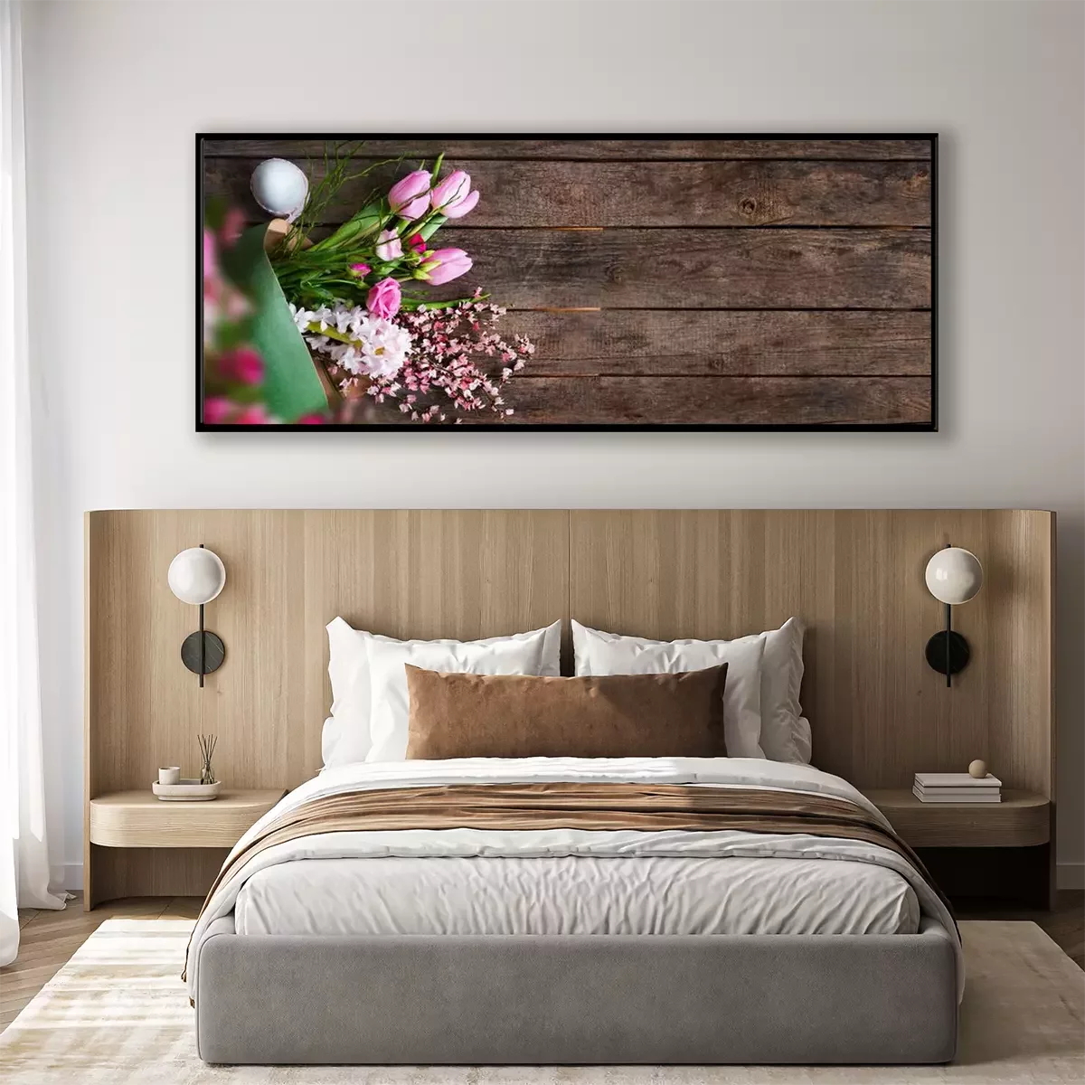 Poster : Un bouquet de fleurs printanières sur des planches en bois