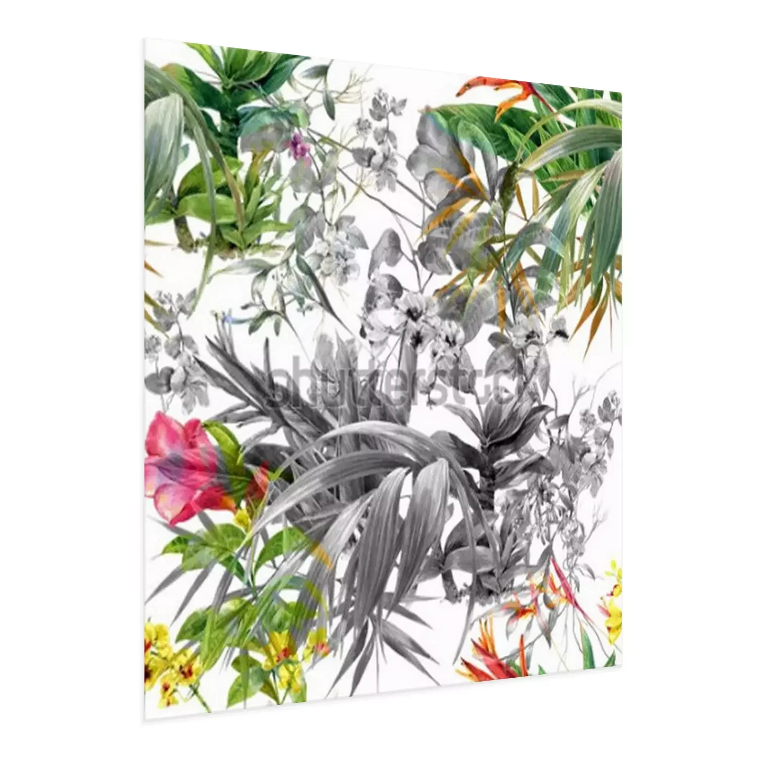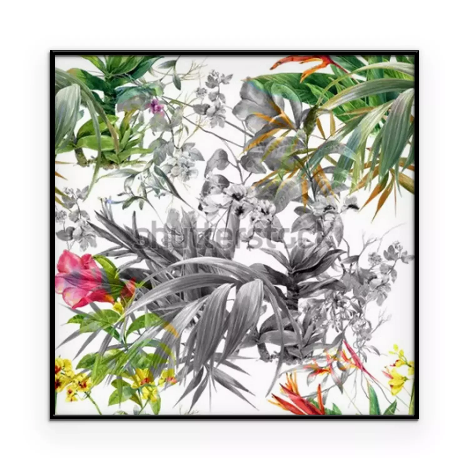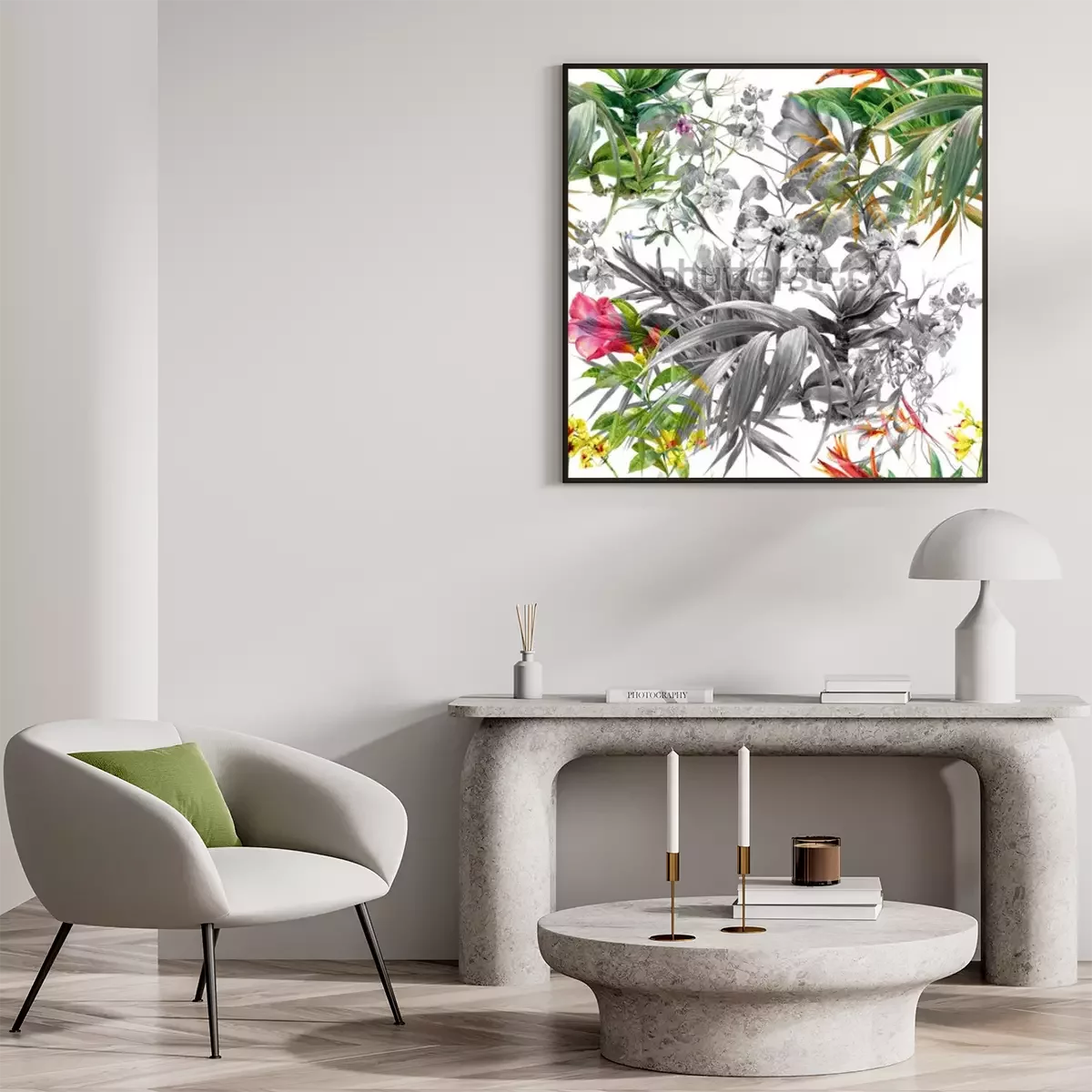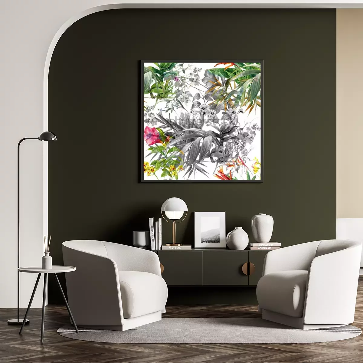 Poster  Un bouquet de palmiers et de fleurs en couleur et gris