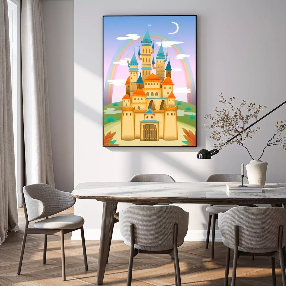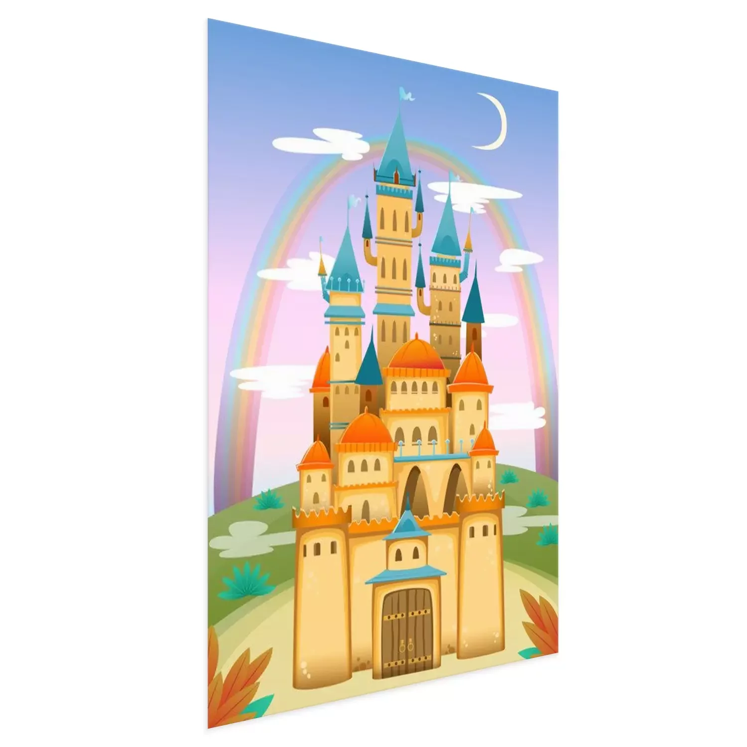 Poster : Un château royal avec un arc-en-ciel en arrière-plan