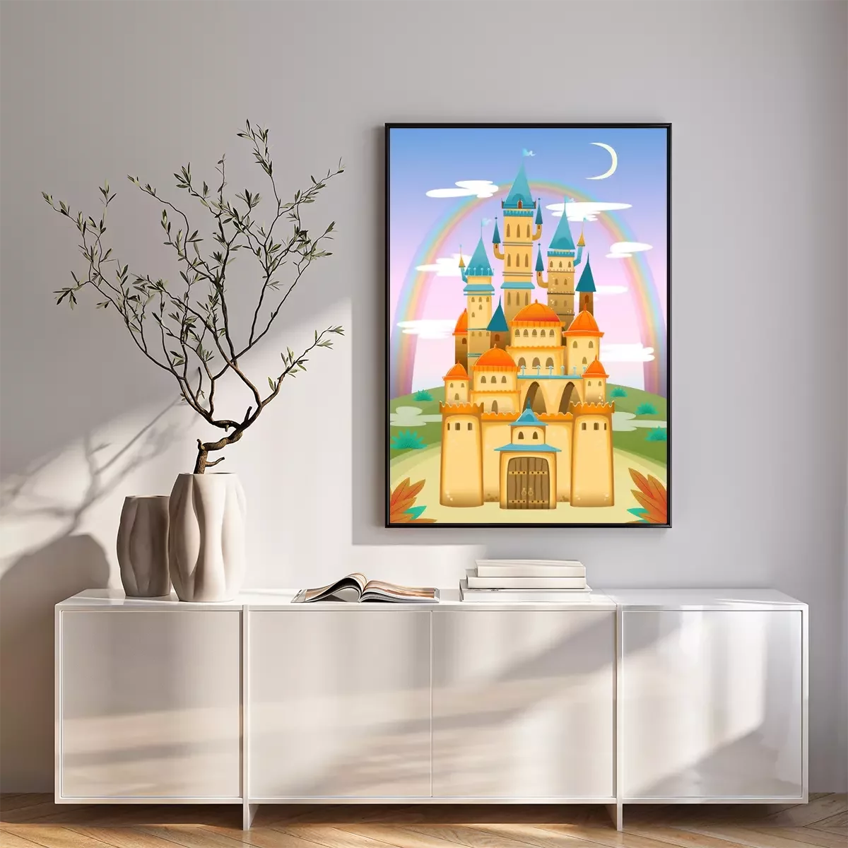 Poster  Un château royal avec un arc-en-ciel en arrière-plan