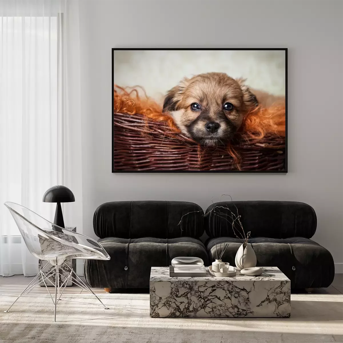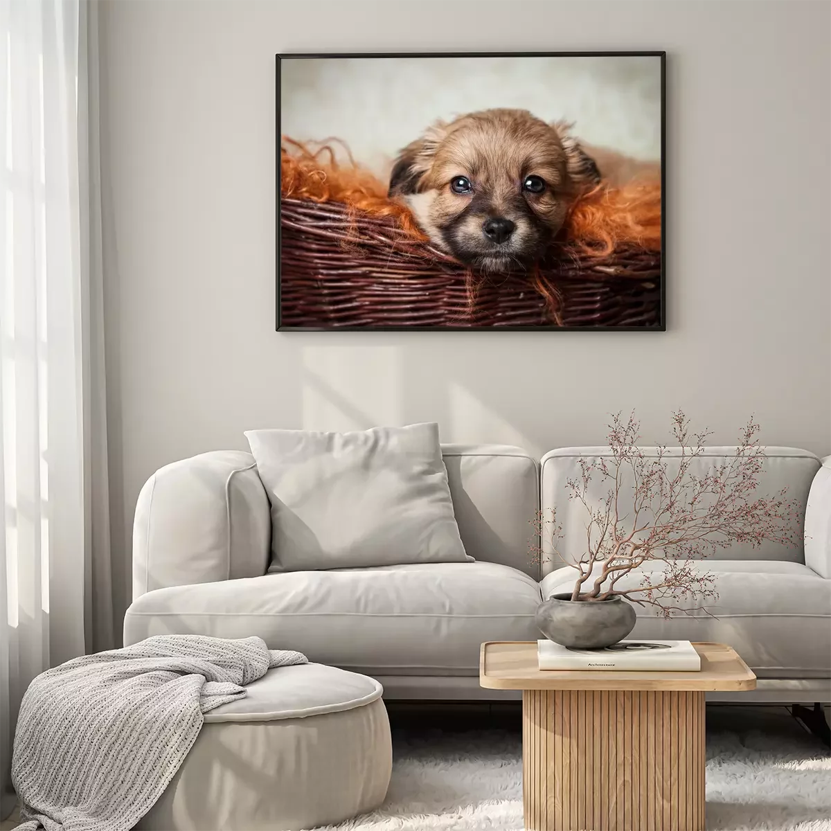 Poster : Un chien dans un panier