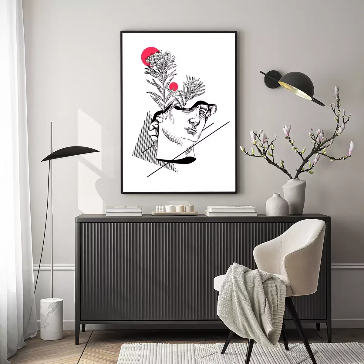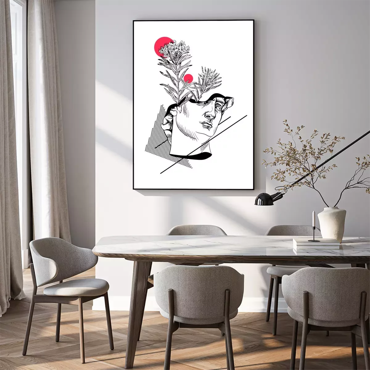 Poster : Un collage minimaliste avec une statue