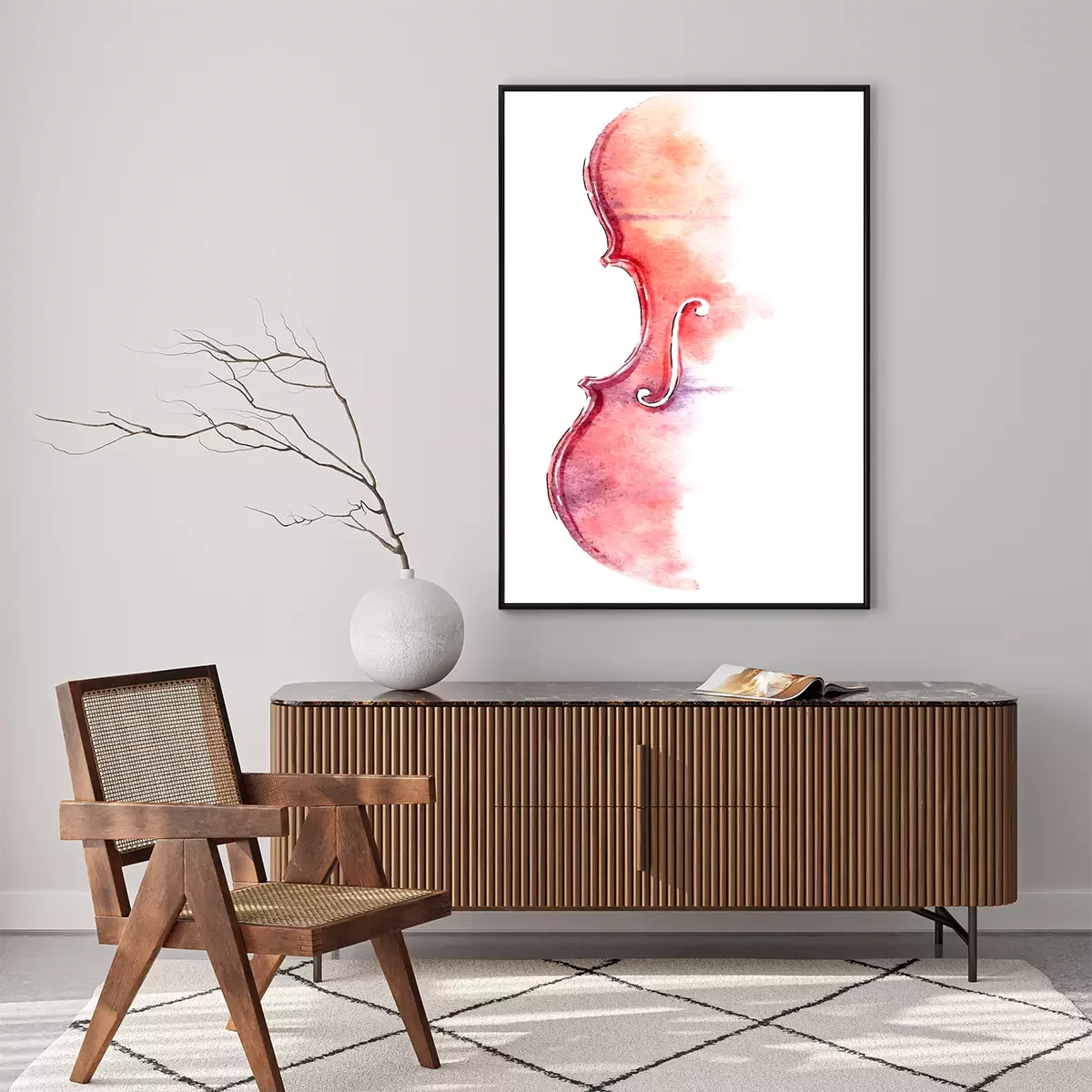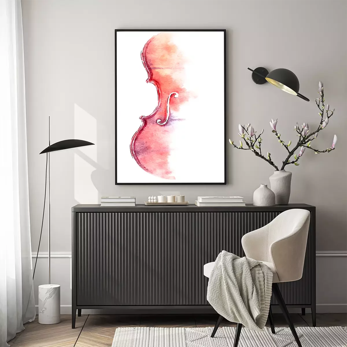 Un délicat dessin à l'aquarelle d'un violoncelle